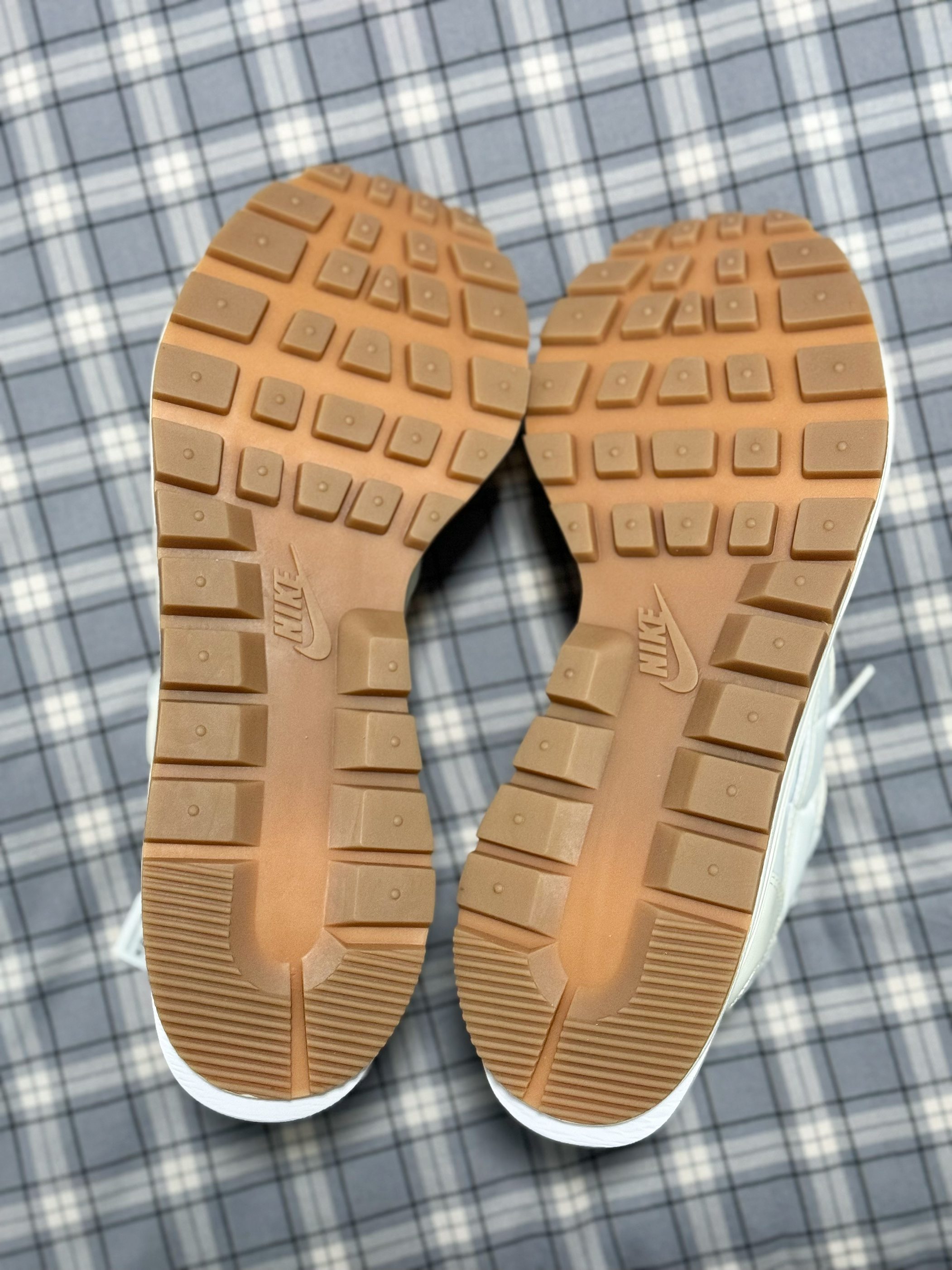 整体以米白色调为主,看起来很素雅 鞋身用到了织物、麂皮还有皮革拼接 双鞋舌双Swoosh的设计是Sacai的标志了 尤其中底多层次的结构,足足5厘米的增高 穿上既柔软舒适又特别显腿细腿长 日常搭配牛仔裤休闲裤都能轻松驾驭 男女穿都好看,不过鞋子会比较不耐脏 尺码方面偏小一些,建议选大一码!