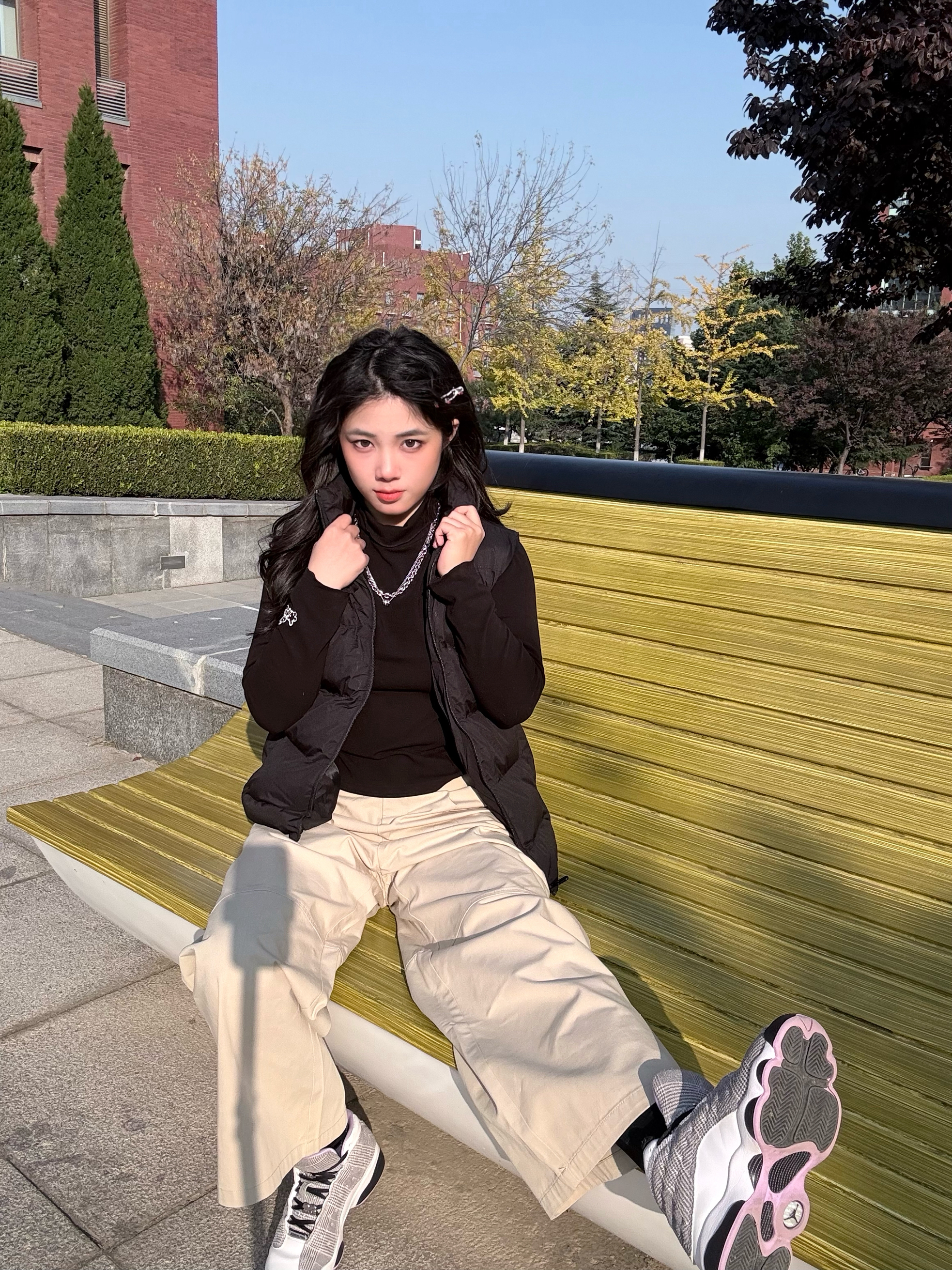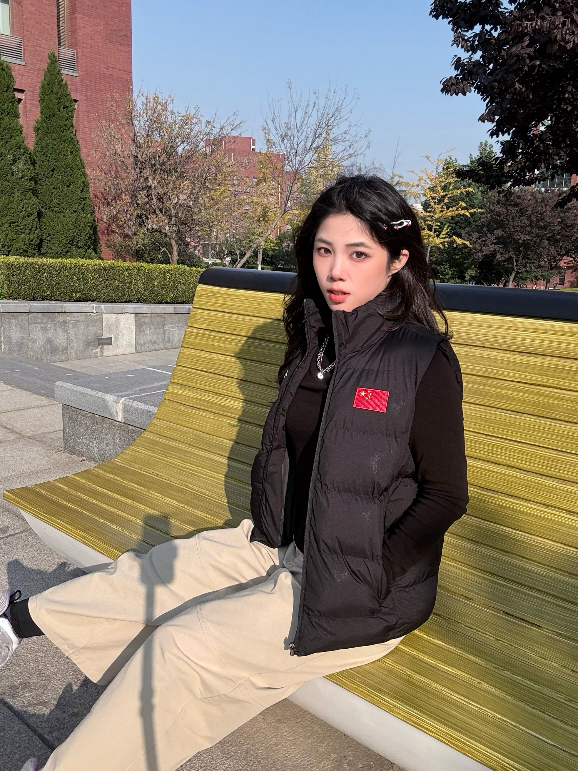 (大连·10°C·静风·☀️) 这个尴尬的天气 穿羽绒服又没那么冷 棉服太臃肿了怎么办 🆘 (我只是想出门不冷不热·身体轻松的压个马路 ) 思考🤔ing 可以穿什么🤔 解:可以毛衣/卫衣➕马甲(作答先写解🥹) 今天上身的马甲很轻巧修身✅(M码) 1️⃣面料好,做工很不错,细节处理得很到位,没有什么多余的线头。 2️⃣马甲外形设计思路💯。上身很显瘦,很舒服,穿着运动没有压力(体育生🉑🉑入),很适...