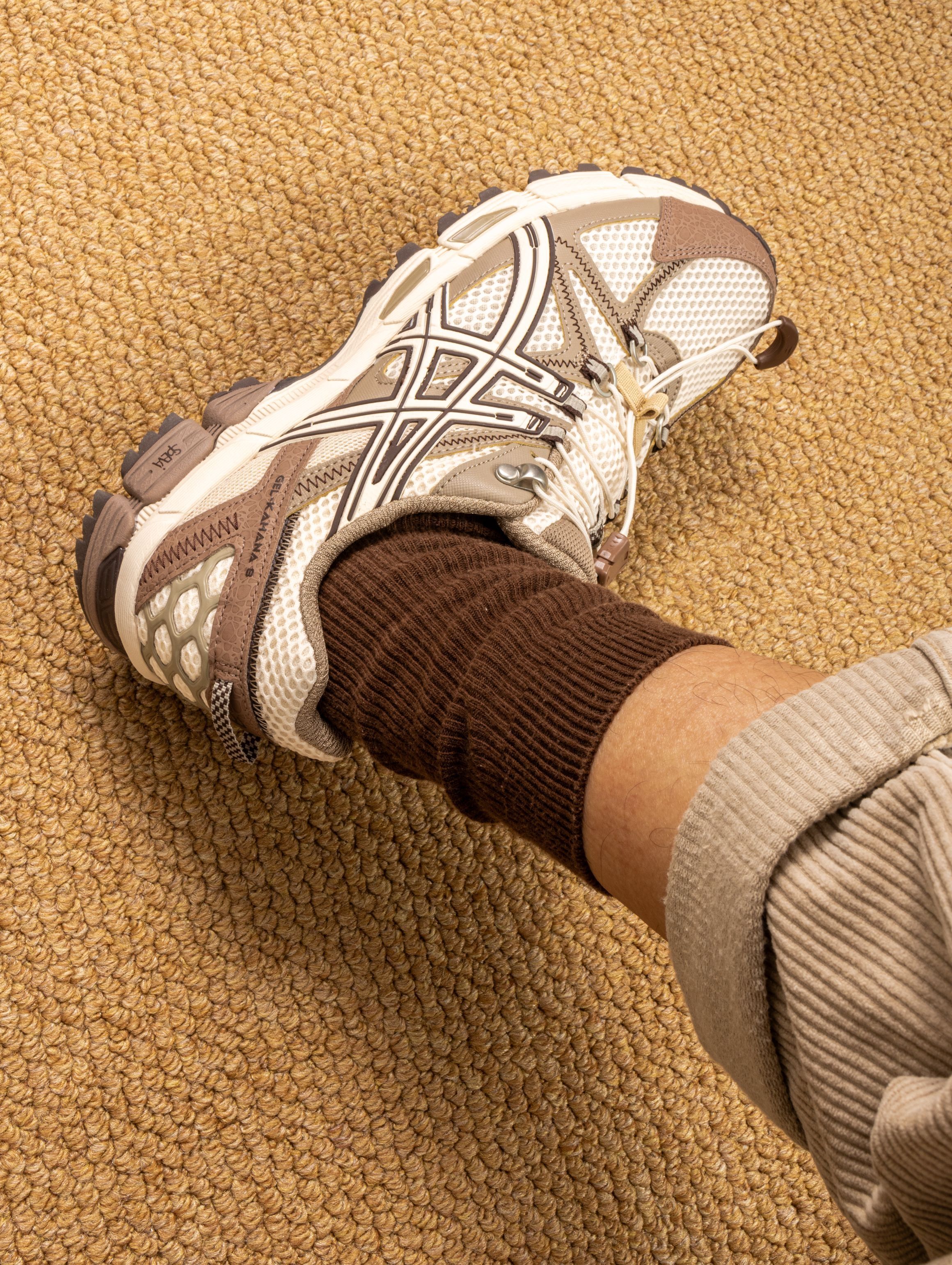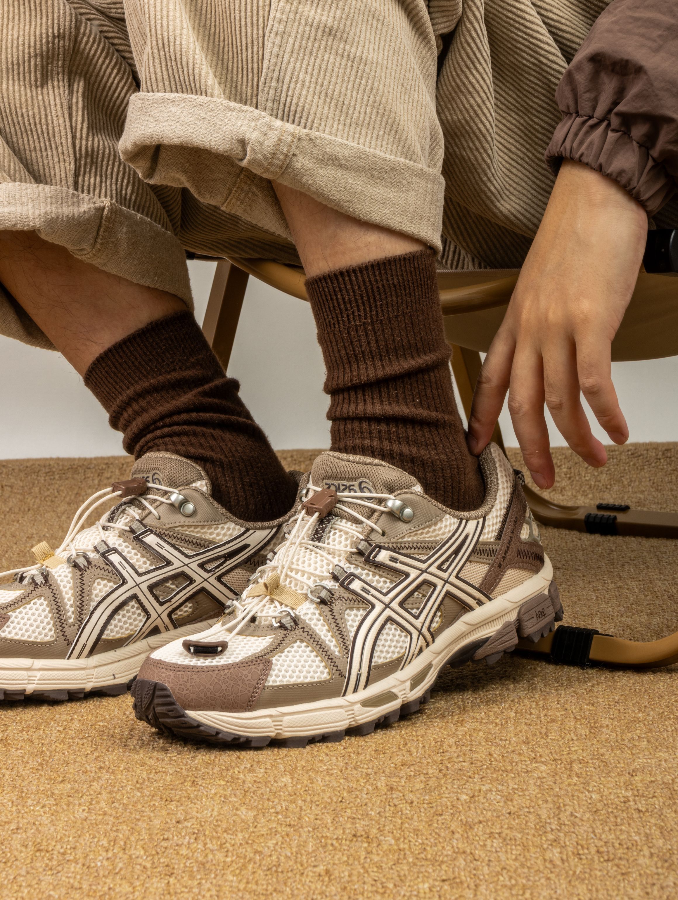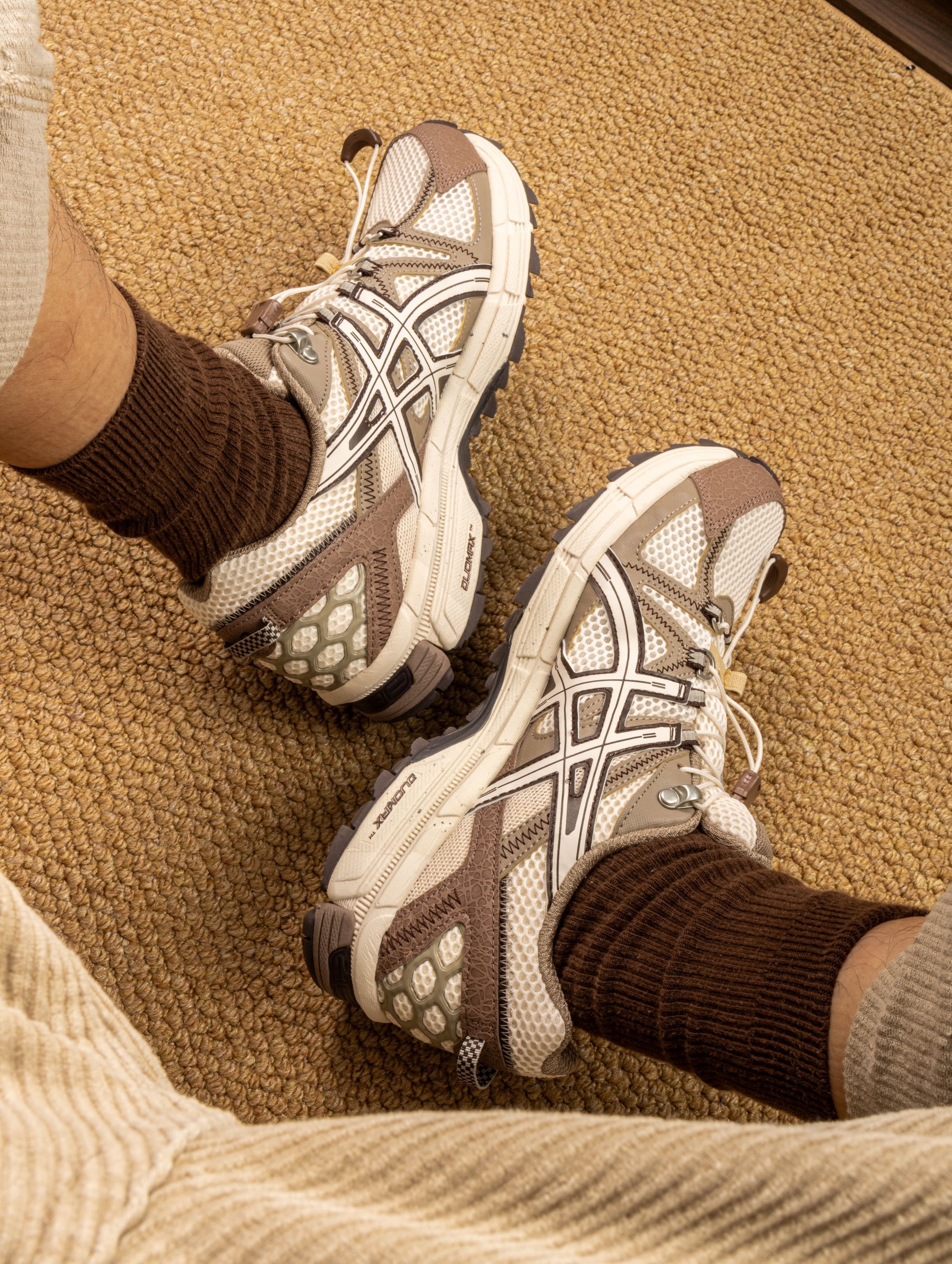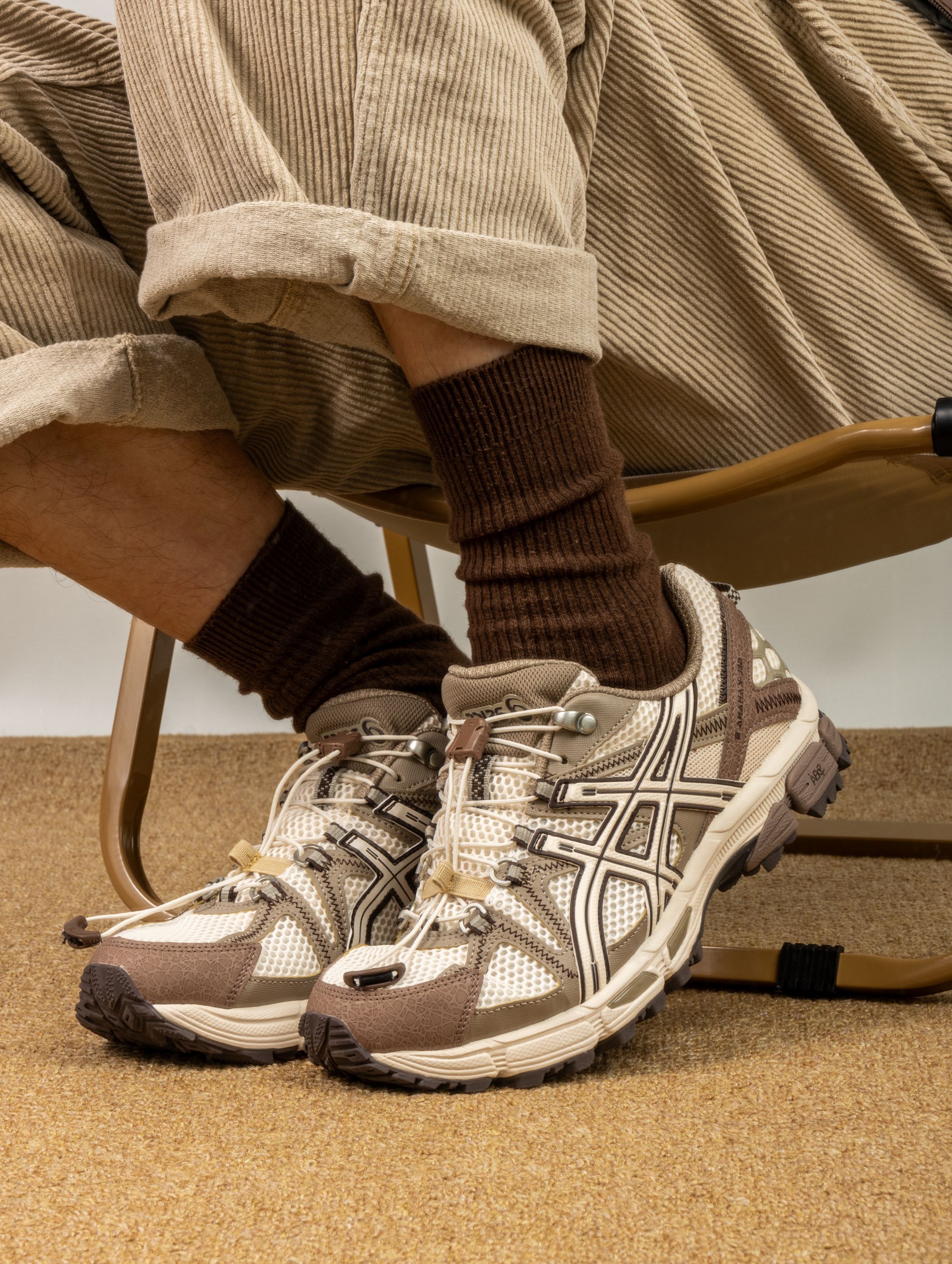这双Kahana 8真的被惊喜到,棕白配色太有秋冬氛围感了,翻毛皮拼接网面的质感绝绝子。上脚第一感受是Gel缓震胶名不虚传,走起来软弹适中,通勤赶地铁完全不吃力。 周末爬山时齿纹大底防滑靠谱,雨天出门也不担心打滑。搭配卡其色工装裤就是标准山系boy,配深色牛仔裤也毫无违和感。 已经成为我最近出勤率最高的鞋,真正实现了从办公室到山野的无缝切换!