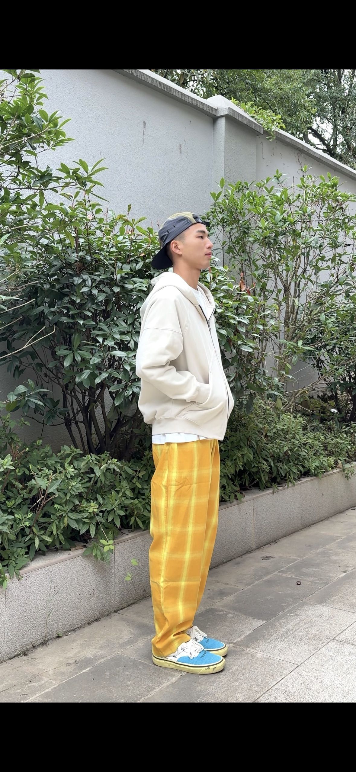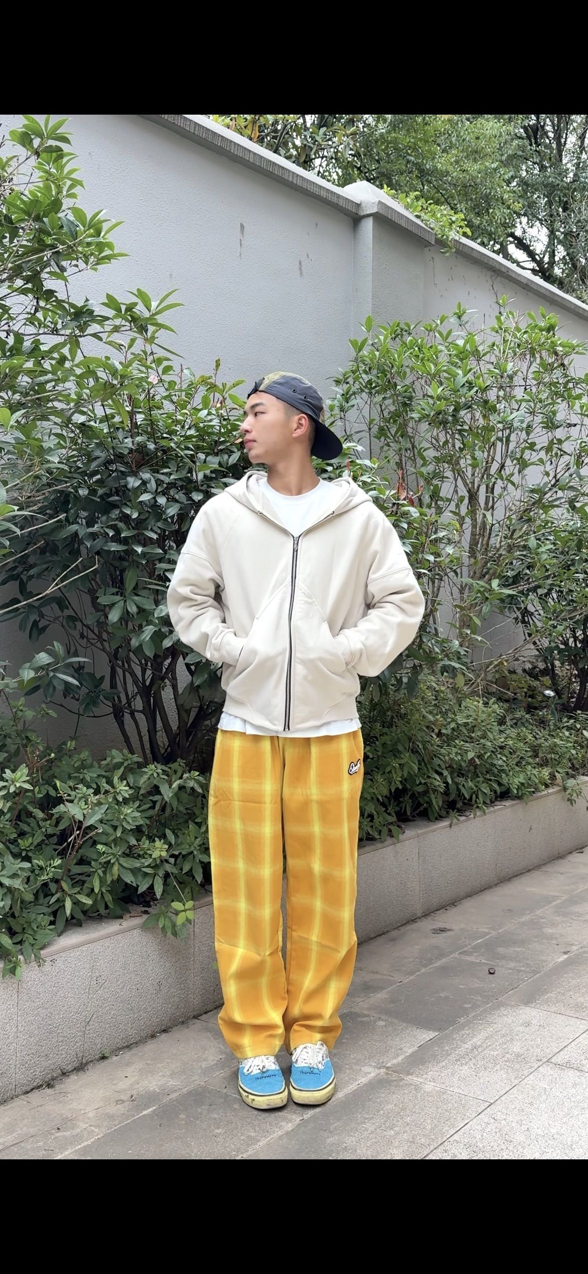 173cm/56kg穿搭分享 这件米白色开衫卫衣的版型真的被拿捏住了,宽松却不拖沓,自带一层慵懒滤镜。里面简单叠穿一件白T,瞬间就有了层次,领口和下摆露出的那一抹白,是恰到好处的清爽。 下身用一条亮黄色的网格卫裤来点燃全身,满满的元气与活力,和上半身的柔和米白碰撞出奇妙的化学反应。最后脚上一双经典蓝色板鞋收尾,复古又街头,让整体色彩的饱和度稳稳落地。 一套看起来舒服又很有态度的出街造型,松弛感与潮...