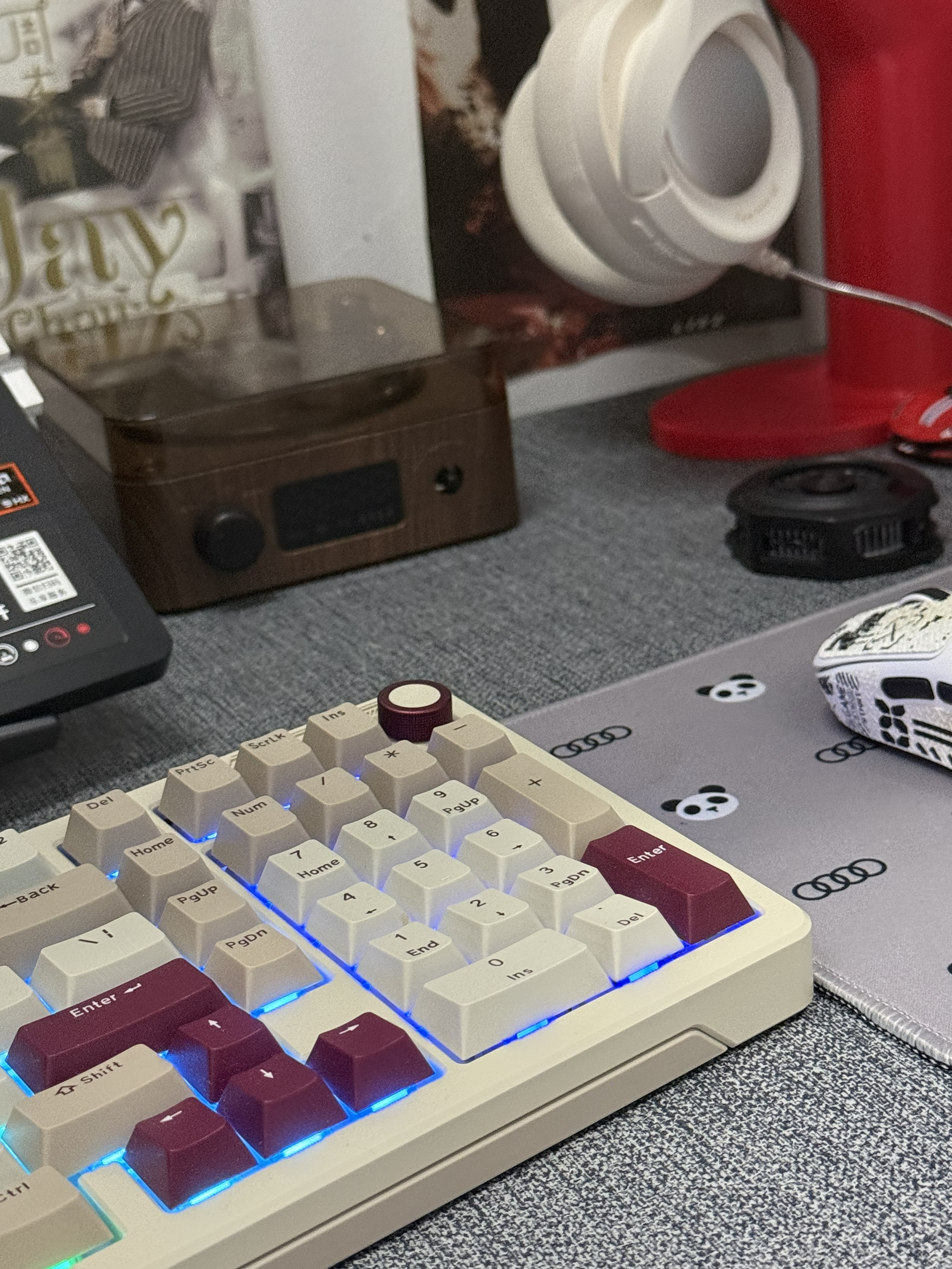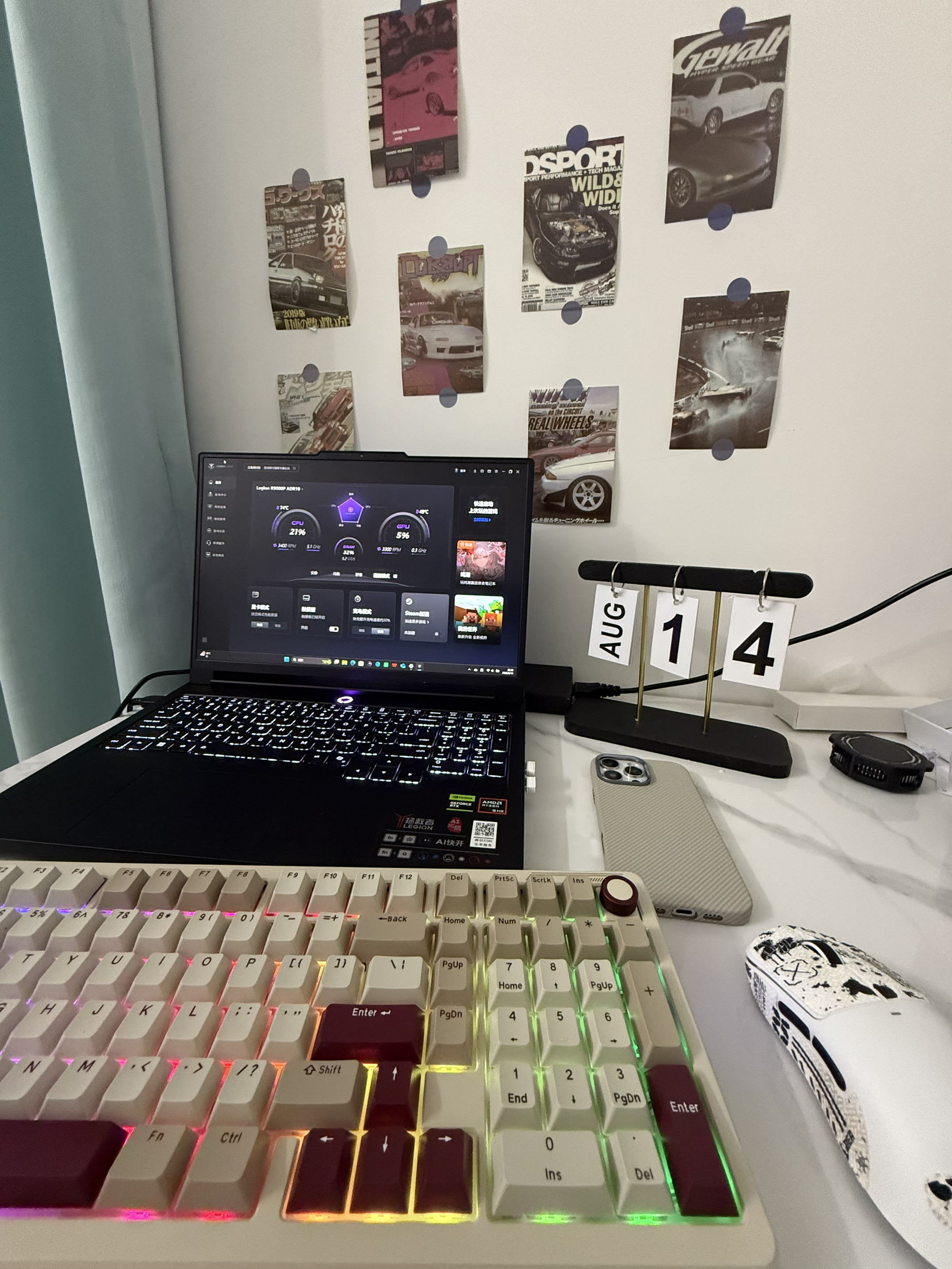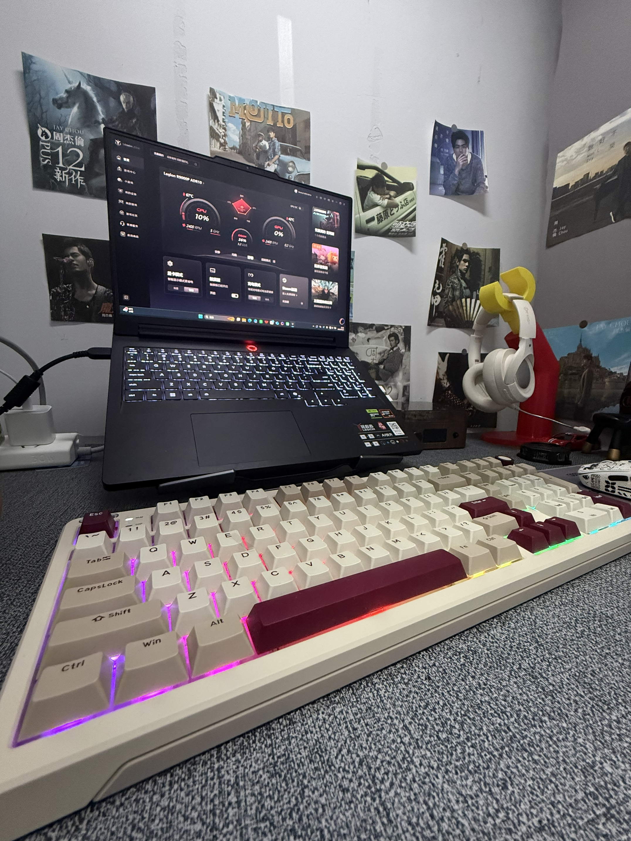 解决强迫症的书桌,颜值非常高,走的是一股电竞风!联想拯救者的9000p配上lioubee的键盘,颜值高的同时性能也没有拉下