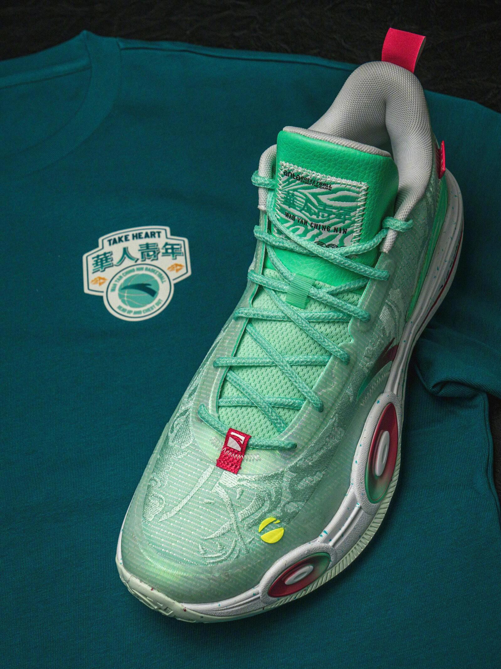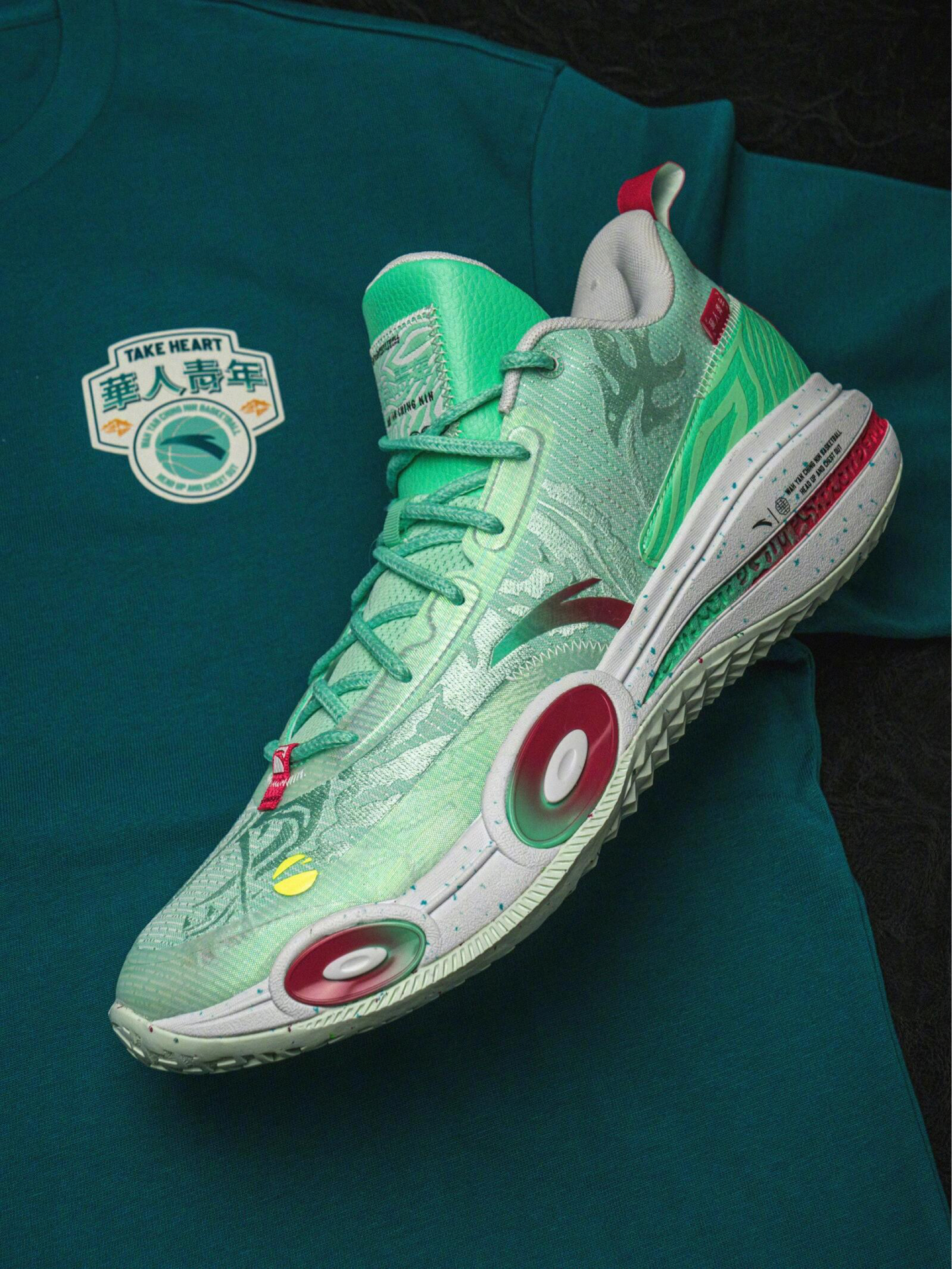 家人们谁懂啊!上周穿这鞋打半场,刚突破上篮就有对手喊:“你这鞋上的龙是活的吧?绿光闪闪的,是不是穿它能自动进球?”连场边递水的兄弟都凑过来摸——说“这鞋的龙纹跟T恤上的能对上,是把整套‘青龙战衣’穿身上了?” 先骂设计师是把“国风炸场buff”焊鞋上了吧?渐变青鳞纹+红瞳龙纹+环扣气垫,往球场上一站直接像“从武侠漫画里跳出来的‘青龙球手’”,但离谱的是它居然是实战能扛造款! 我穿它打了三小时对抗...