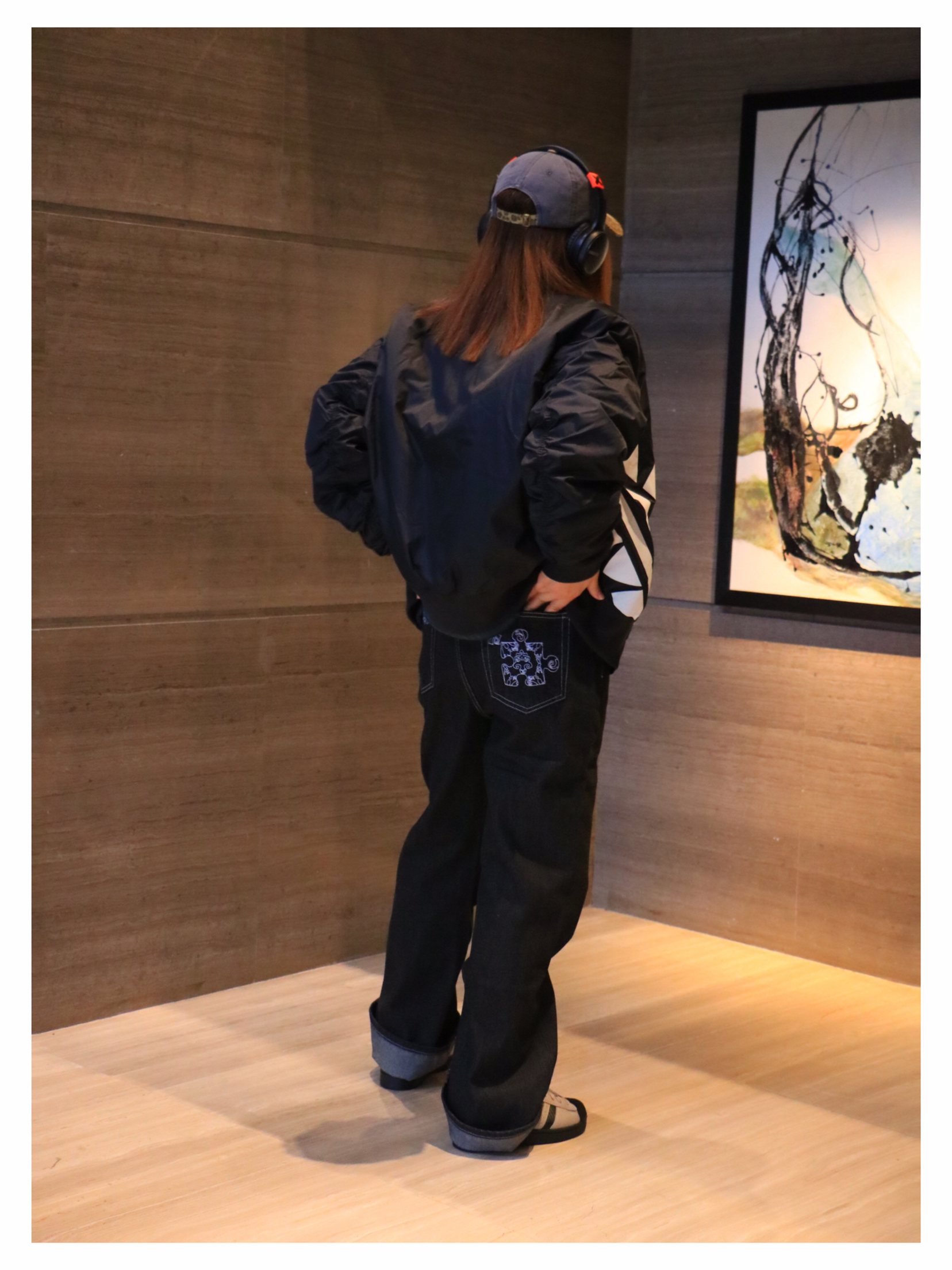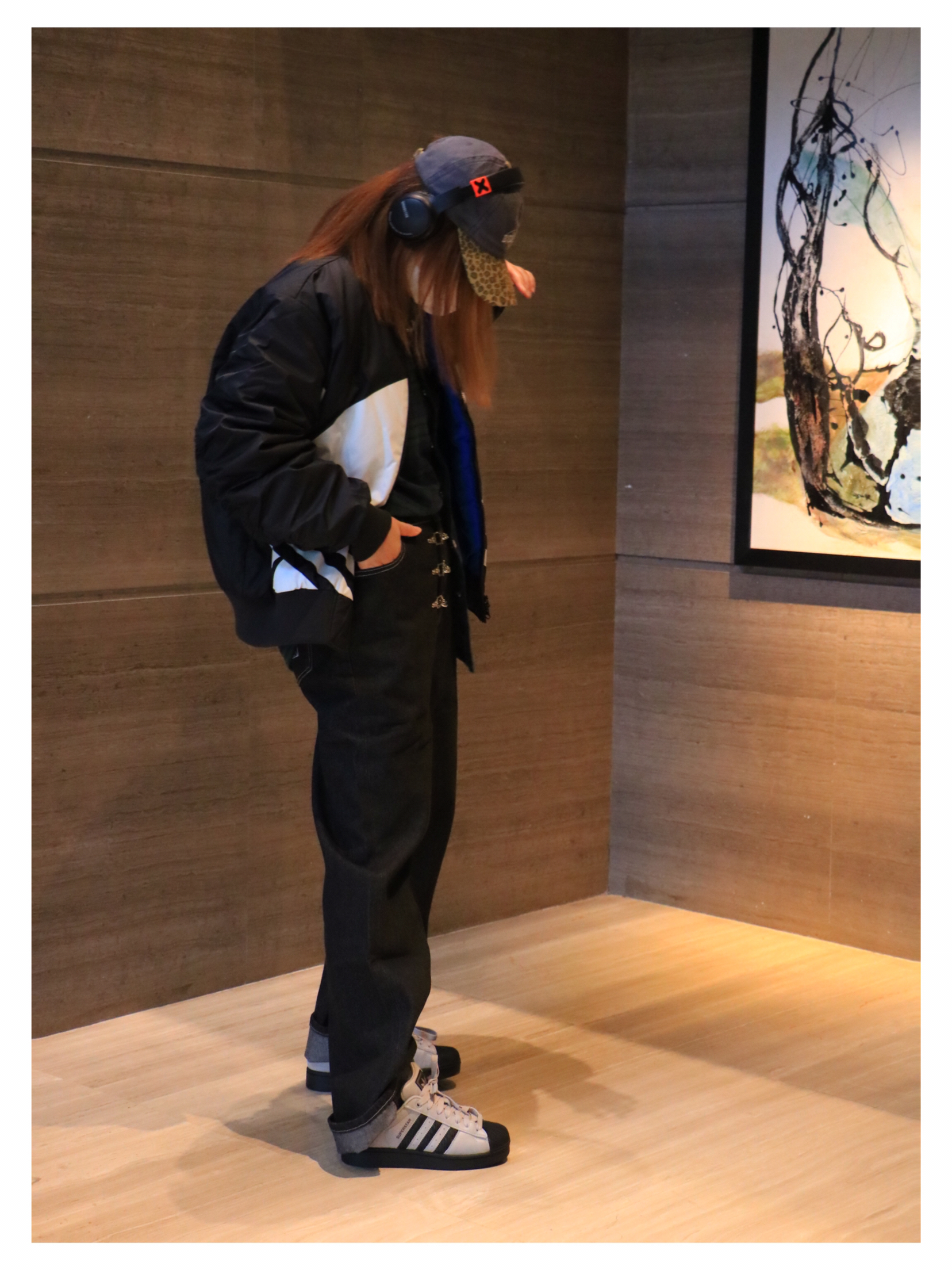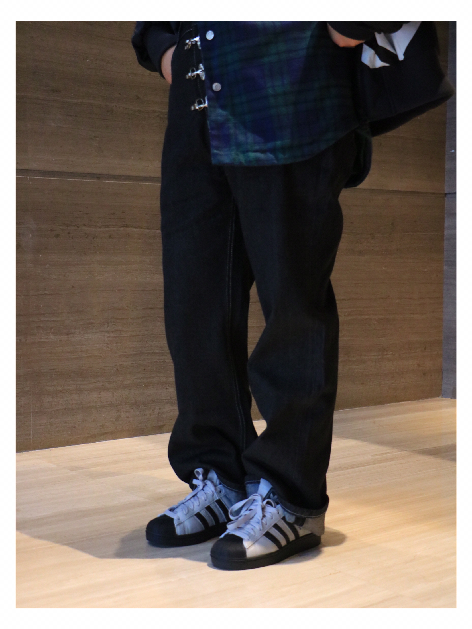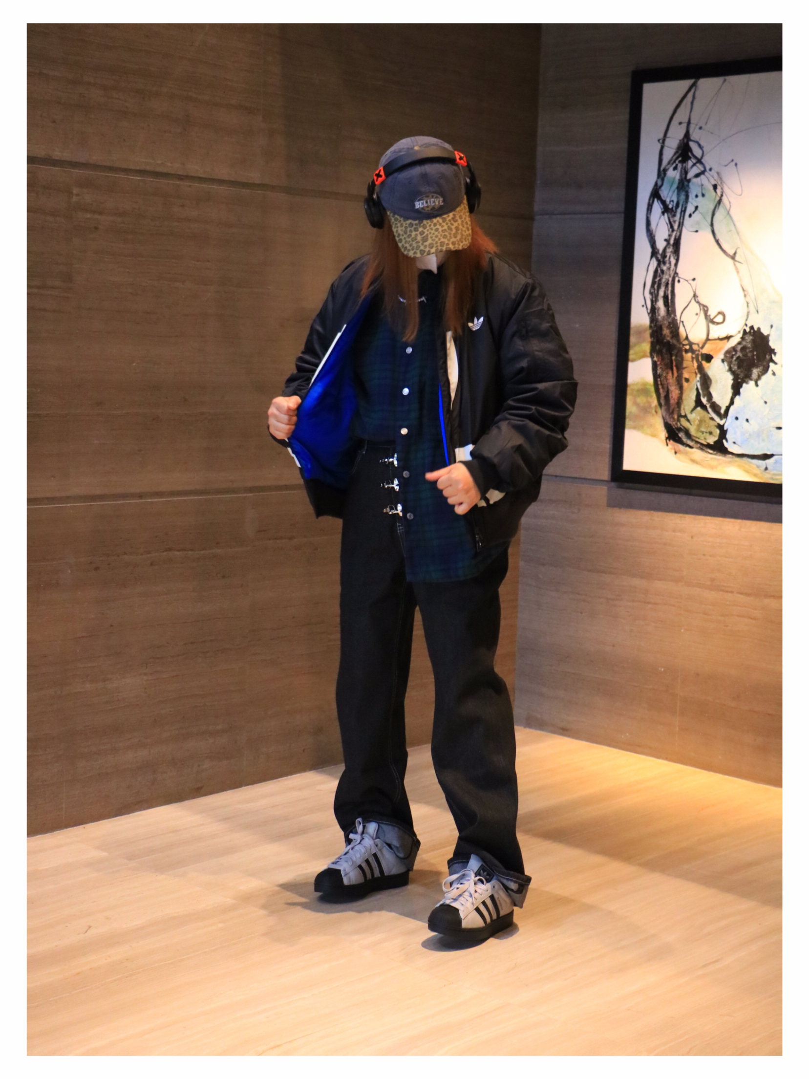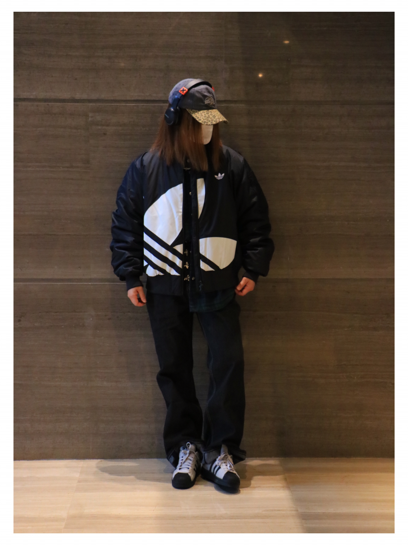 上衣:adidas 印花字母开衫棉衣 下装:飞机扣牛仔裤 鞋子:adidas贝壳头板鞋