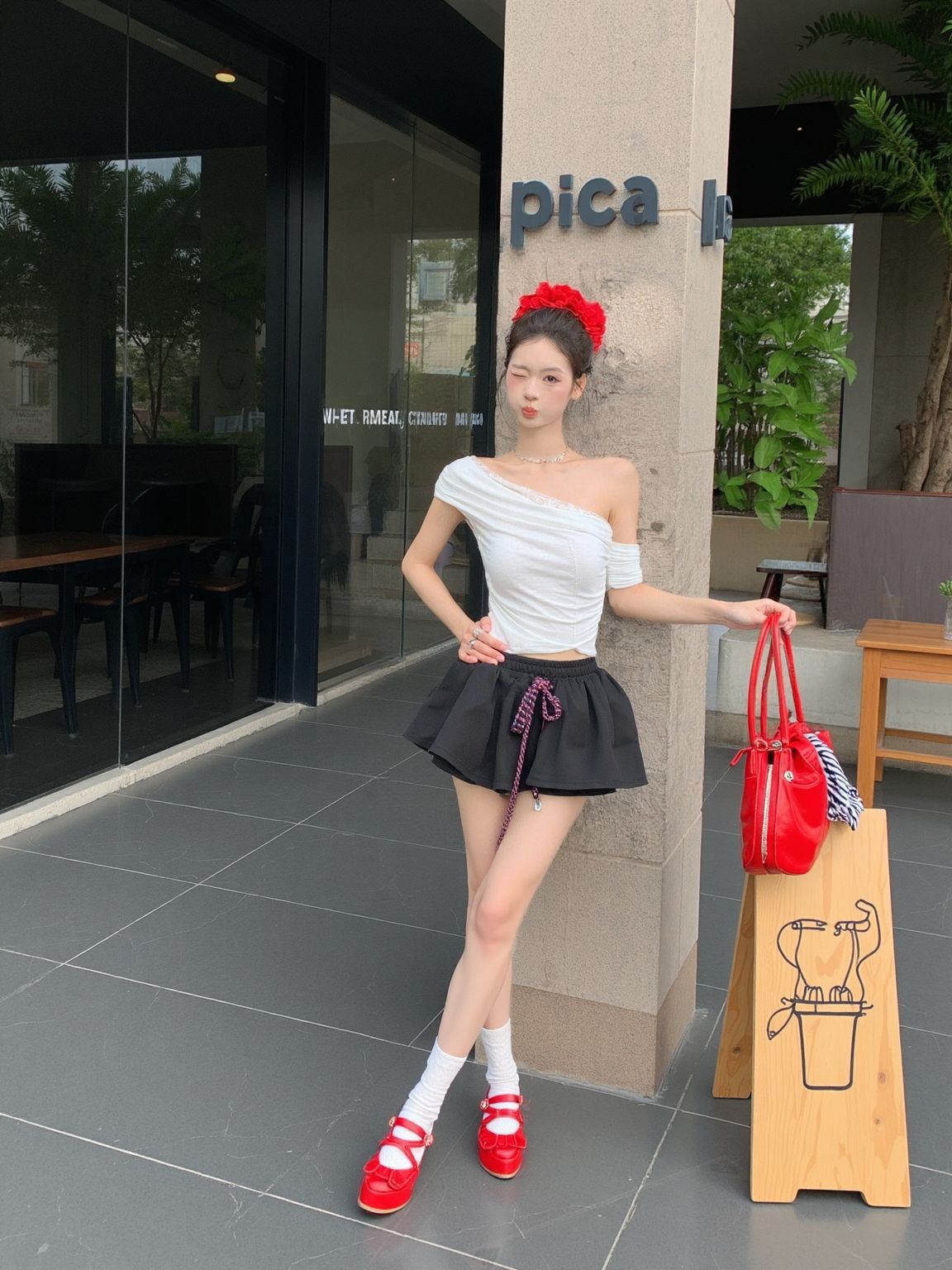 今天这身刚出单元楼,楼下便利店阿姨就拽着我问衣服哪买的,在PICA门口拍照,连隔壁桌大哥都让女朋友来扒同款!识货真人实测细节全怼脸上: ▫️斜肩上衣(识货入):拿到手摸面料直接惊了——是那种软弹的棉混纺,贴皮肤凉丝丝的!斜肩剪裁刚好露半肩,我溜肩星人穿完直接“直角肩”既视感,162/90穿XS,腰腹是微收的,吃完炸鸡肚子鼓起来都不勒,显瘦还藏肉! ▫️黑短裙(识货同店凑单):松紧腰+抽绳设...