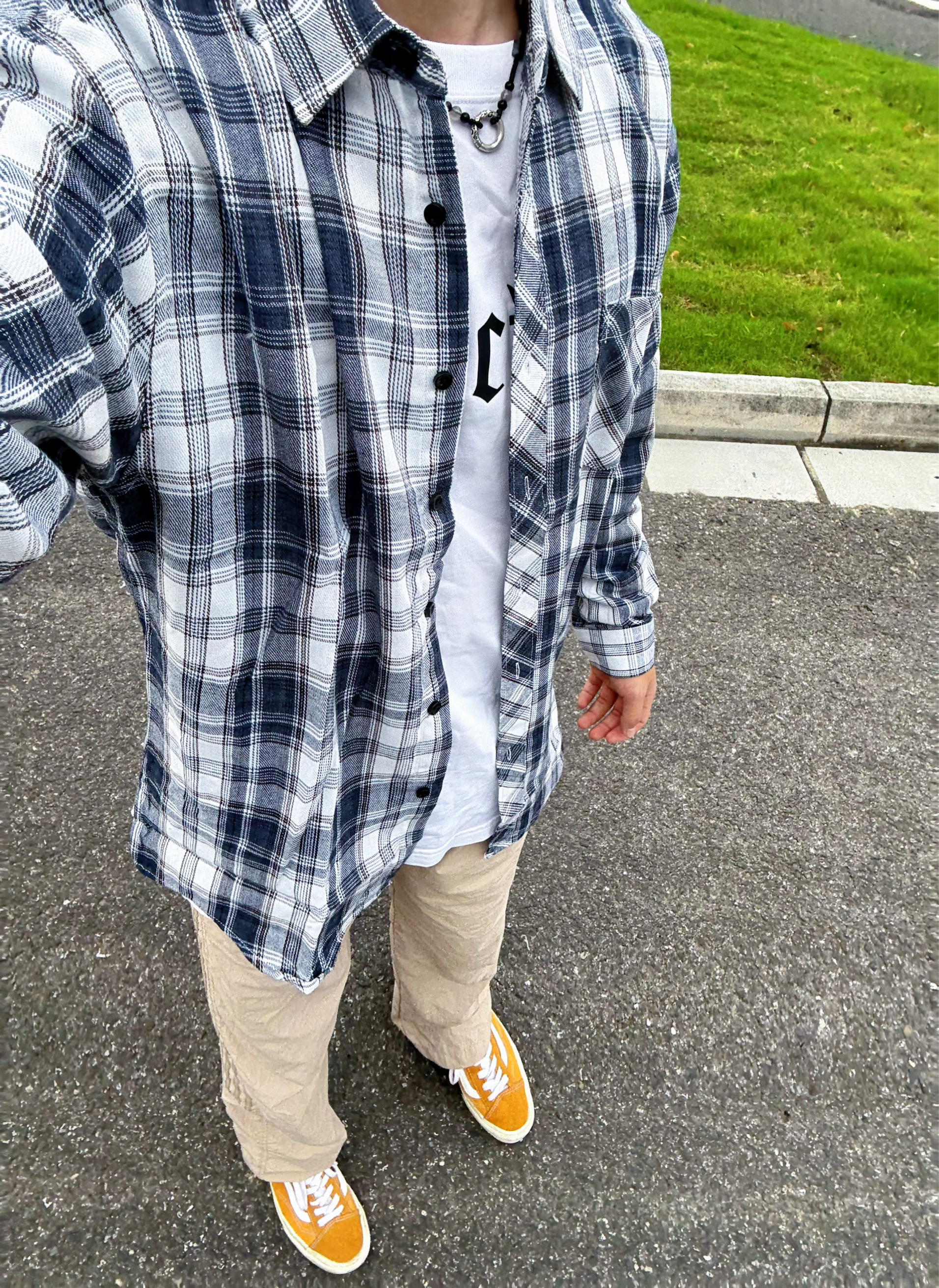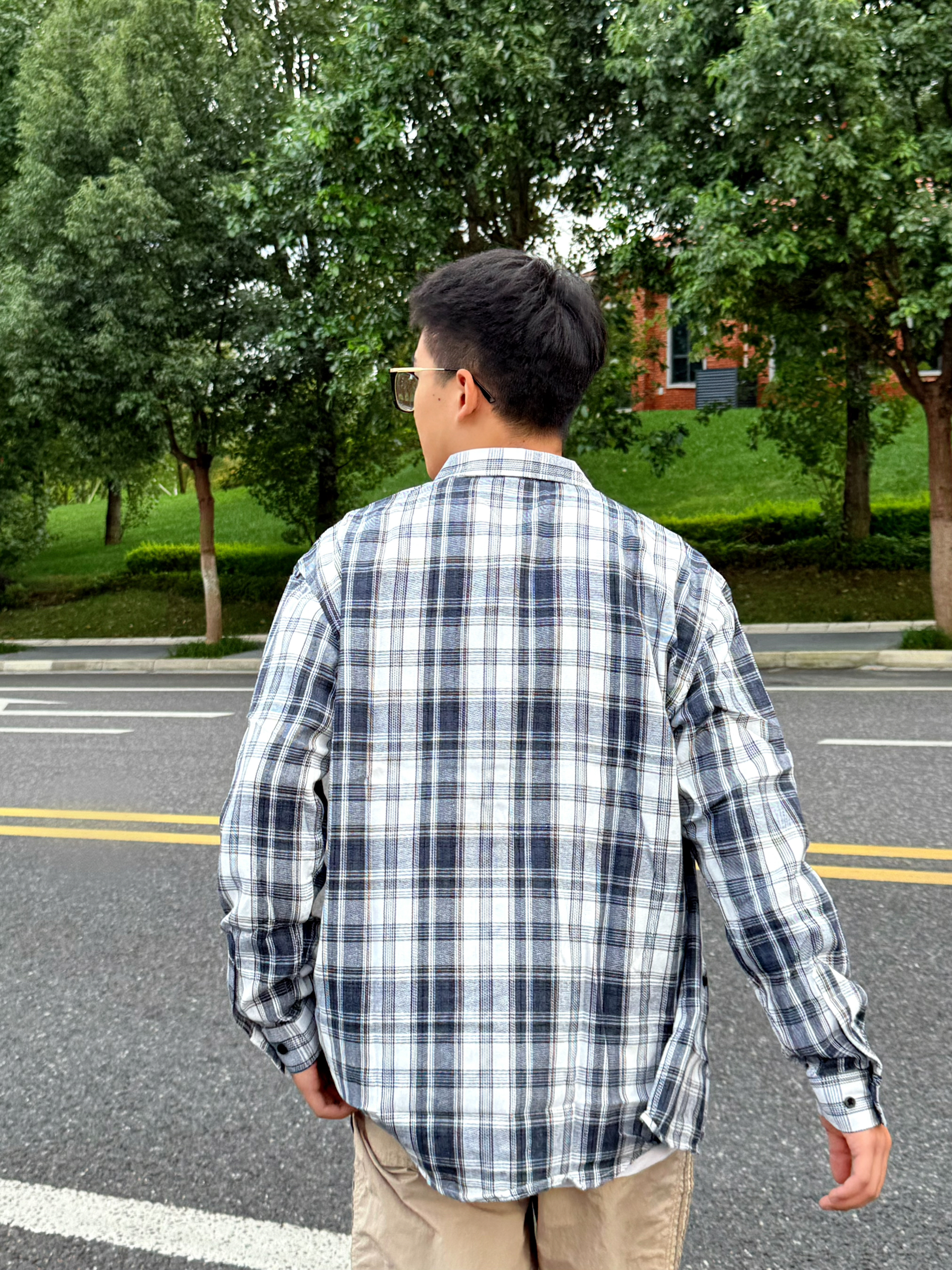经典的藏青色格子衬衫,面料穿着不是那种松垮的版型,无论是侧面还是正面 穿起来都很衬身材,非常适合秋季当外套穿,而且这个颜色比较显白,本人皮肤偏黑,穿上这件衣服也不会显黑 本人身高174 体重60kg 穿的是L码,大家可以参考一下哦