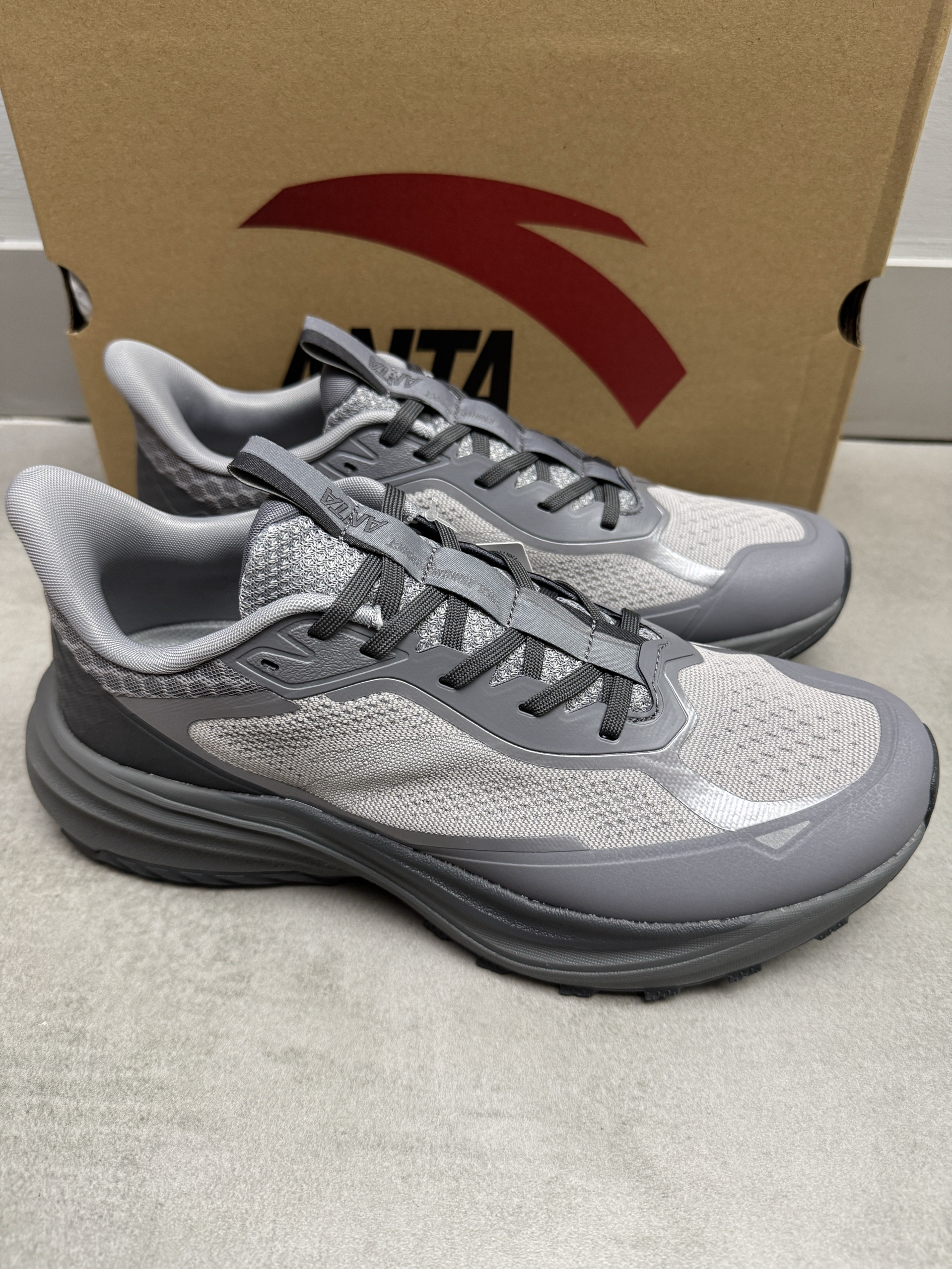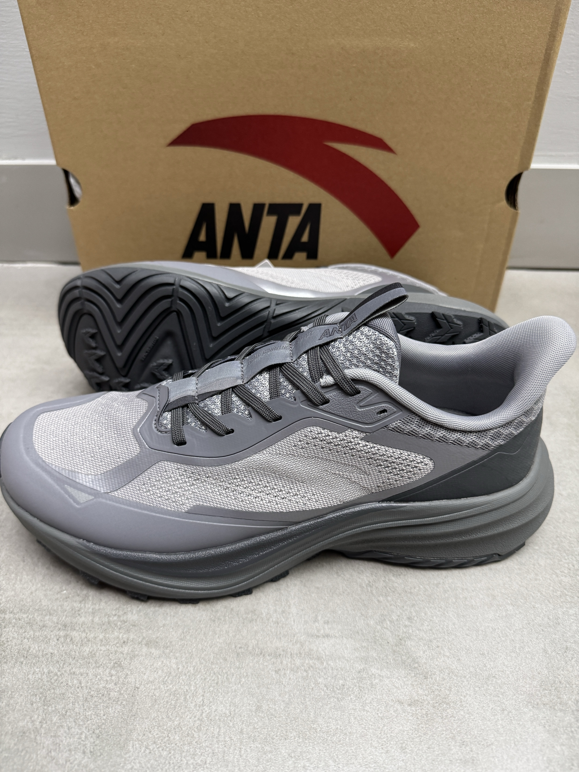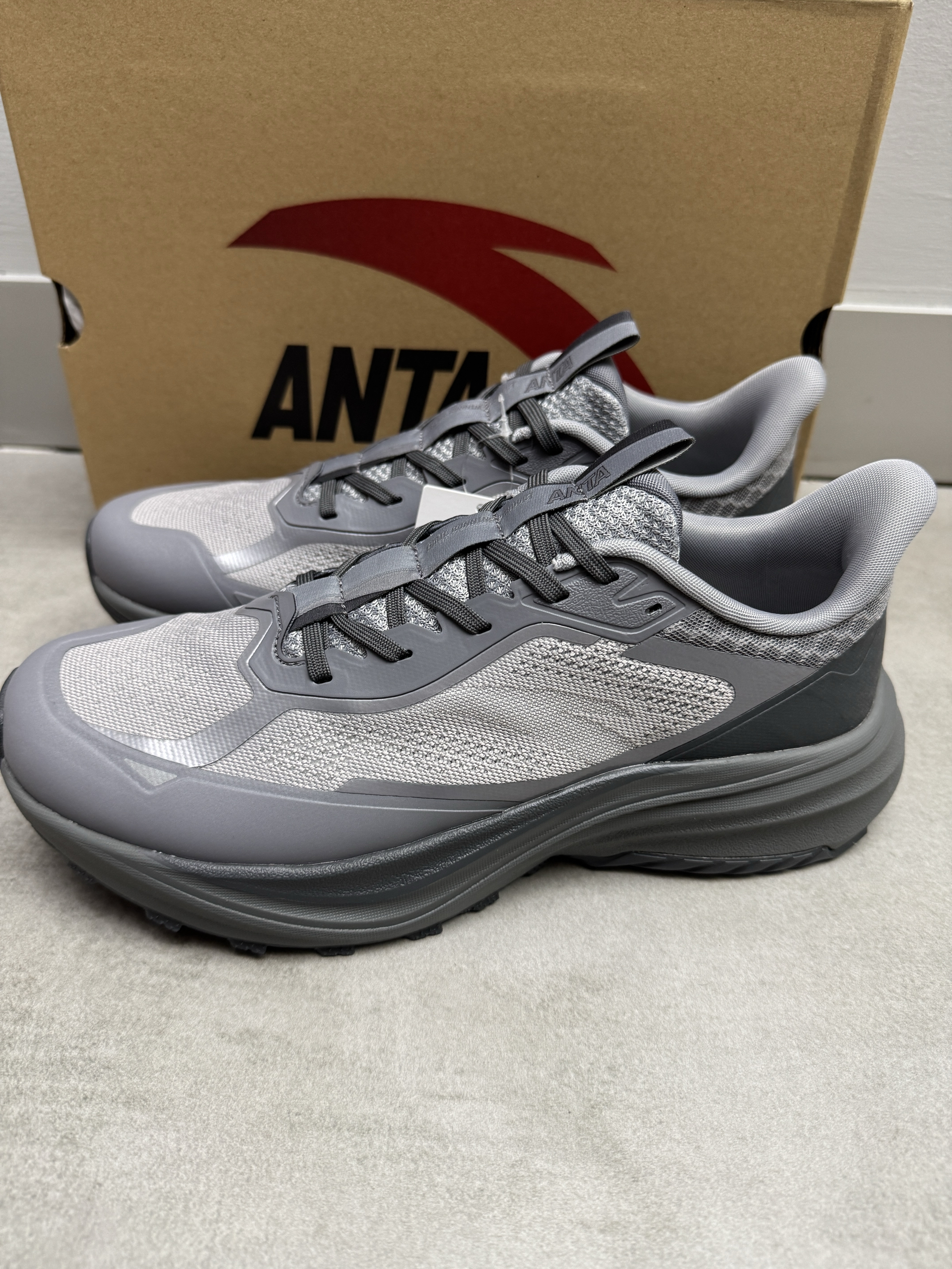 安踏这双昆仑越野跑鞋不错哦! 深灰配色简约大方,耐看又耐脏! 上脚舒服百搭,鞋子抓地力很好👍! 很有辨识度的一双鞋👍