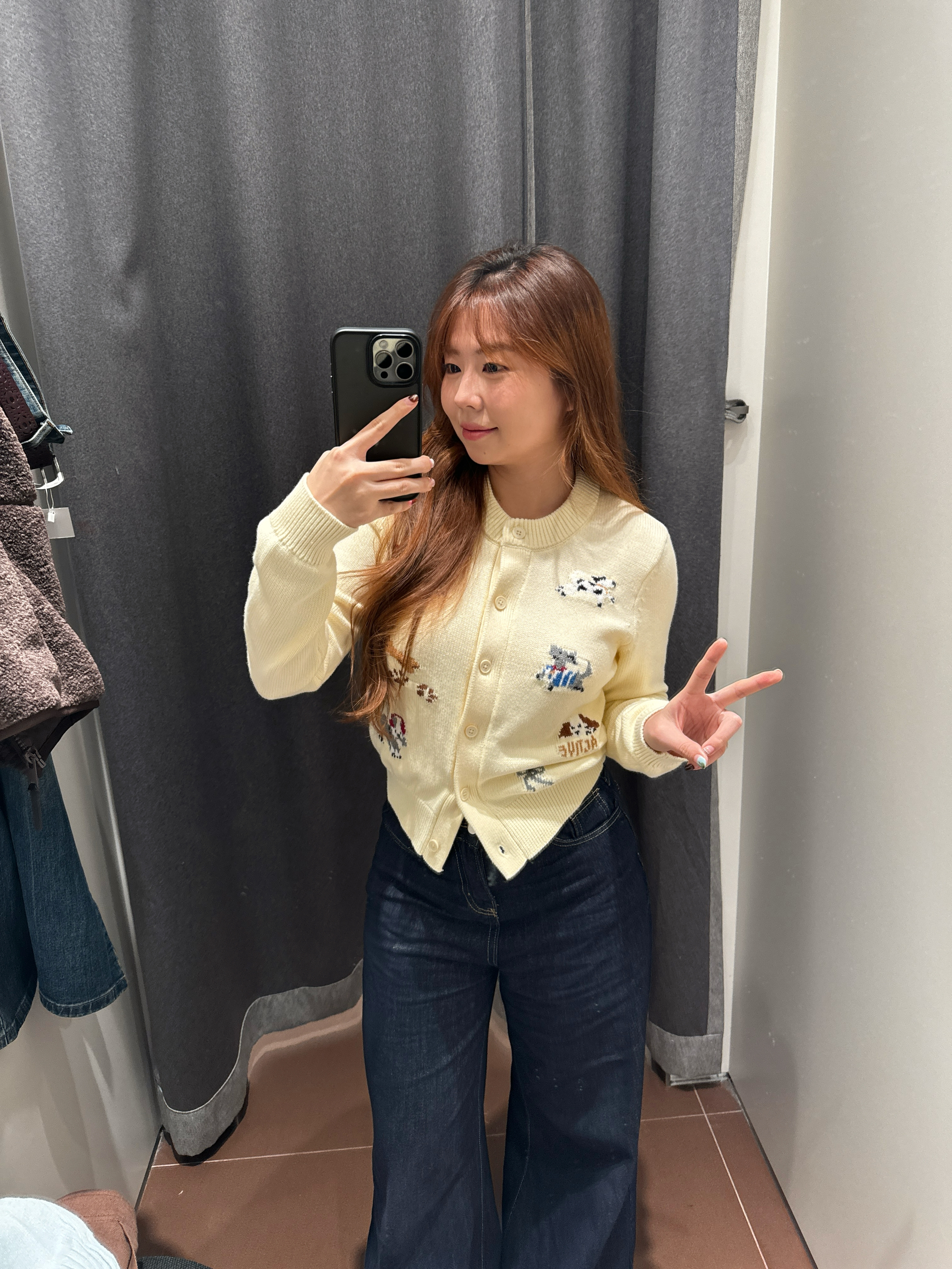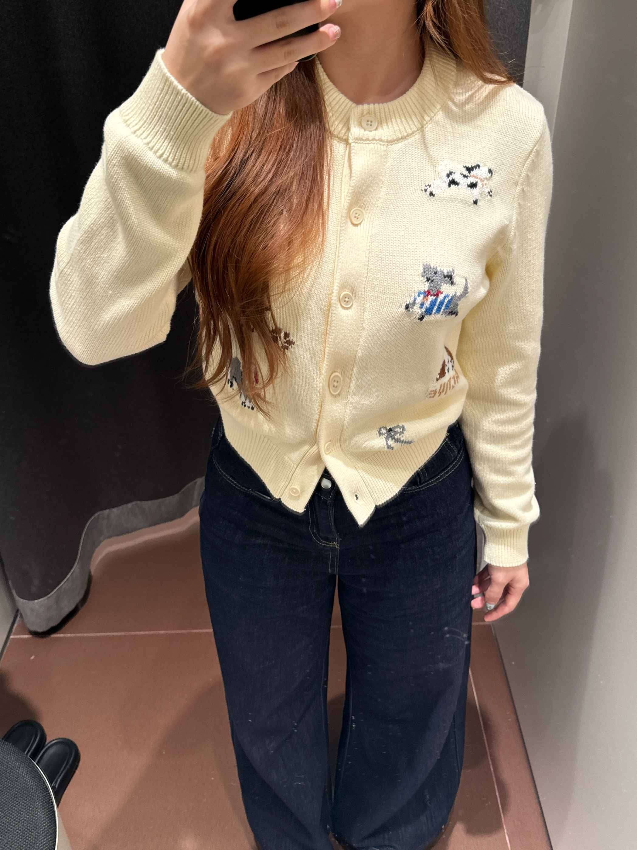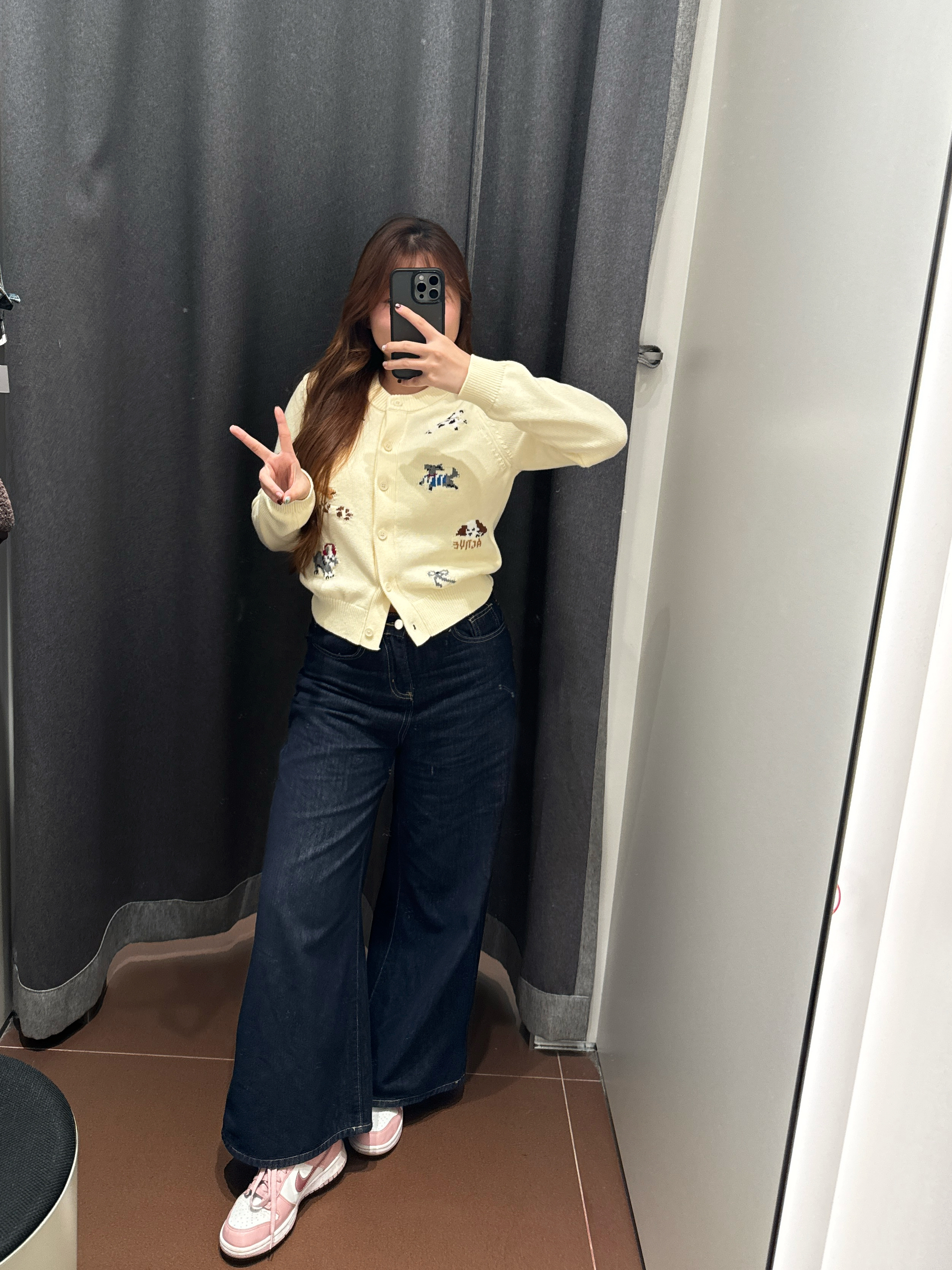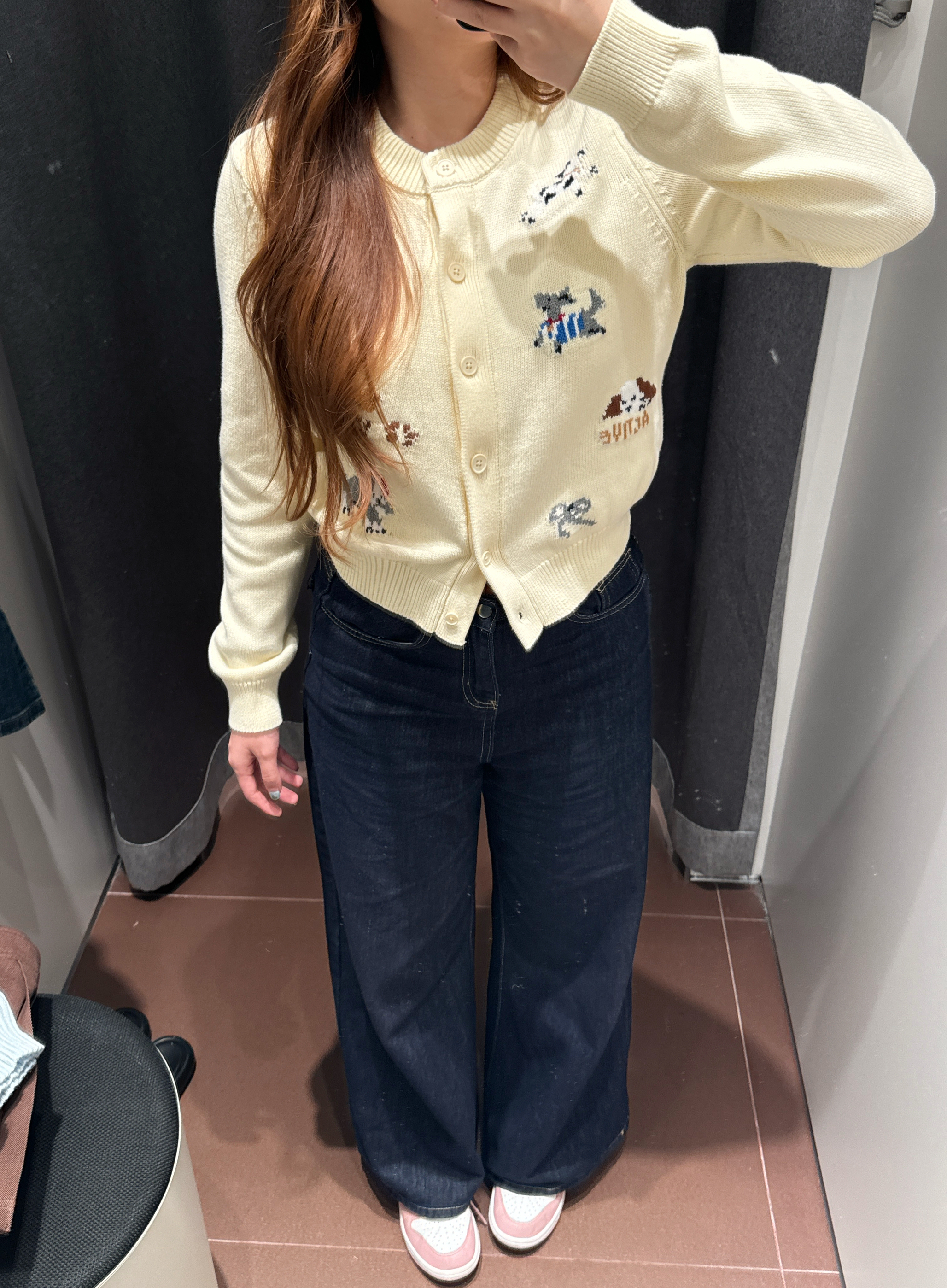 微胖梨形身材姐妹看过来! 挖到一件把“可爱”和“显瘦”焊死的针织开衫, 谁穿谁甜谁显瘦! 我是163/110微胖梨形身材 奶黄色本身就很衬肤色,显白又温柔。 满印的小狗针织图案巨精致, 还有小蝴蝶结点缀, 甜妹属性直接拉满~ 我这种梨形身材, 搭配深色阔腿牛仔裤绝绝子! 上短下长的搭配把腰线往上提, 视觉上腿长直接加10cm, 阔腿裤又把胯宽腿粗的缺点全遮住, 显瘦效果真的绝! 再搭双粉白运动鞋,...