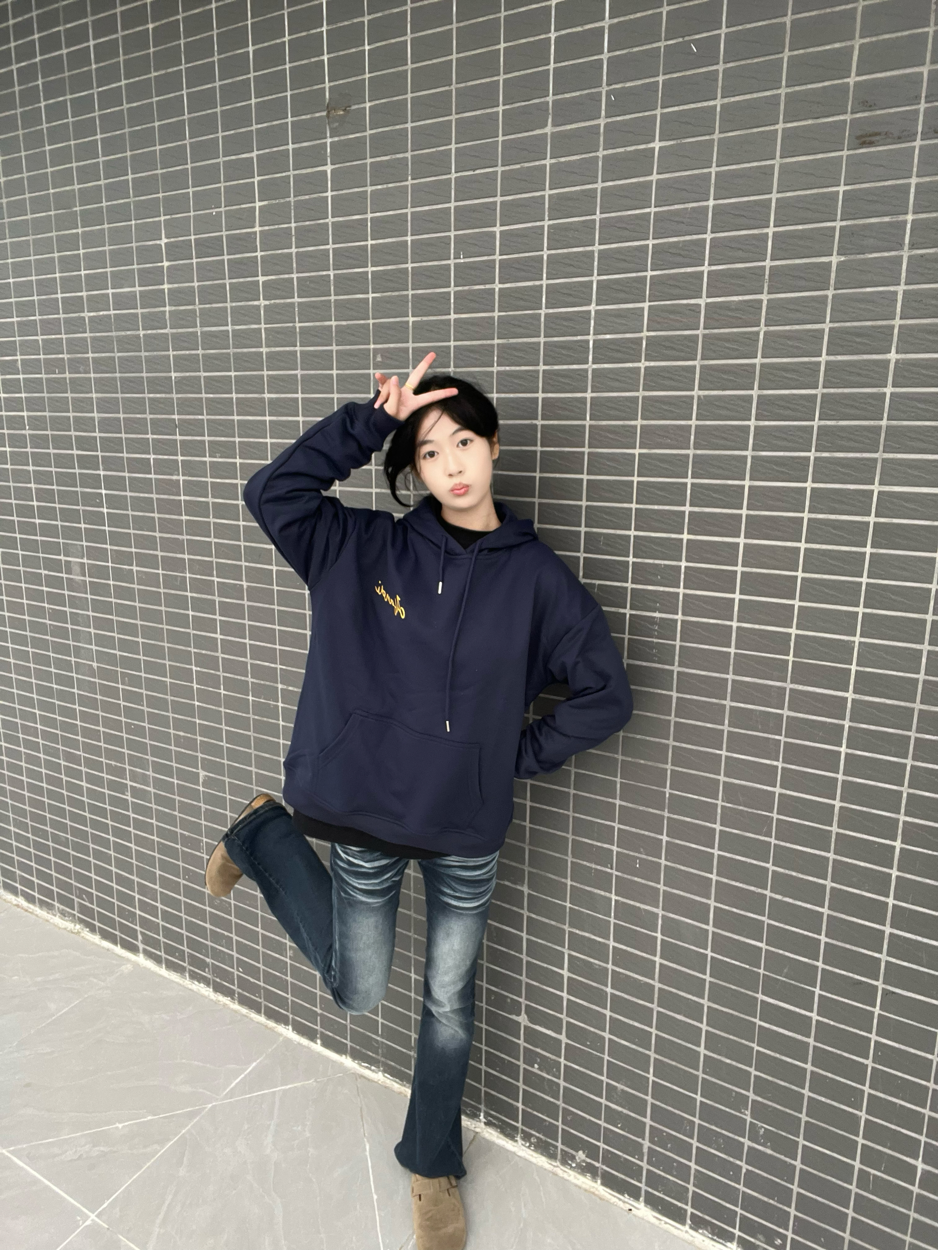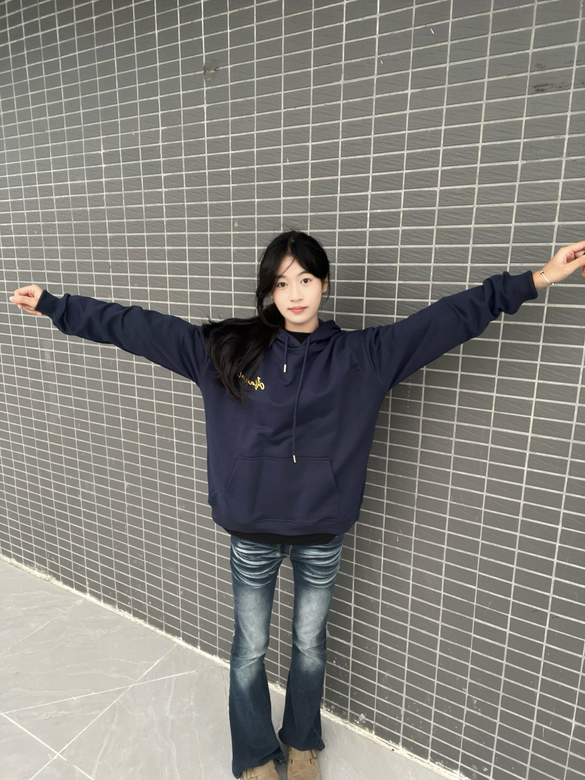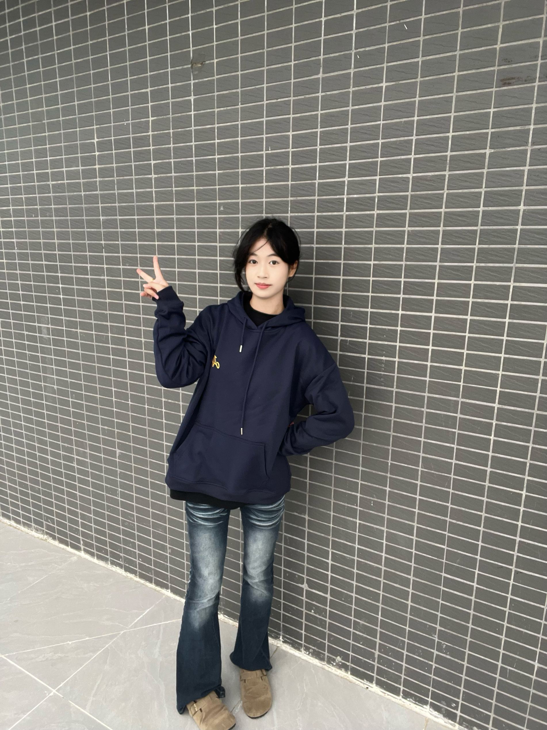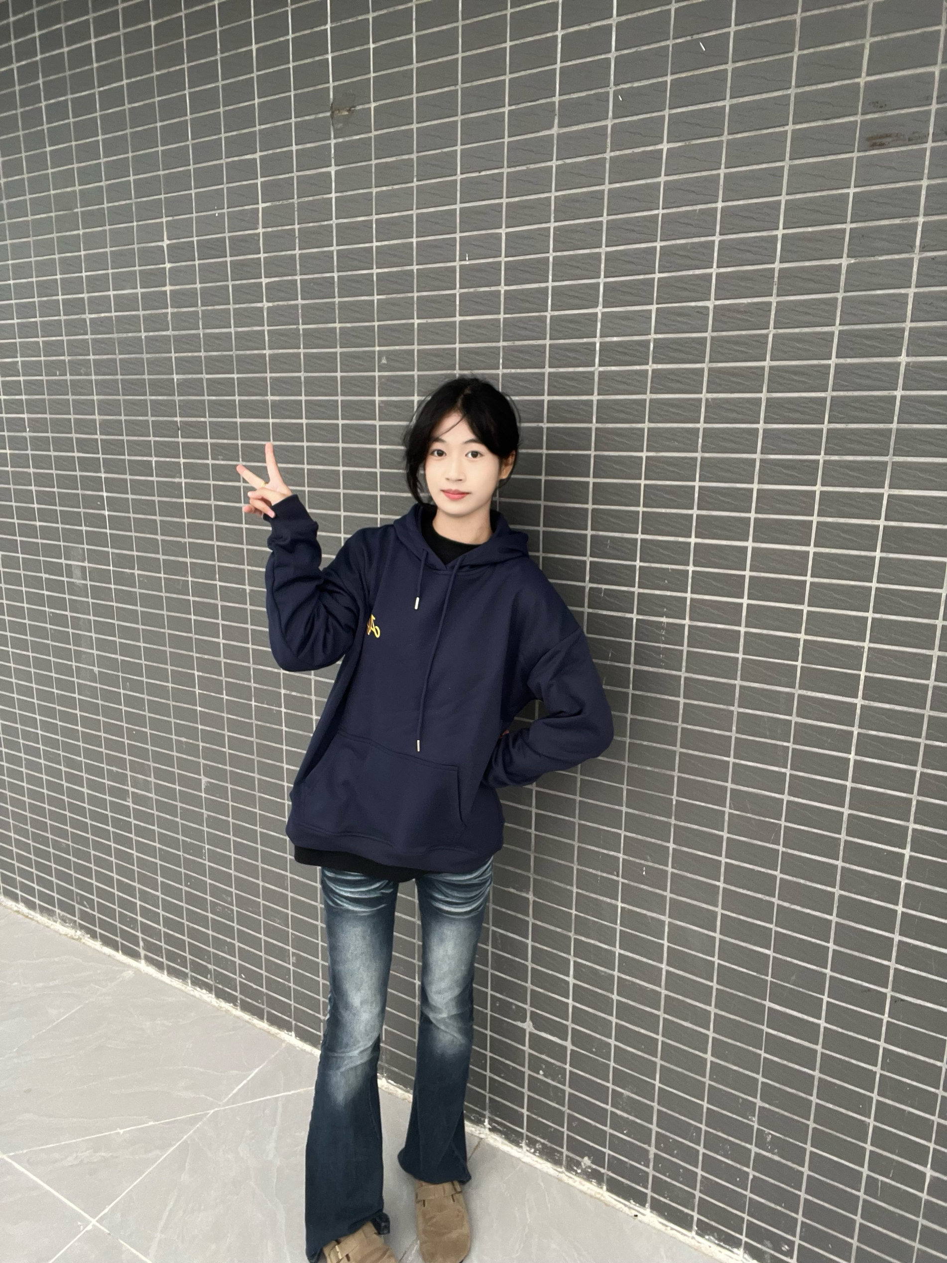 看看我的新穿搭 好喜欢这样穿!藏蓝色很显白 搭配牛仔裤也是很OK的 适合学生党 日常百搭