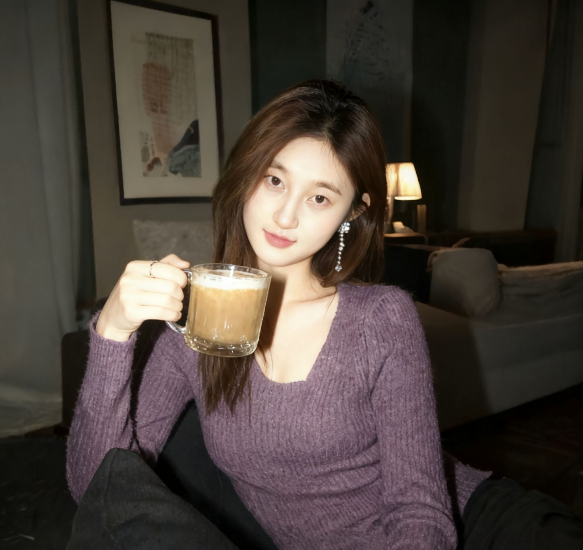 有些温暖,是穿在身上的牵挂。 就像这件香芋紫毛衣,在微凉的傍晚裹住我时, 忽然懂了—— 原来秋冬的浪漫,是指尖触到软乎乎面料的瞬间, 是V领衬出锁骨时的小雀跃, 也是捧着热咖啡, 被暖光和温柔包裹的岁岁年年。 它不是件普通的衣服, 是我在平淡日子里, 给自己的一份温柔仪式感。