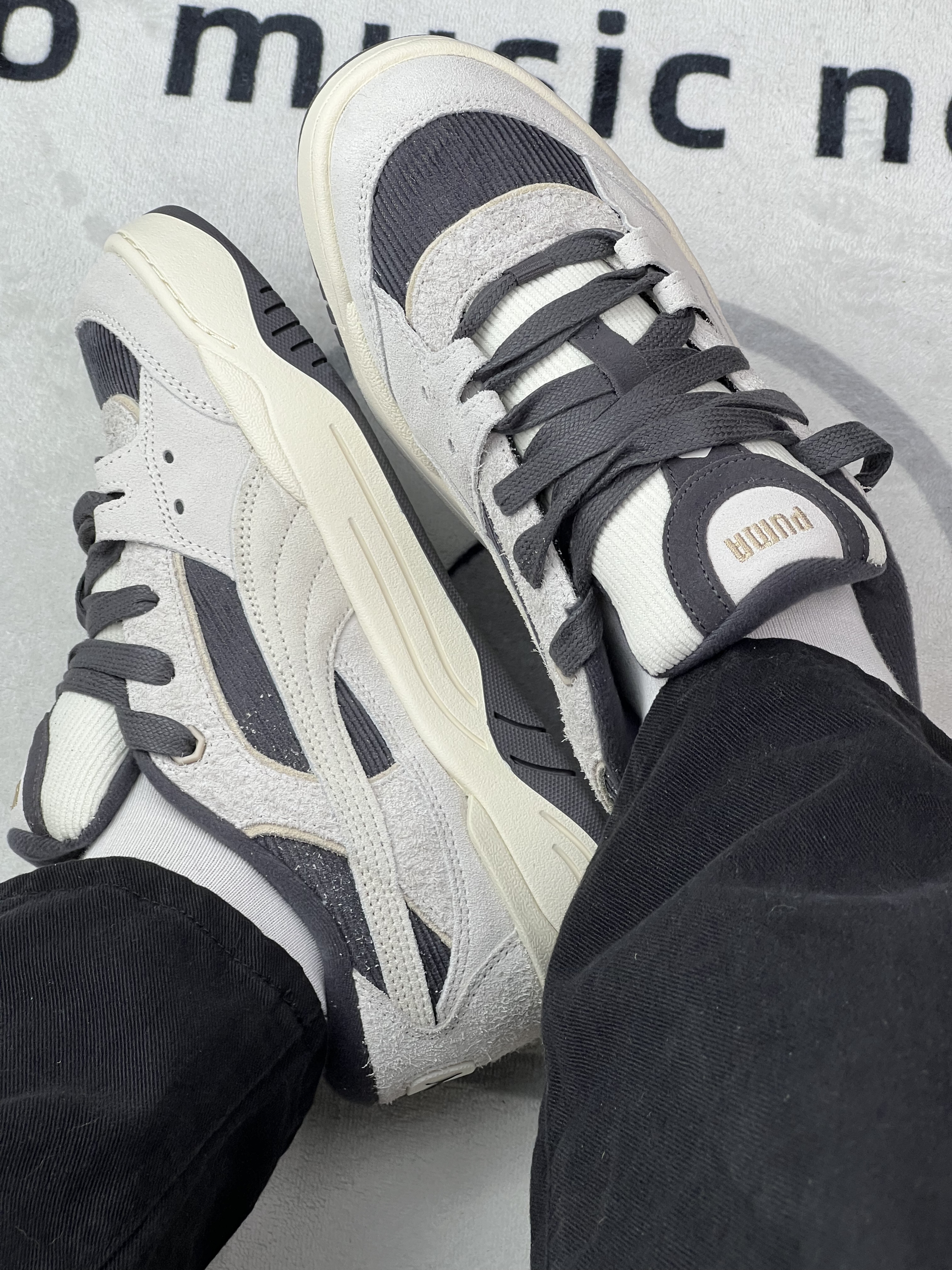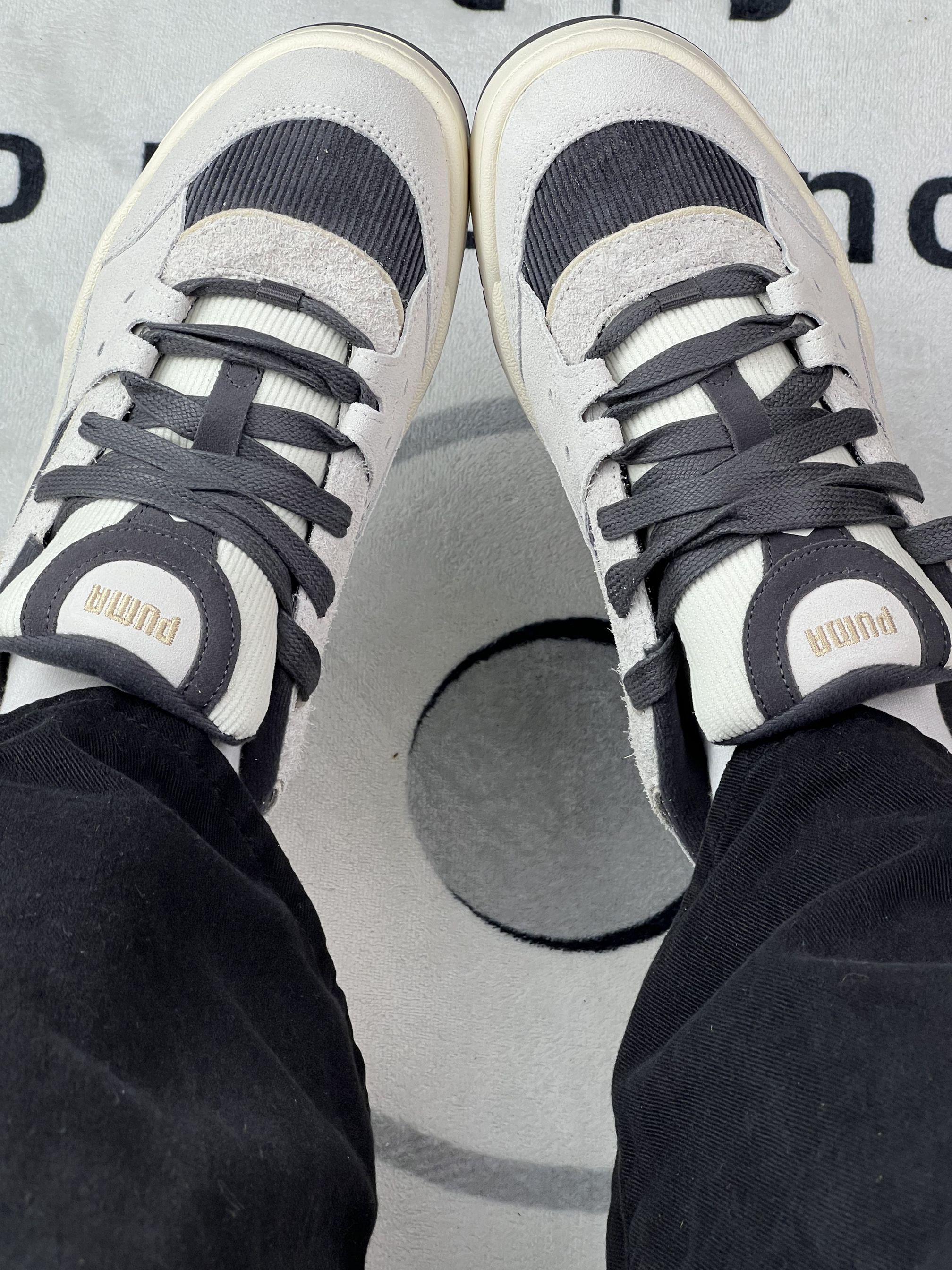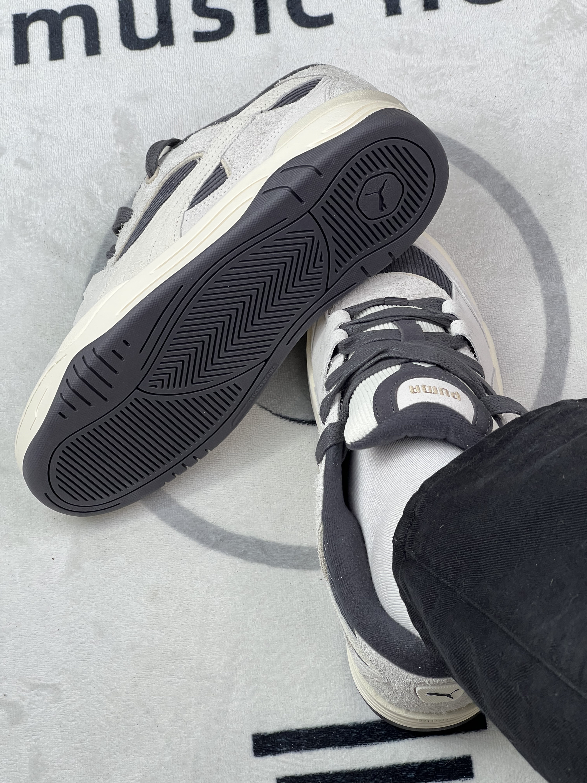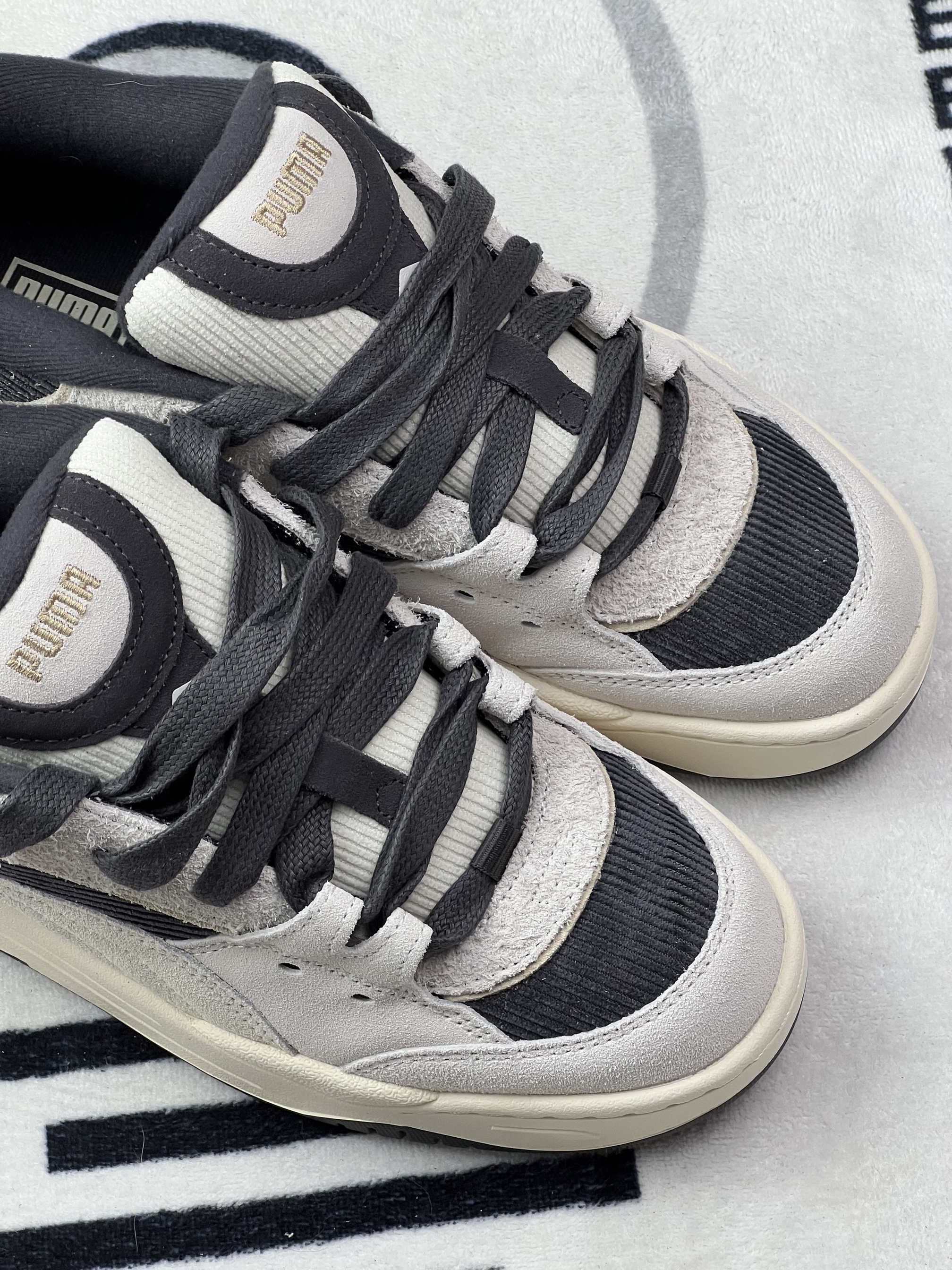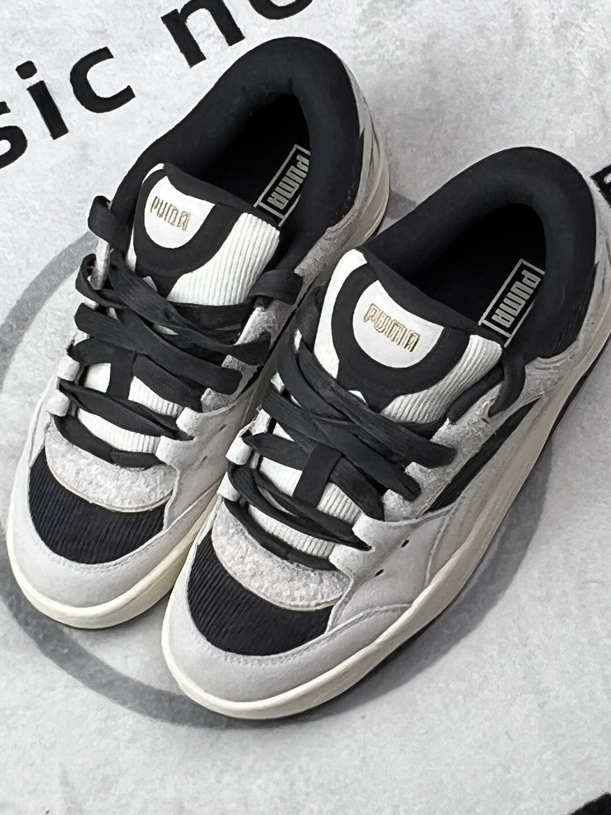 穿这双PUMA快一周,说点实在的: 鞋型是低帮,搭黑裤还挺顺眼,但鞋面是灯芯绒+麂皮拼接,昨天吃饭溅了点油在鞋头,拿湿巾擦了半天还是留了浅印子,有点难打理😮💨。 脚感属于中等,日常通勤走半小时不硌,但鞋底偏薄,踩石子路能感觉到颗粒感。另外鞋码有点迷,我平时穿36,这双得系紧鞋带才不晃,宽脚可能会有点挤。🤨🤨 还有个小问题:鞋舌是薄款,系紧了脚背会有点压,松一点又容易跑偏。🧐🧐 总结就是,...