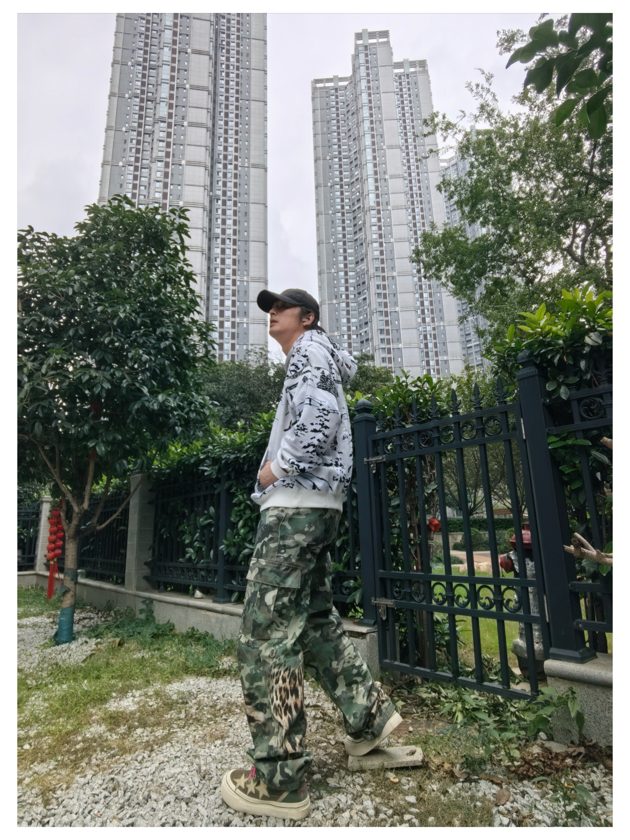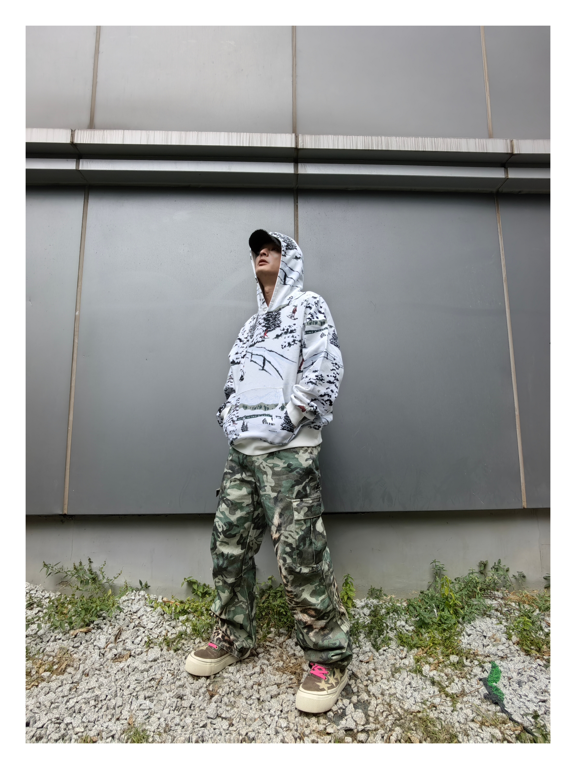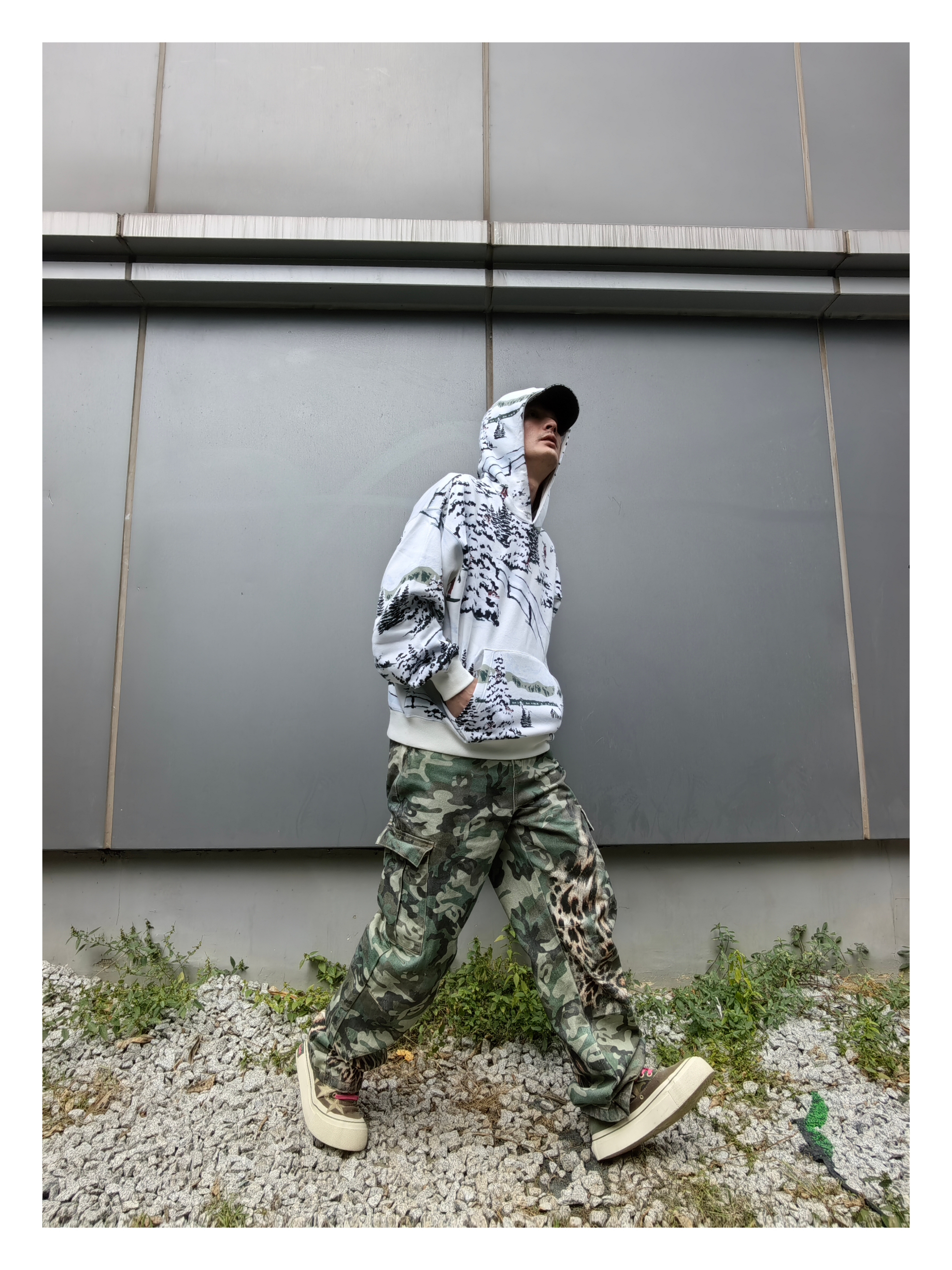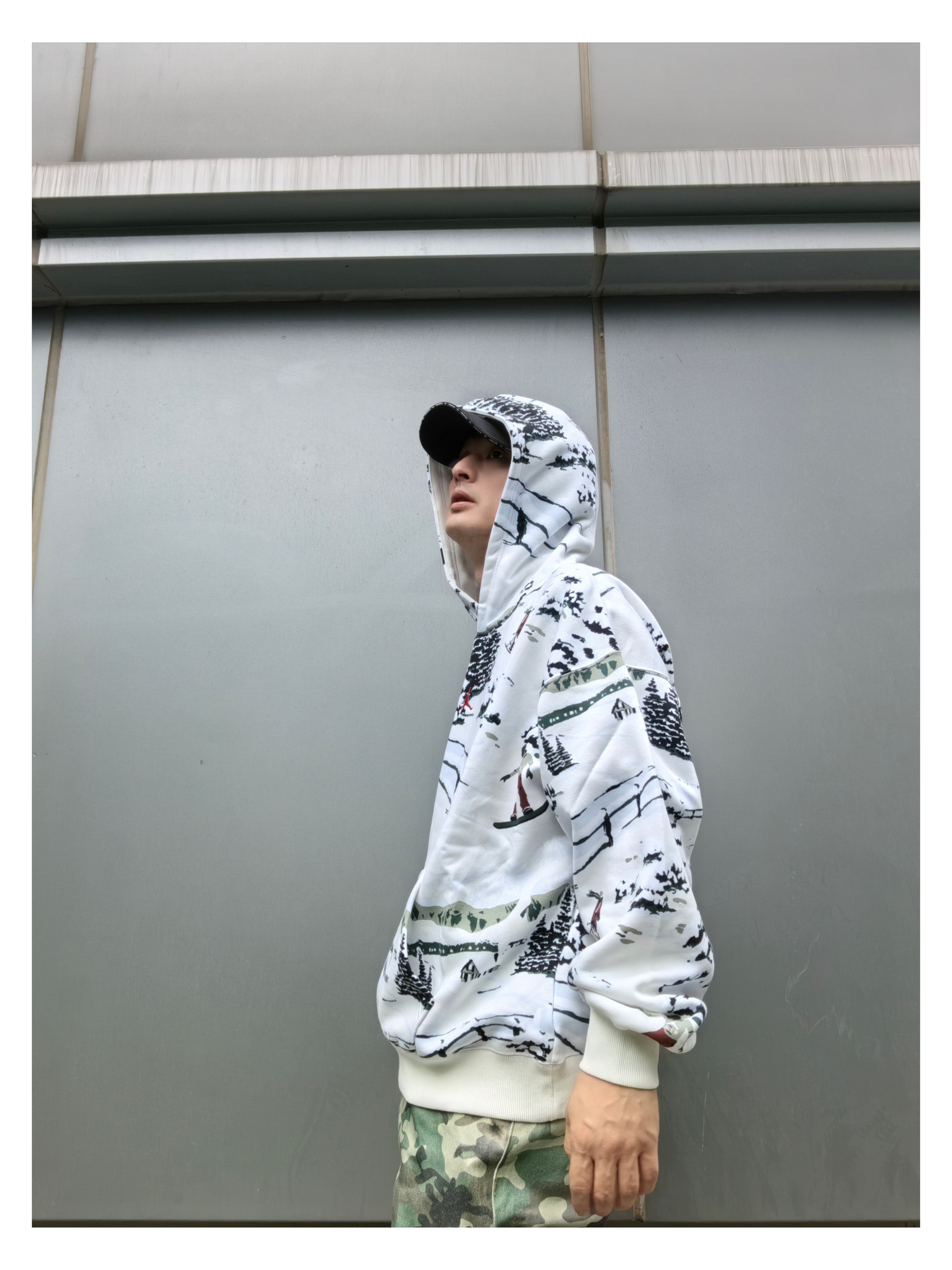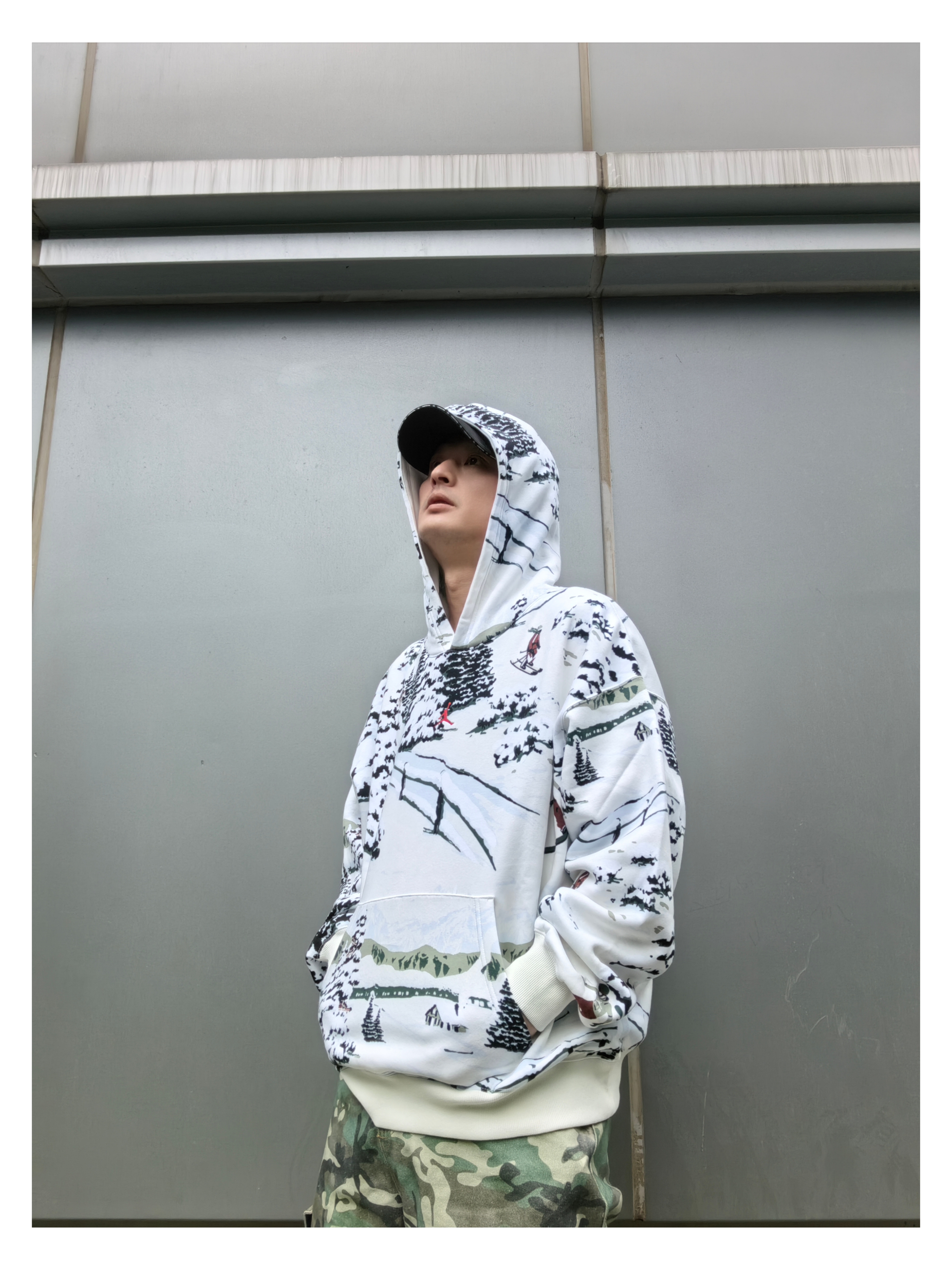 上衣:jordan 连帽印花 二次元风连帽卫衣 下装:s45 豹纹多口袋牛仔裤 鞋子:户外风麂皮帆布板鞋
