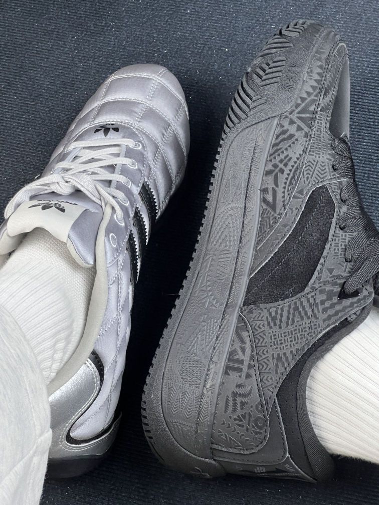 分享两双最近上脚的鞋,先说说左边这双阿迪达斯。它的鞋面是那种绗缝设计,看起来挺特别,但穿久了会觉得有点闷脚,尤其是夏天的时候,脚感会有点黏腻。不过日常搭配还不错,就是鞋码有点偏大半码,得注意选。 再看右边这双,它的纹路设计很有风格,但鞋帮处的填充有点硬,刚开始穿的时候脚踝会有点硌,得磨合一段时间。而且鞋底的纹路虽然有设计感,但耐磨性一般,日常走路还行,要是经常走粗糙路面,损耗会有点快😅。 总的...