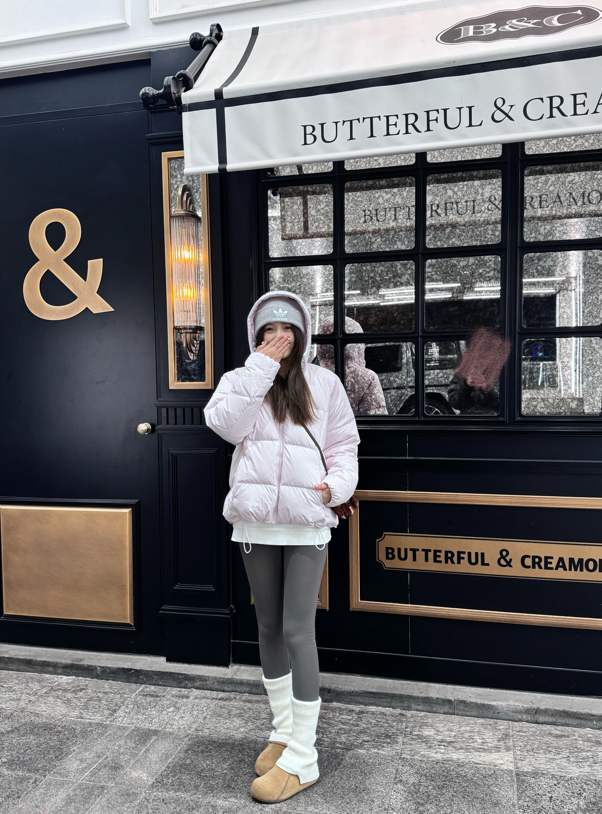 紫色的羽绒服真的好高级 第一次尝试亮色 果然很显白又轻松靓丽 搭配灰色打底就是很高级~