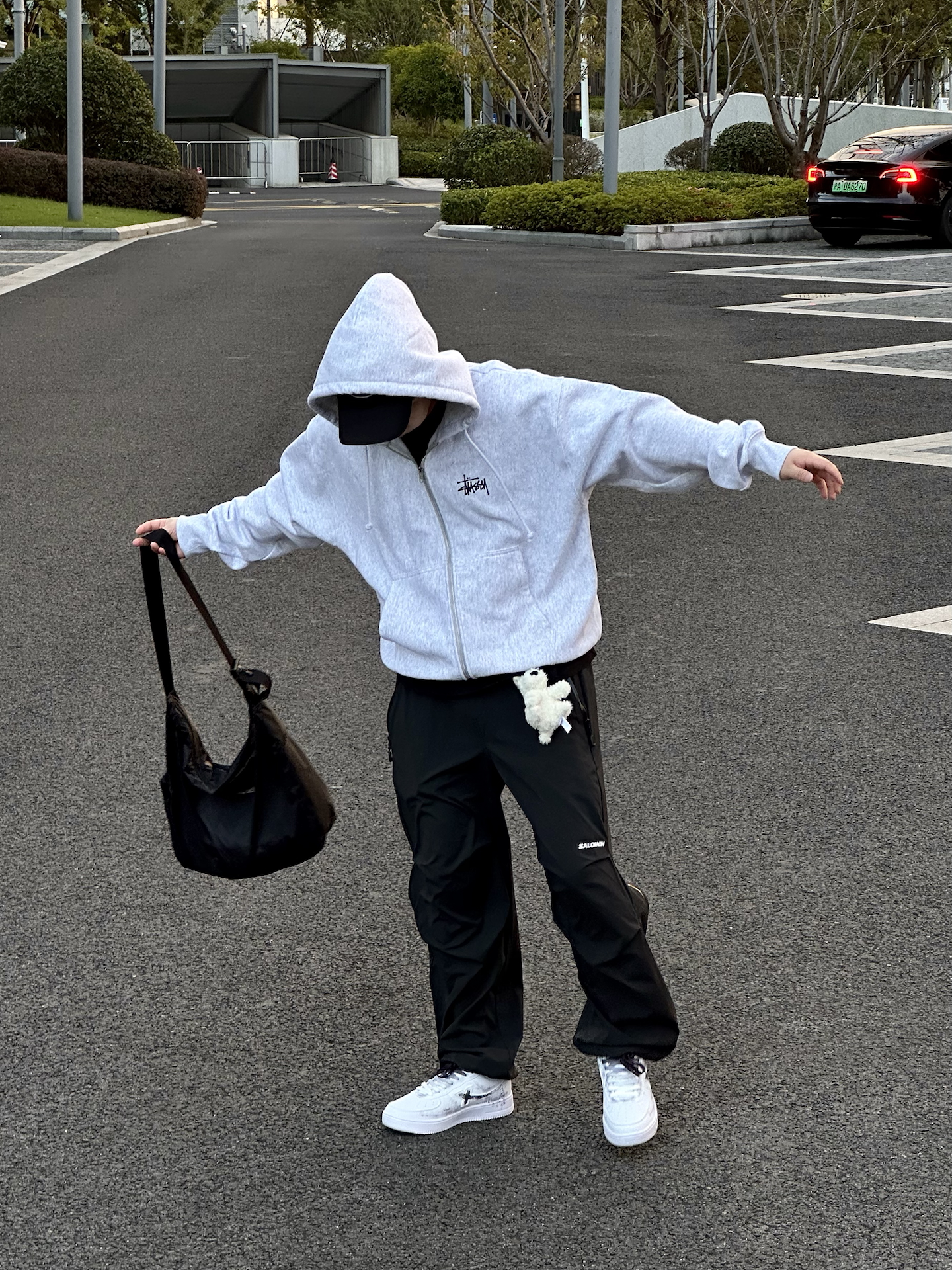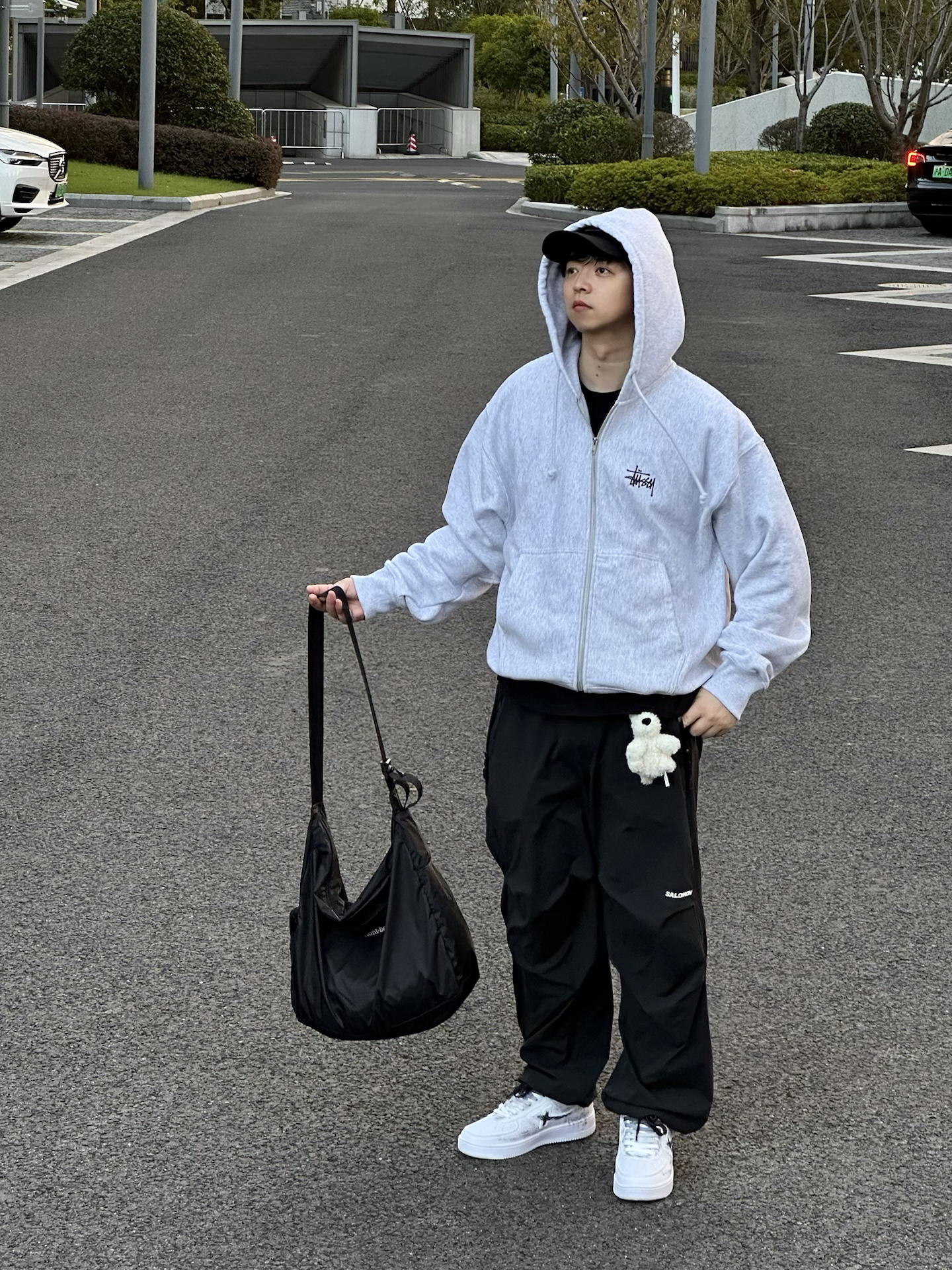 哈喽👋🏻大家好哇 这里是🪨石地夫的穿搭小日记📝 - 我真是太爱秋天穿卫衣了🤩 今天上身stussy经典logo拉链卫衣 随性又很有少年感的cleanfit✨ 搭配机能冲锋裤很有范儿 小白鞋当然是入秋必备单品🔥 脚上这双特步的空军一号就很百搭 @万花弄 定制了很酷的做旧泼墨风格鞋面✔️ 画龙点睛了属于是💡 #秋天氛围感球鞋 #万花弄 #秋日鞋履焕新指南 #踏秋暴走鞋 #秋天万能穿搭公式 ...