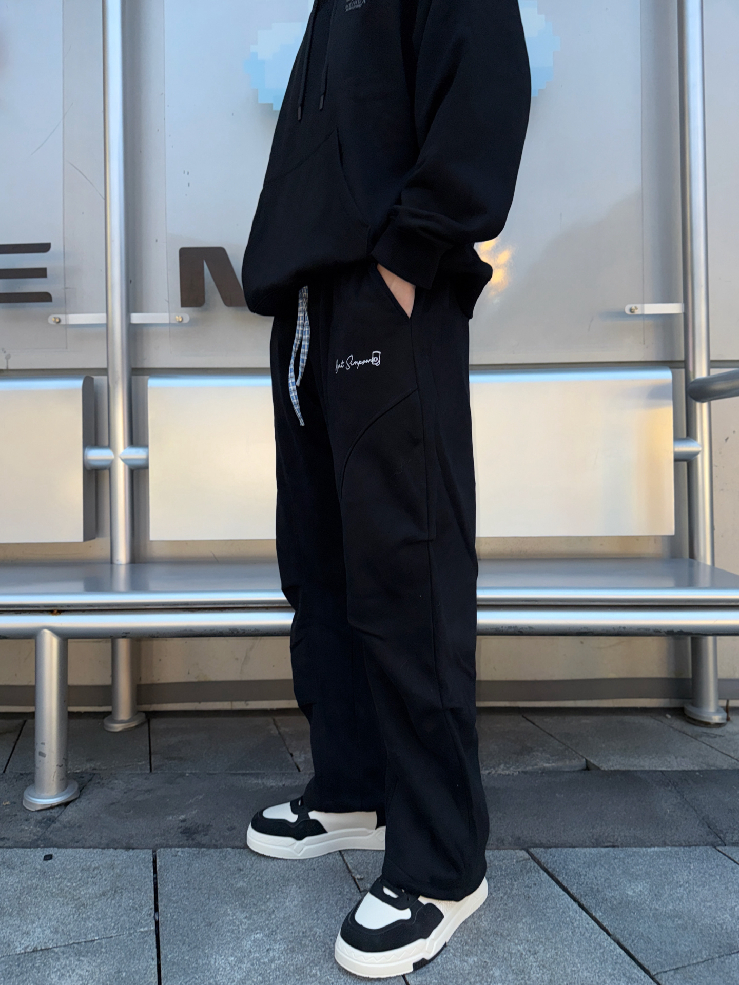 谁能拒绝这种又帅又舒服的穿搭啊😎 黑色连帽卫衣简约百搭,重点是这条黑色辛普森阔腿裤,版型巨显瘦还贼有垂感,抽绳设计很有细节感~ 搭配黑白运动鞋,日常出街这么穿,松弛感直接拉满,耳机一戴谁都不爱系列! 兄弟们,这种舒适感拉满的穿搭必须码住,懒人穿搭选它准没错! #这条裤子我必买 #双十一这件我必买 #预热一下秋冬穿搭 #TheSimpsons/辛普森一家