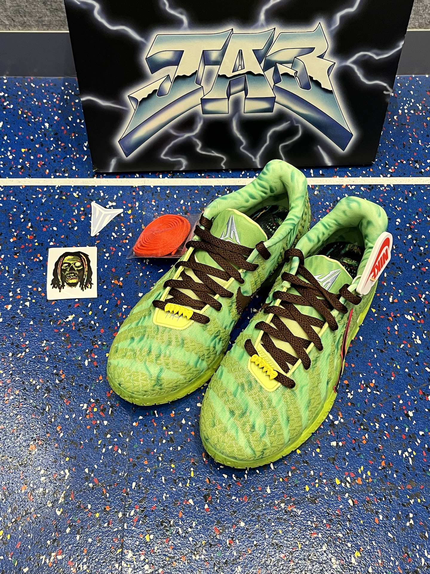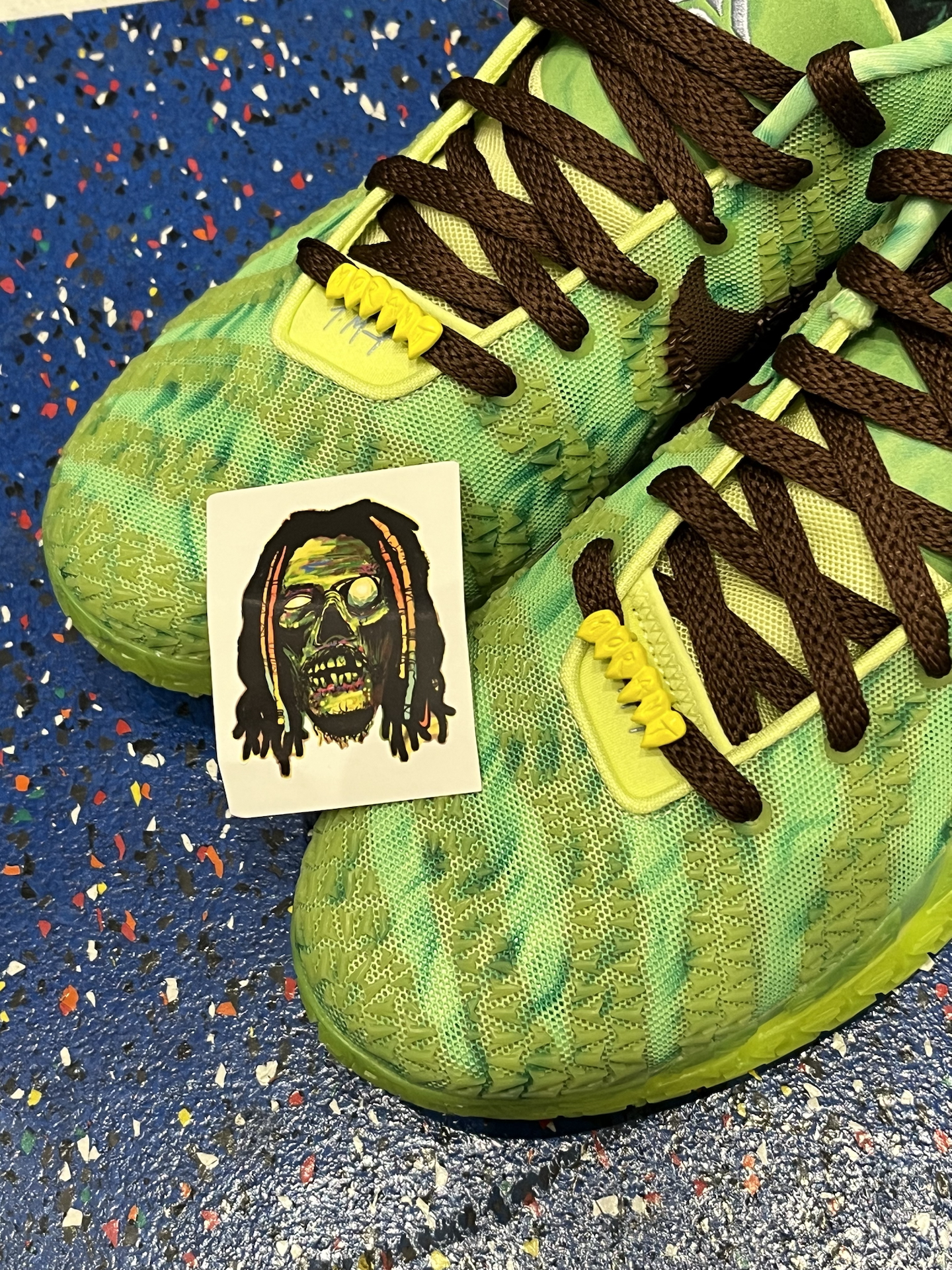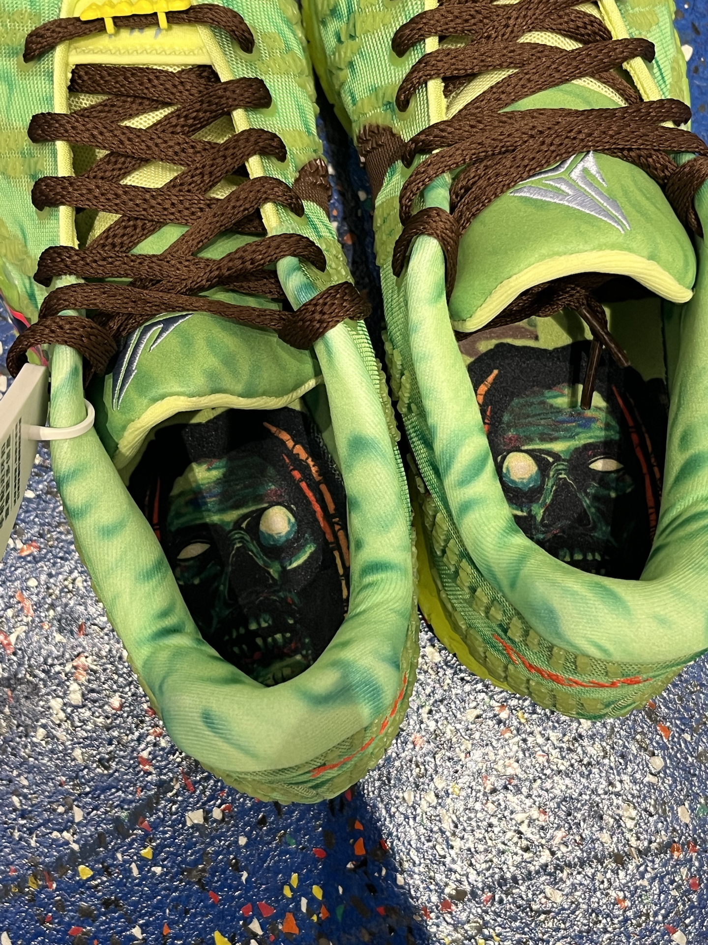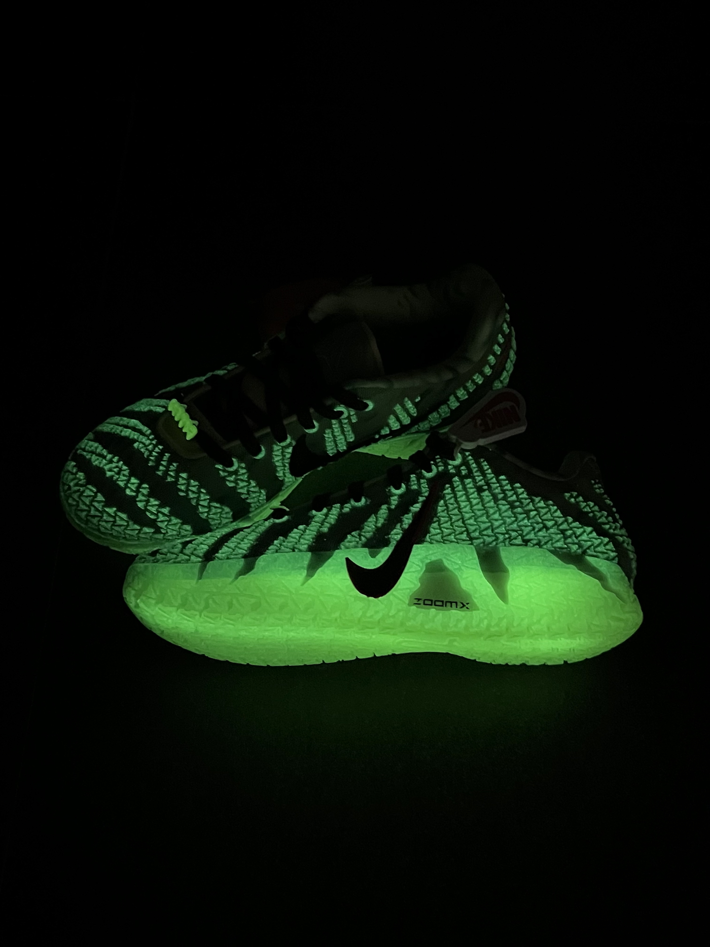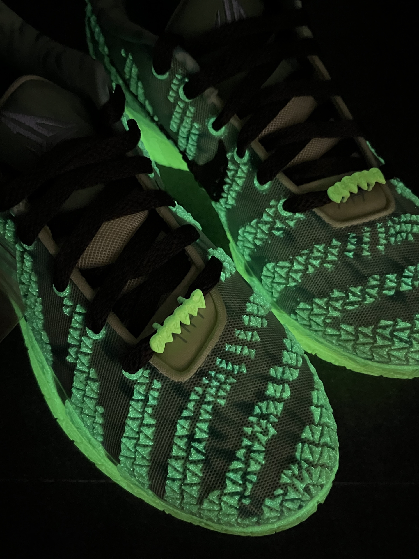 一开始我也觉得这双JA3万圣节配色,酷似Kobe 6青蜂侠,直到我关了灯,夜光效果实测很帅 鞋底、鞋面吸光后,会透出绿色幽光,还是很亮的 獠牙鞋带扣也泛着绿光,细节拉满,怪诞氛围直接到位 鞋垫上的“丧 尸莫兰特”图案,胆小的朋友翻开时要有心理准备,确实有点唬人 这双球鞋白天是“球场青蜂侠”,夜晚直接化身“万圣节气氛组”,这双ja3兄弟们觉得如何⁉️ #新鞋零时差 #穿这双去打球 #学生党打...