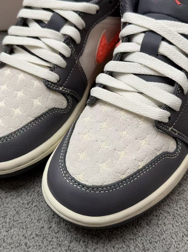 这双AJ是把“海盐西柚”榨成鞋了吧 宝子们!看到这双AJ的瞬间,我直接发出土拨鼠尖叫!低饱和藏蓝+浅灰的配色,像把海边落日的温柔装进鞋里,再点缀-抹西柚粉钩钩,清新感直接溢出来了扑~ 鞋头的星 星刺绣巨精致,像把银河踩在脚下;麂皮+皮革拼接的质感,摸起来软乎乎的,高级感直接拉满!鞋舌的飞人标是亮粉色,细节里藏着小心机,. 上脚瞬间点亮整个穿搭~ 搭配浅色系牛仔裤,日系少年感直接拿捏;配上奶油色...