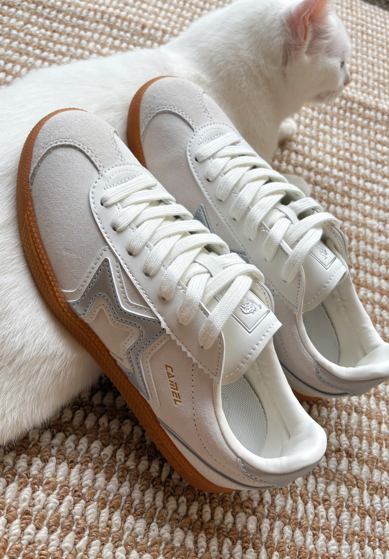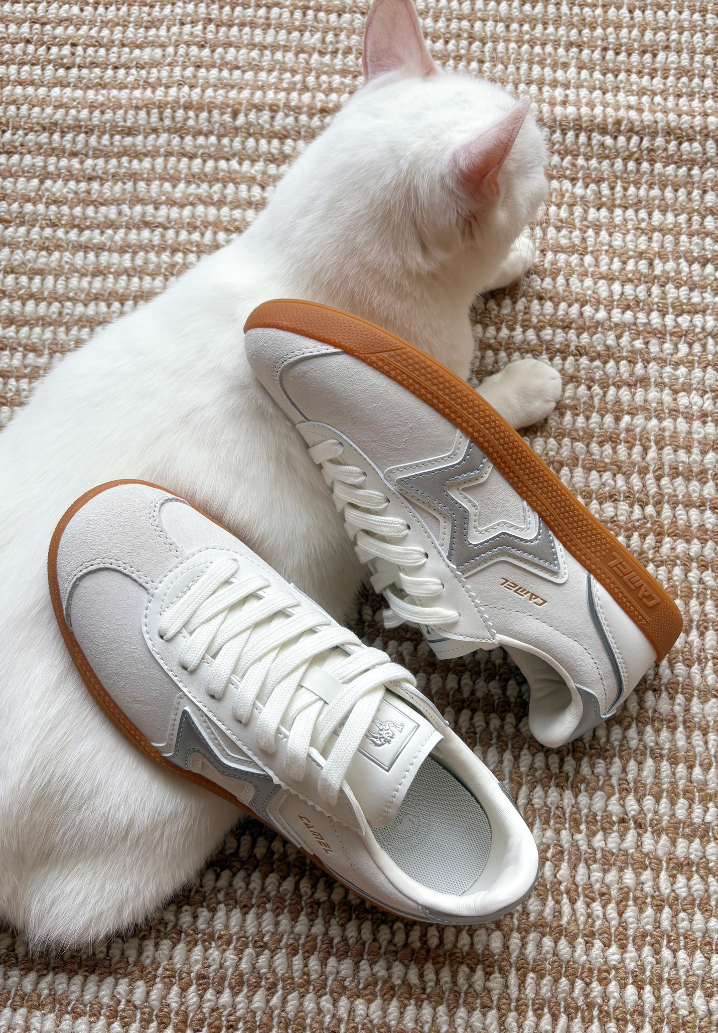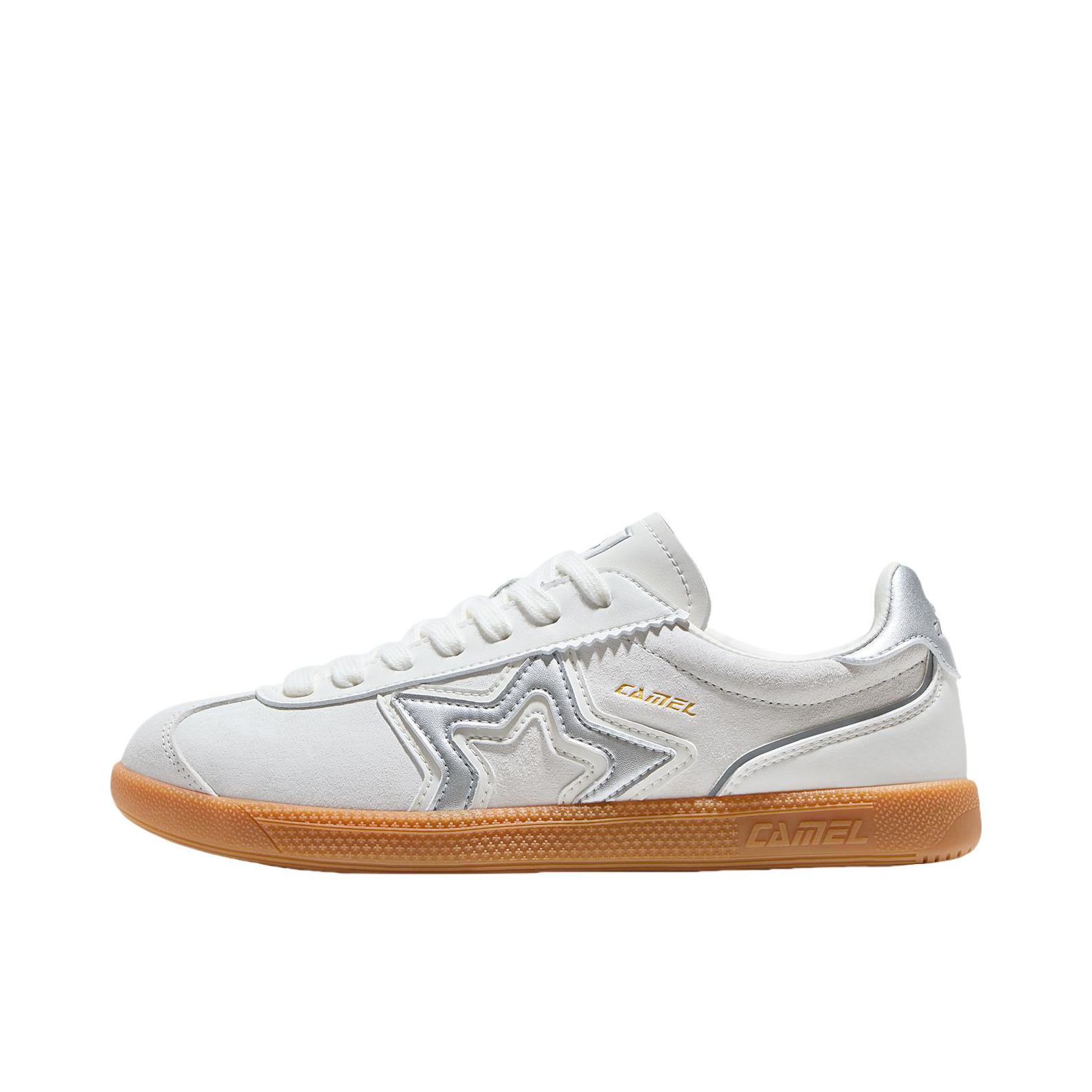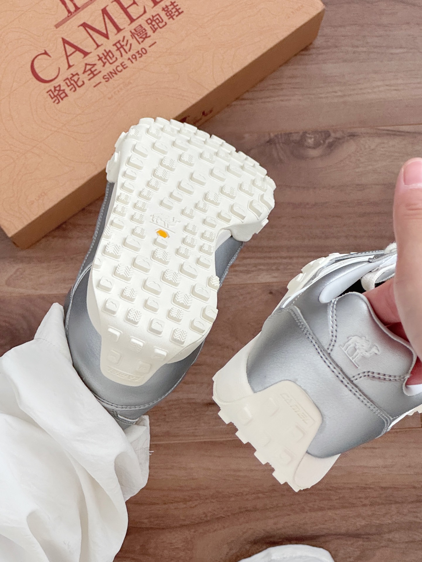 日常穿它很舒服,骆驼这款板鞋防滑又透气,走路久了也不闷脚。复古版型很显质感,白色经典耐脏,低帮设计配牛仔裤、小裙子都合适,鞋侧的海星小细节还挺别致,不会显得太普通!