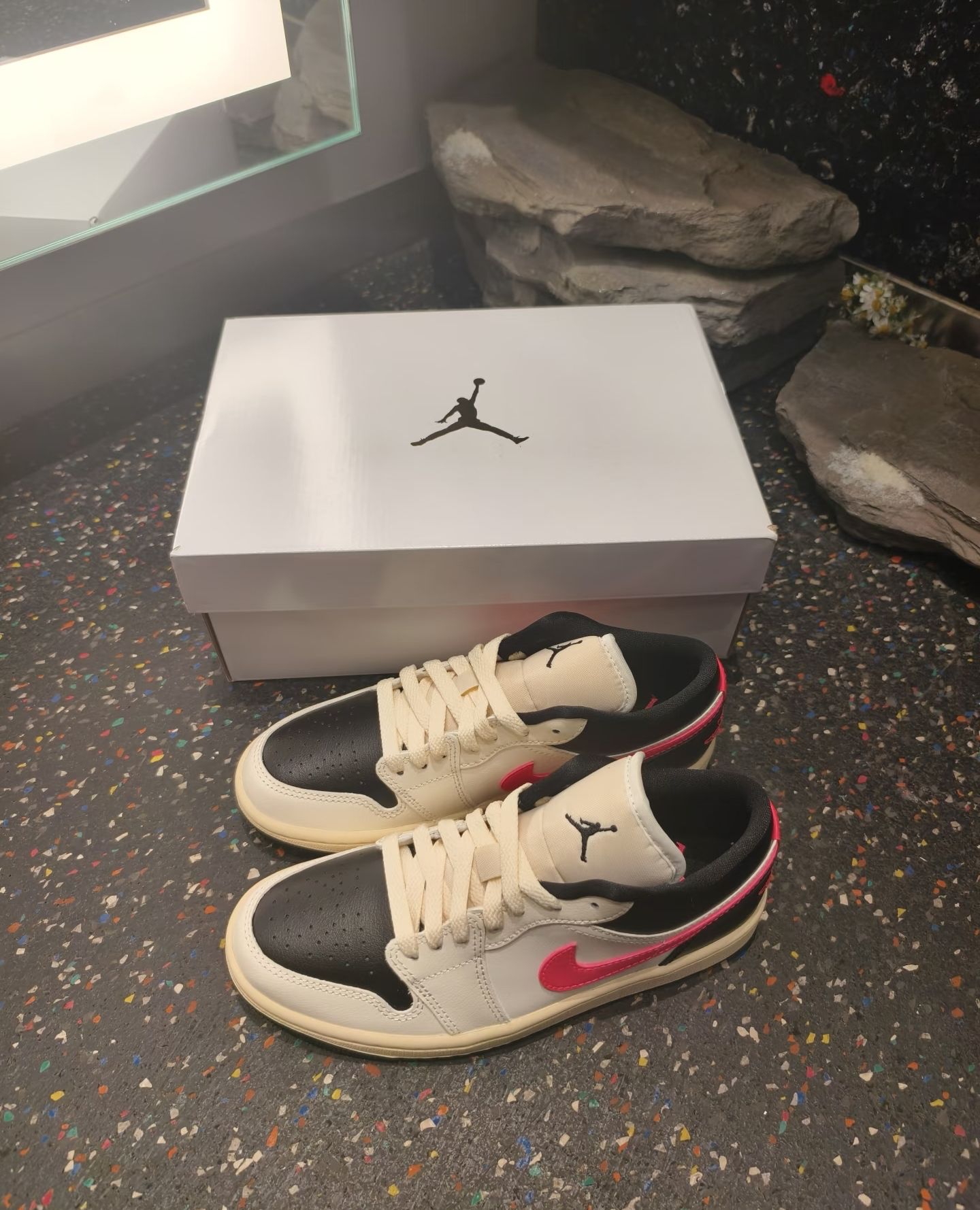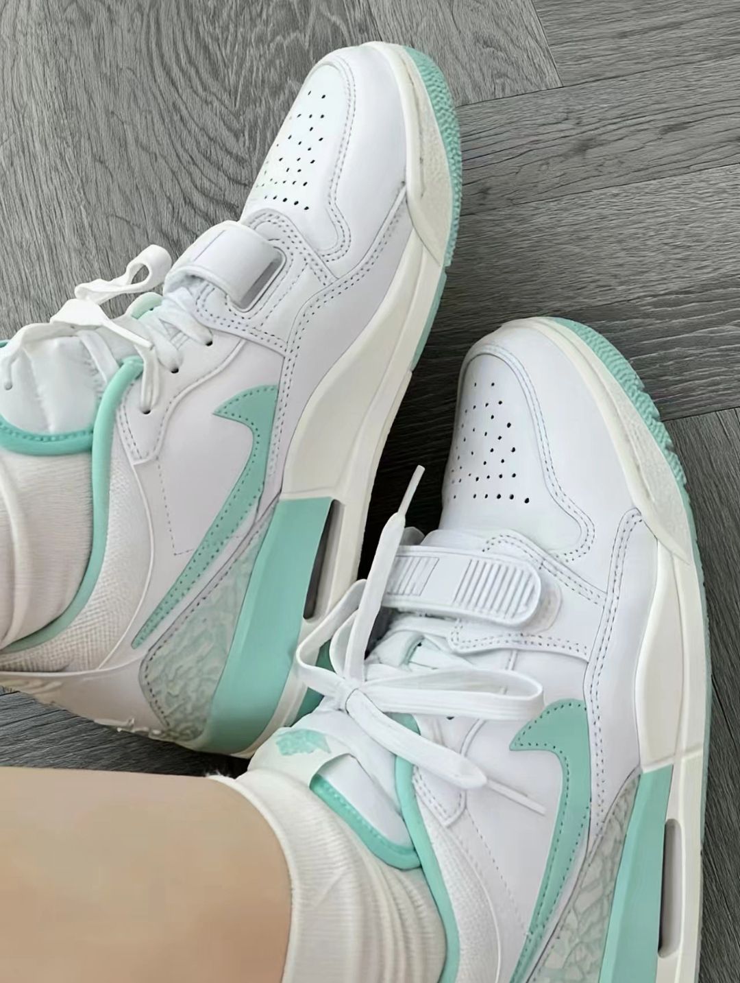 来一口薄荷白绿配色的鞋子尊嘟好清新“ 这个国庆我和朋友去逛文创街区当穿的这双白绿配色的AJ 这双鞋子软乎乎的,我不知不觉就走了大半天,脚也没有什么不适感轩 我们在奶茶店。坐下休息的时候,我顺便欣赏一下鞋子的美貌 怎么说嘞,这双鞋子还真有点好看,不愧是我挑的口