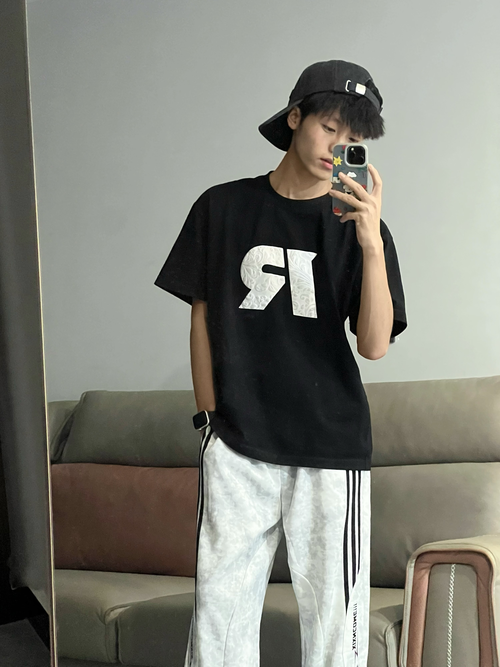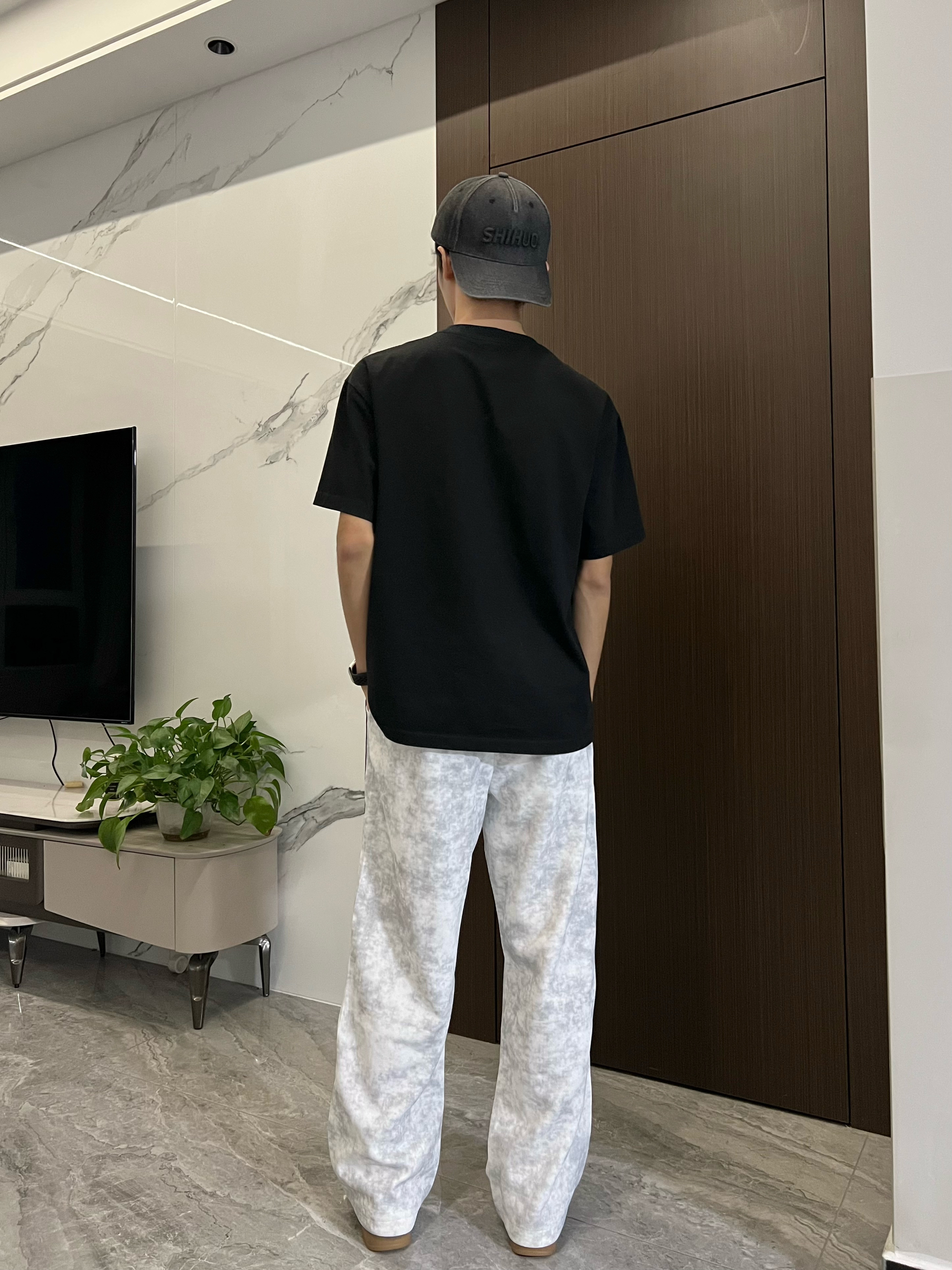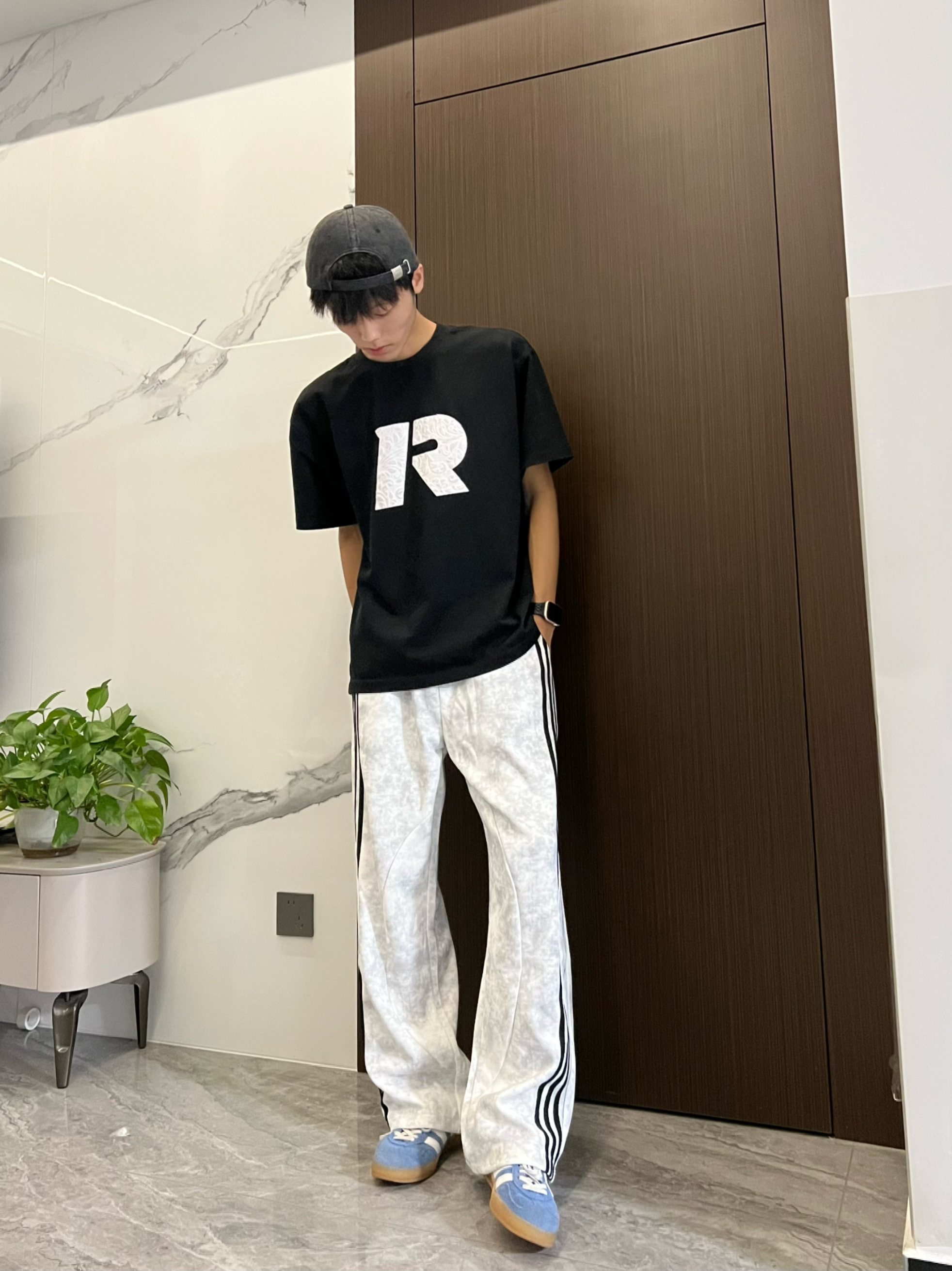 分享一下今日居家ootd~ 上衣是一件字母印花黑t日常内搭单穿都很不错 裤子是一条扎染休闲裤 扎染设计还蛮酷的😎 侧边条纹设计拉长腿部线条很显腿长 鞋子简单穿个德训鞋就很休闲~ 男生穿这种简单干净的穿搭帅炸了💥