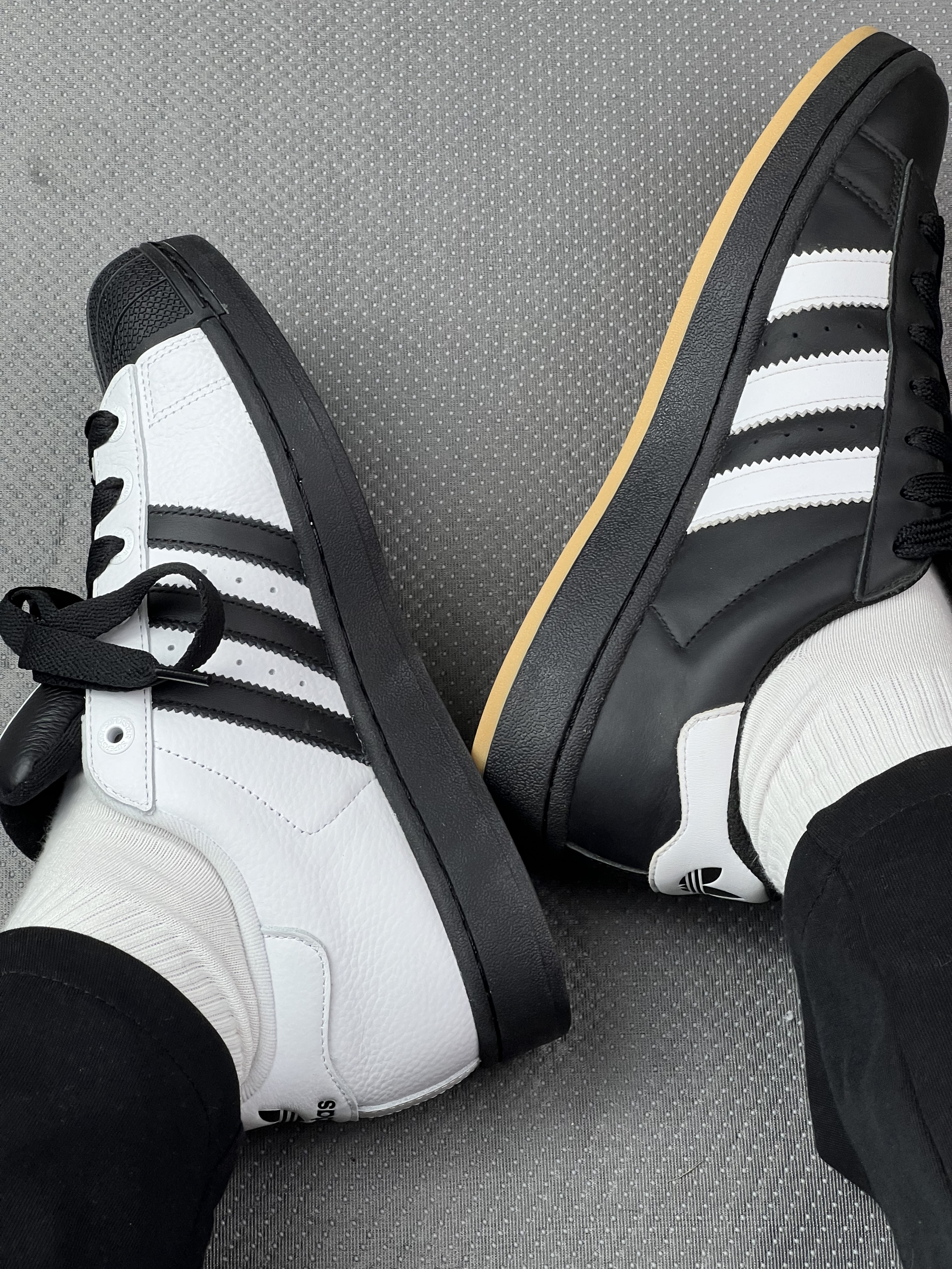 这两双是我入的贝壳头不同配色,穿了快三周,说点实际的: 先说白黑款:鞋面是软皮质,刚穿就不磨脚,但鞋头的网纹面料特爱沾灰,早上出门干净的,下班鞋头就灰蒙蒙,擦起来得费点劲😔。 再看全黑款:皮质偏硬挺,头两次穿脚踝内侧有点硌,得搭厚袜子缓冲下。不过耐脏是真的,奶茶撒上面,拿纸巾蹭两下基本看不出来。😛😛 两款鞋底软度都一般,周末逛两小时市集,脚底板会有点发酸。鞋带是粗绳的,系紧了不容易松,但解的...