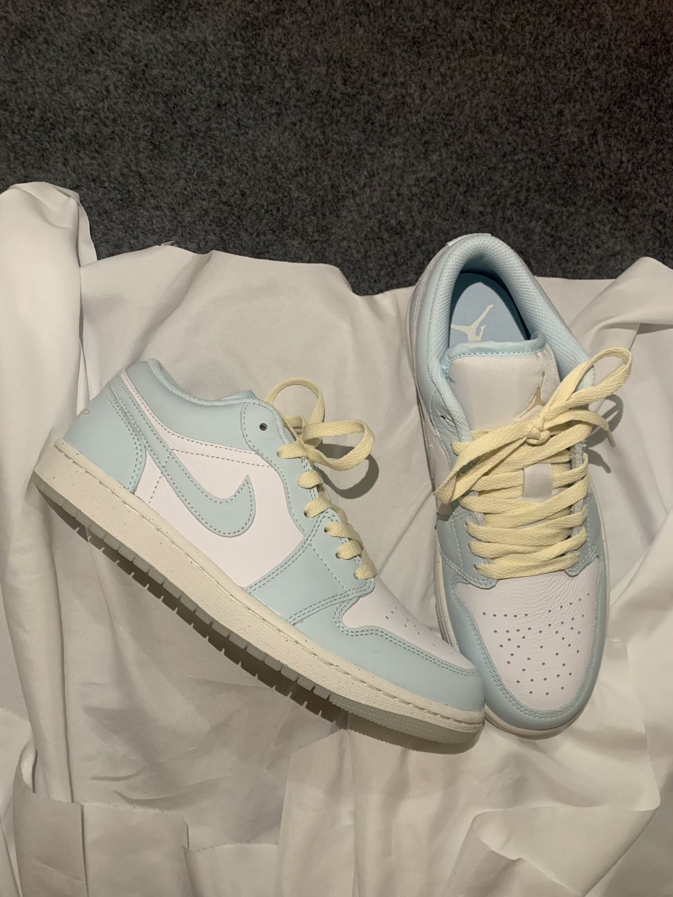 Aj1 冰川蓝让你在这个夏天显得格外清爽,奶白色鞋带搭配冰🧊蓝白色鞋身,仿佛是把整片大海🌊穿在了脚上,鞋子牛皮革材质的质感十分细腻方便打理,鞋子上脚也是十分舒适,日常穿完全不会感觉到脚累,真的适合夏天🏝️