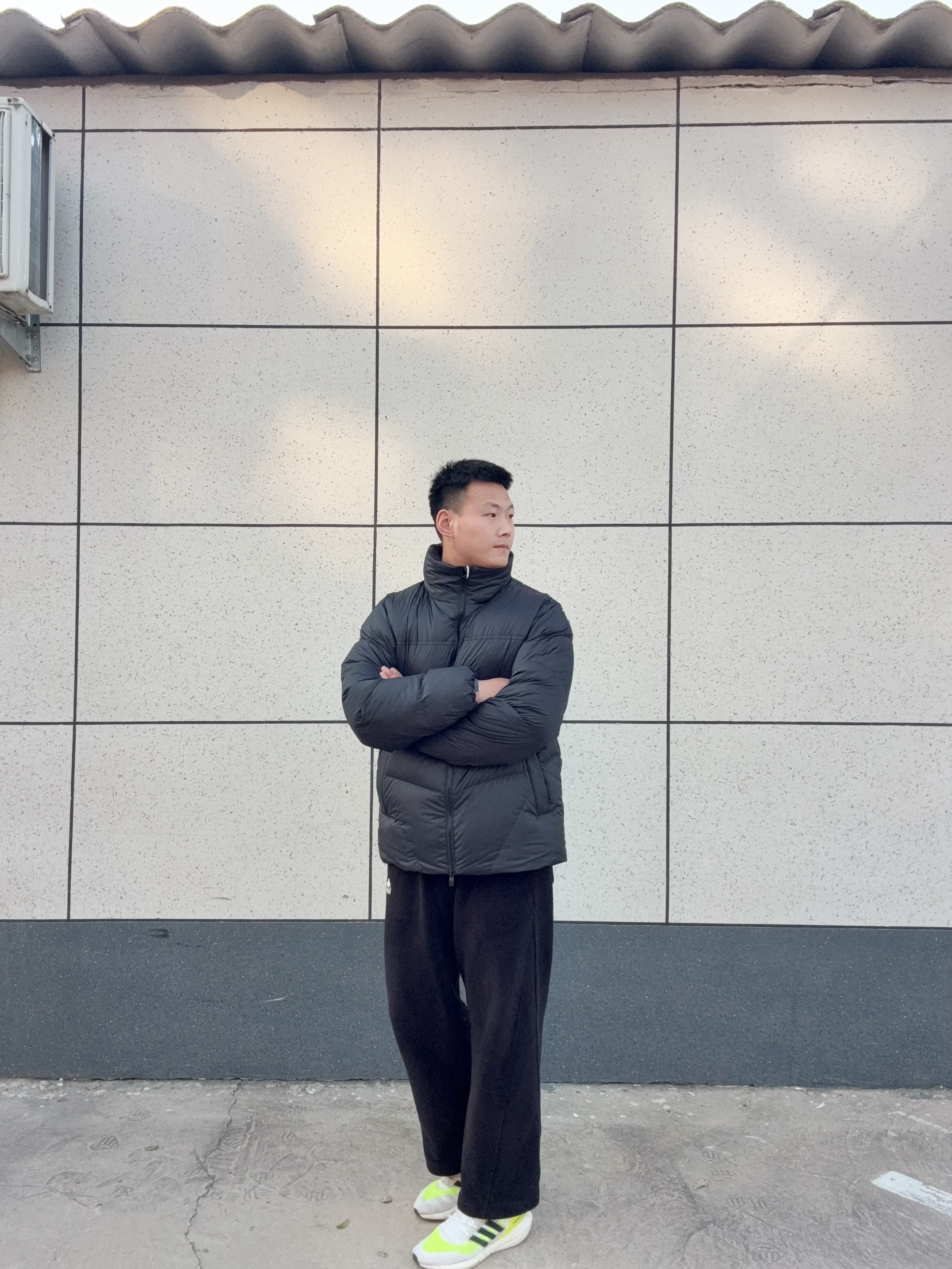 今天出门随手拍了组穿搭,主角是刚入的这件黑色羽绒服——真不是我夸张,穿上直接焊在身上不想脱。 填充够蓬但不压肩,套在厚卫衣外面也没臃肿感,立领拉起来挡风刚好,口袋够深揣手机钥匙不用愁。搭了条垂感阔腿裤,再踩双亮色系球鞋,黑+荧光绿的撞色刚好中和了冬天的沉闷 最惊喜的是重量,比我去年那件薄羽绒还轻,通勤挤地铁、周末出门晃荡都没负担。关键是保暖度够顶,今天降温到5度,穿它在外面待了俩小时居然没冻透。...