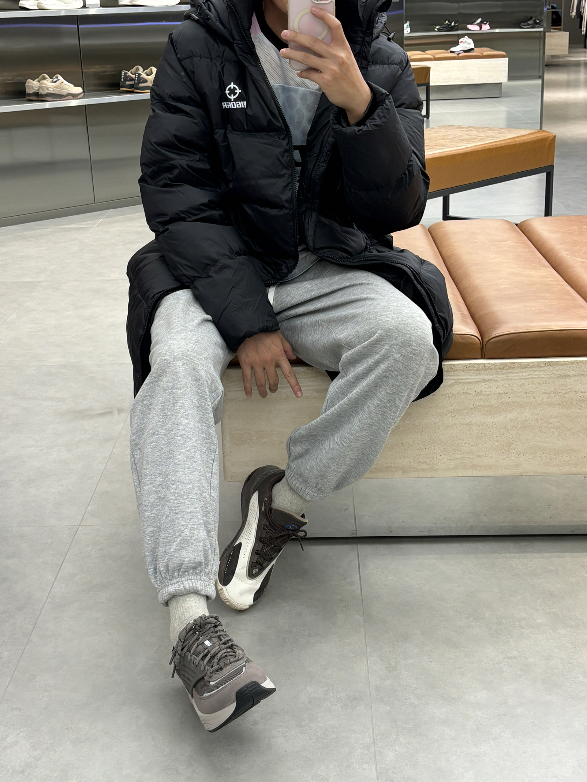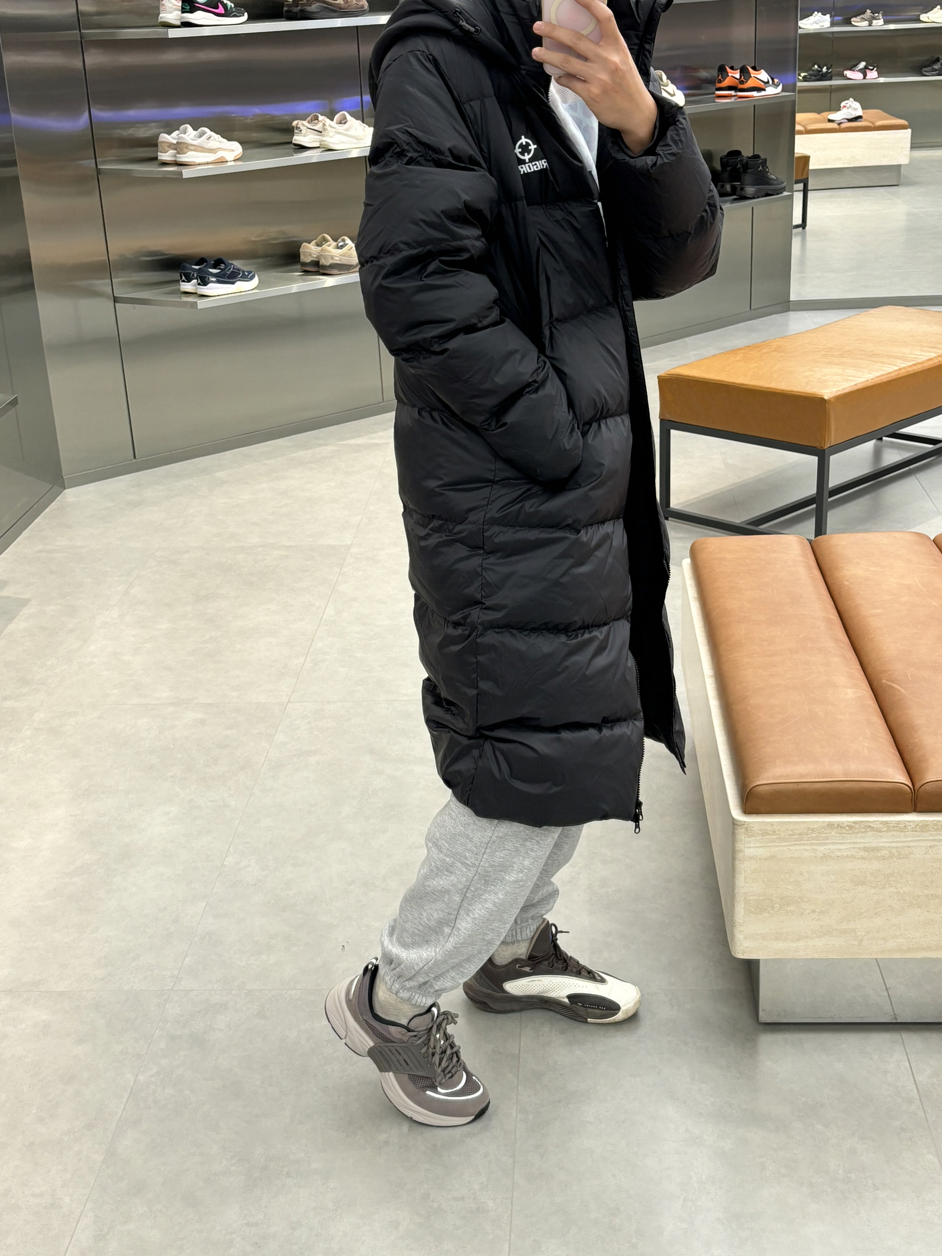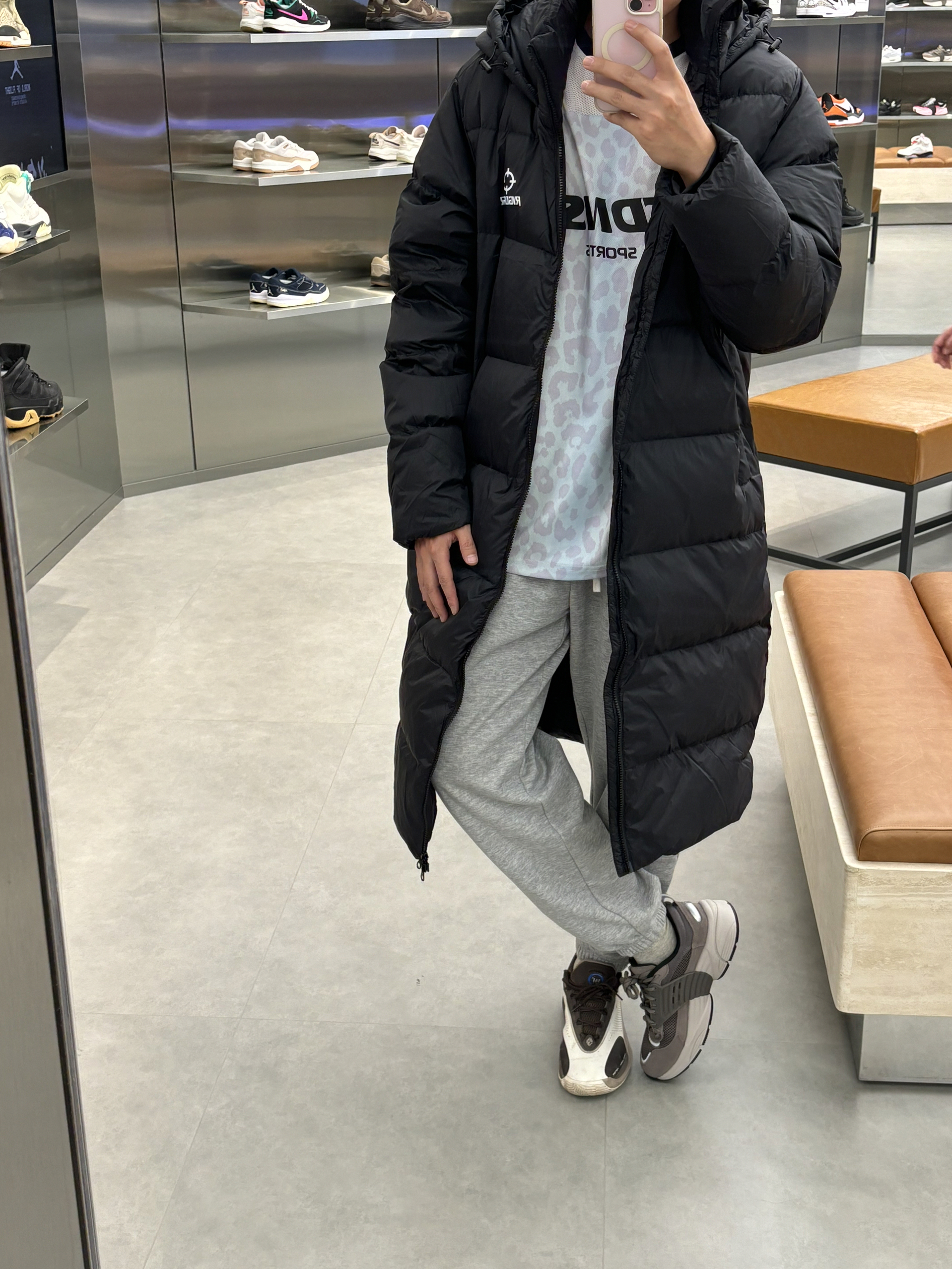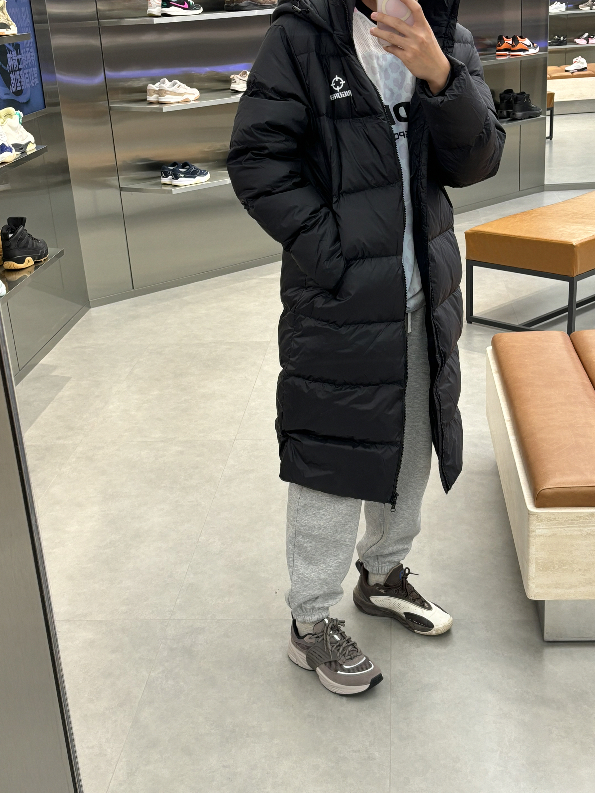 #降温穿搭指南 降温了最近直接套上长款羽绒服 这个最近可以当个男生的大衣来穿 直接不拉拉链当个风衣很酷 这个属于轻薄型的长款羽绒服 这个秋冬我就先过个暖冬了 👔准者长款羽绒服 👖uzis加绒束脚裤 👟jordan trunner漫步鞋
