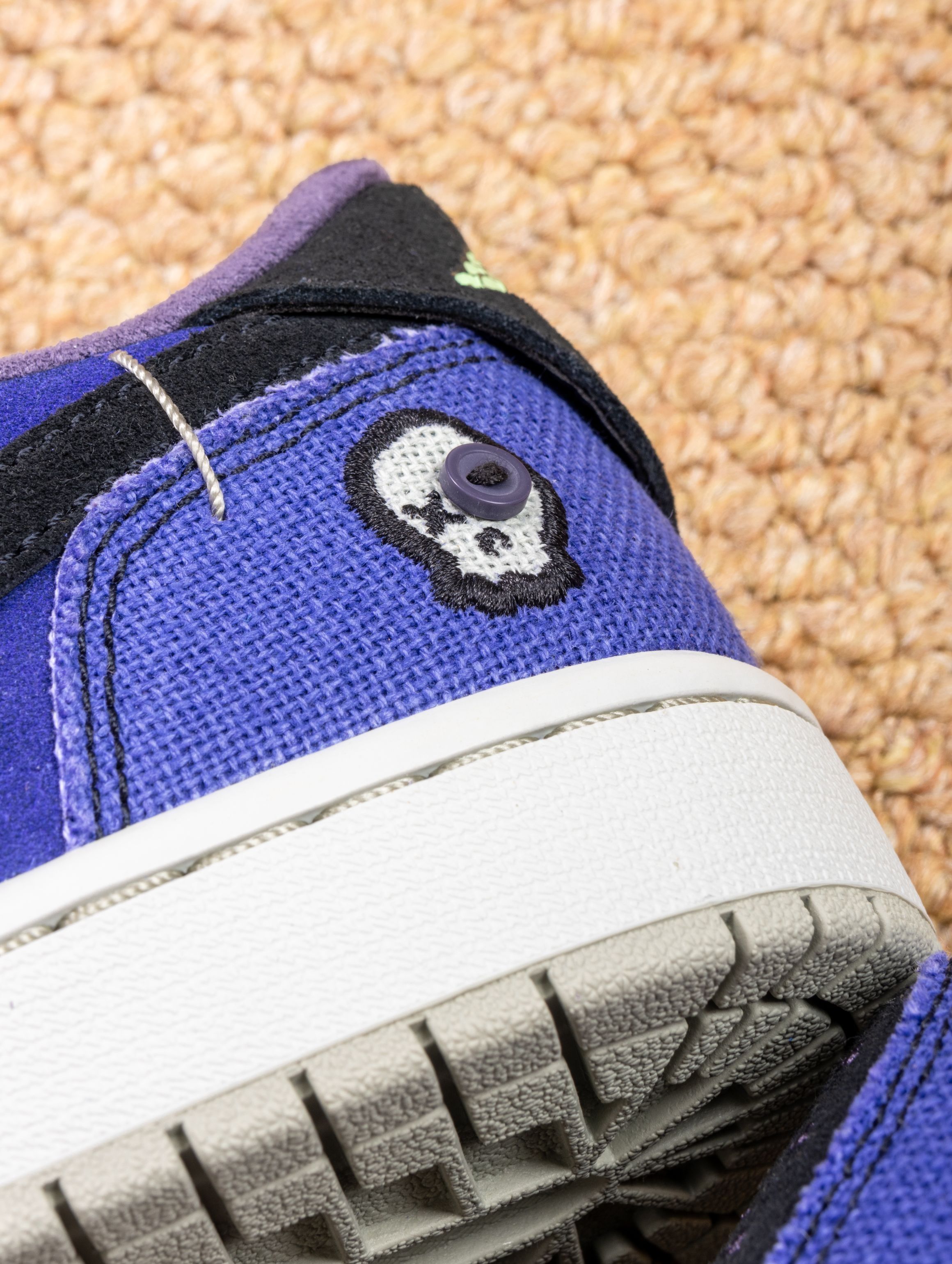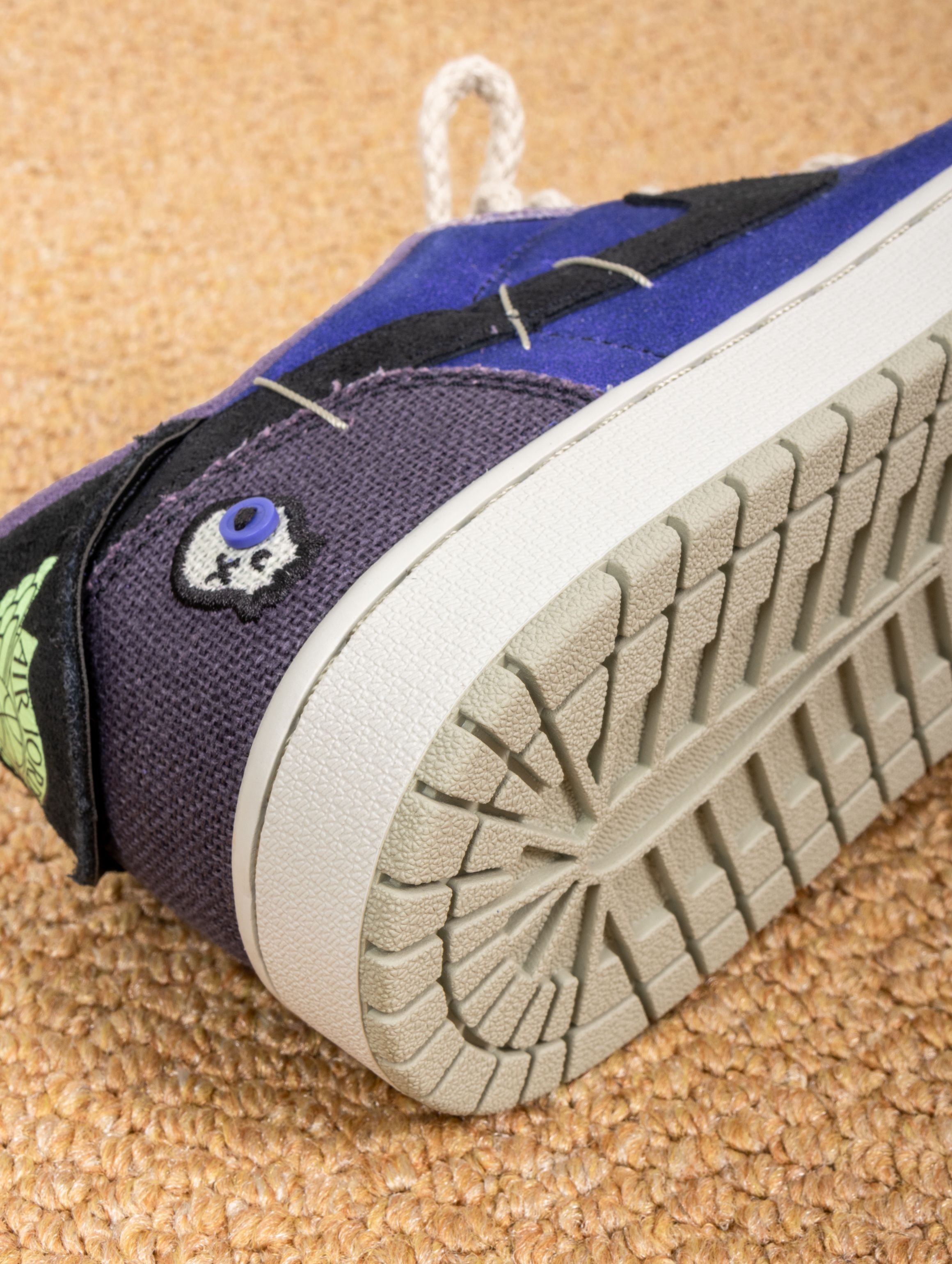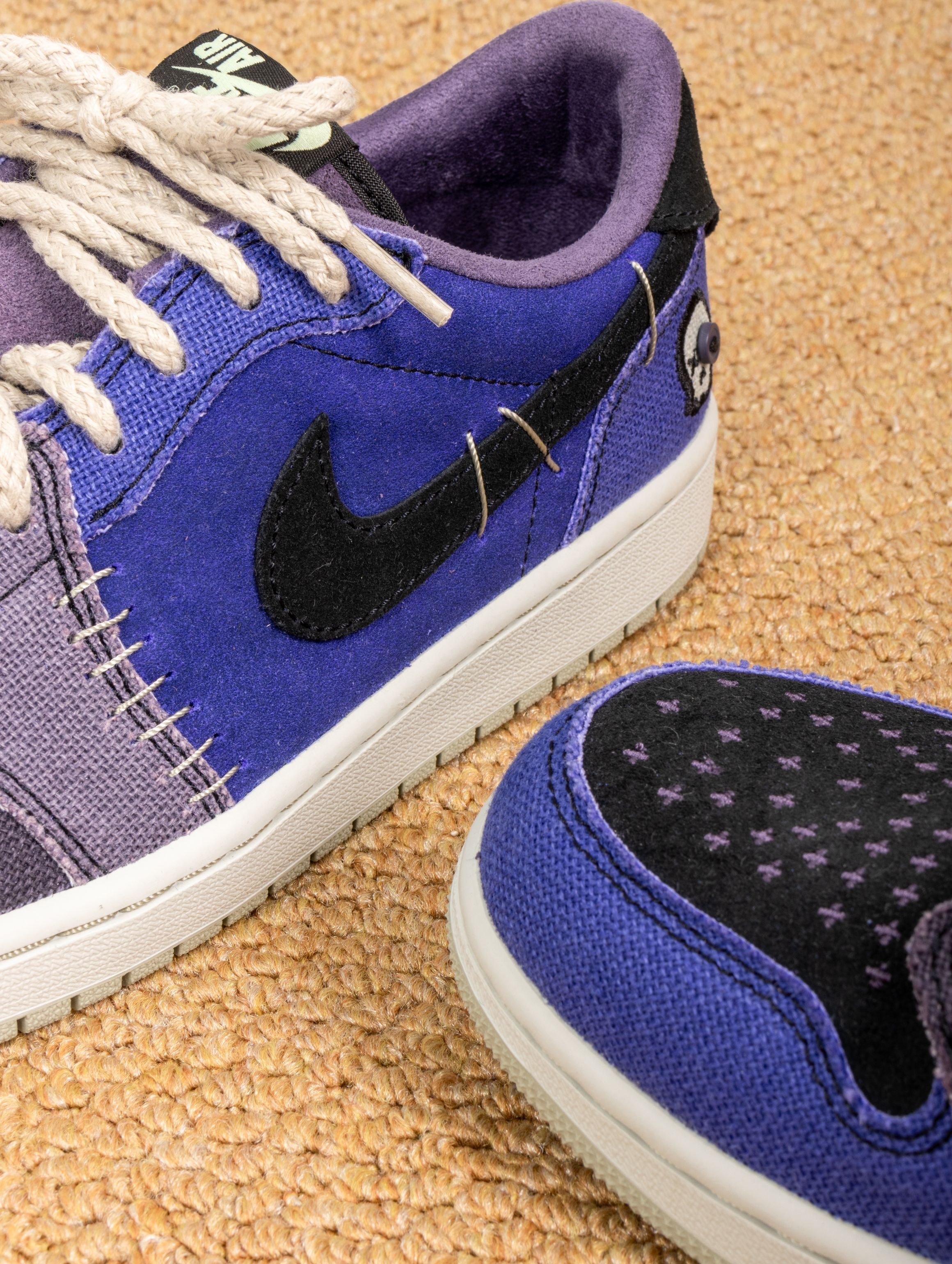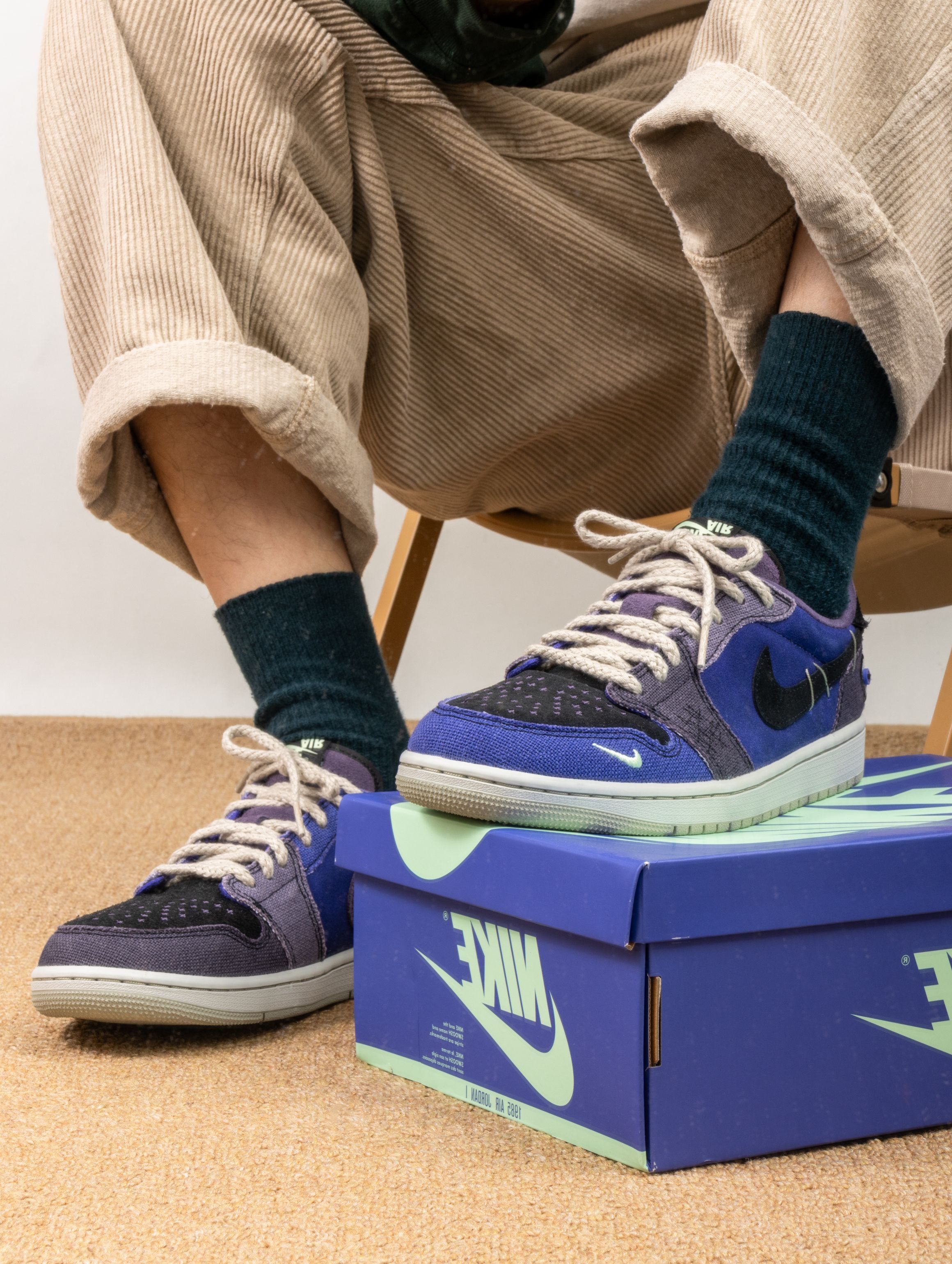 这双鞋的实物真的太适合万圣节了!深邃的紫蓝色麂皮就像暗夜里的魔法,质感高级又应景。上脚第一感觉是包裹性很好,皮质比普通AJ1更柔软,穿着蹦跶整晚都不磨脚。 配黑色卫衣是神秘暗黑风,搭破洞牛仔裤又变身街头魔法师。昨晚穿着去派对,在灯光下鞋面会泛出不同层次的紫色,直接被三个朋友问链接。从万圣节到日常出街都能驾驭,这波入手真的不亏