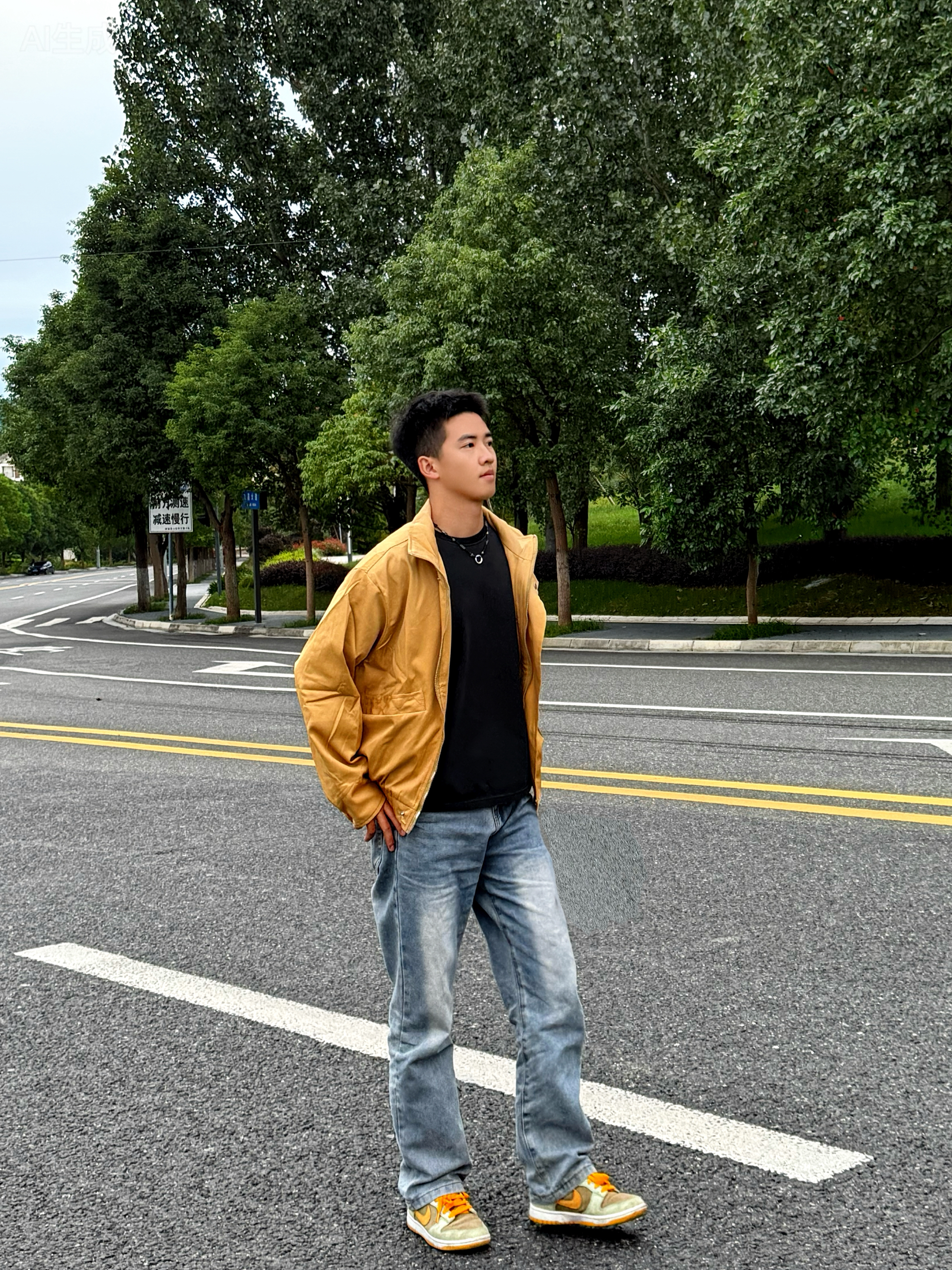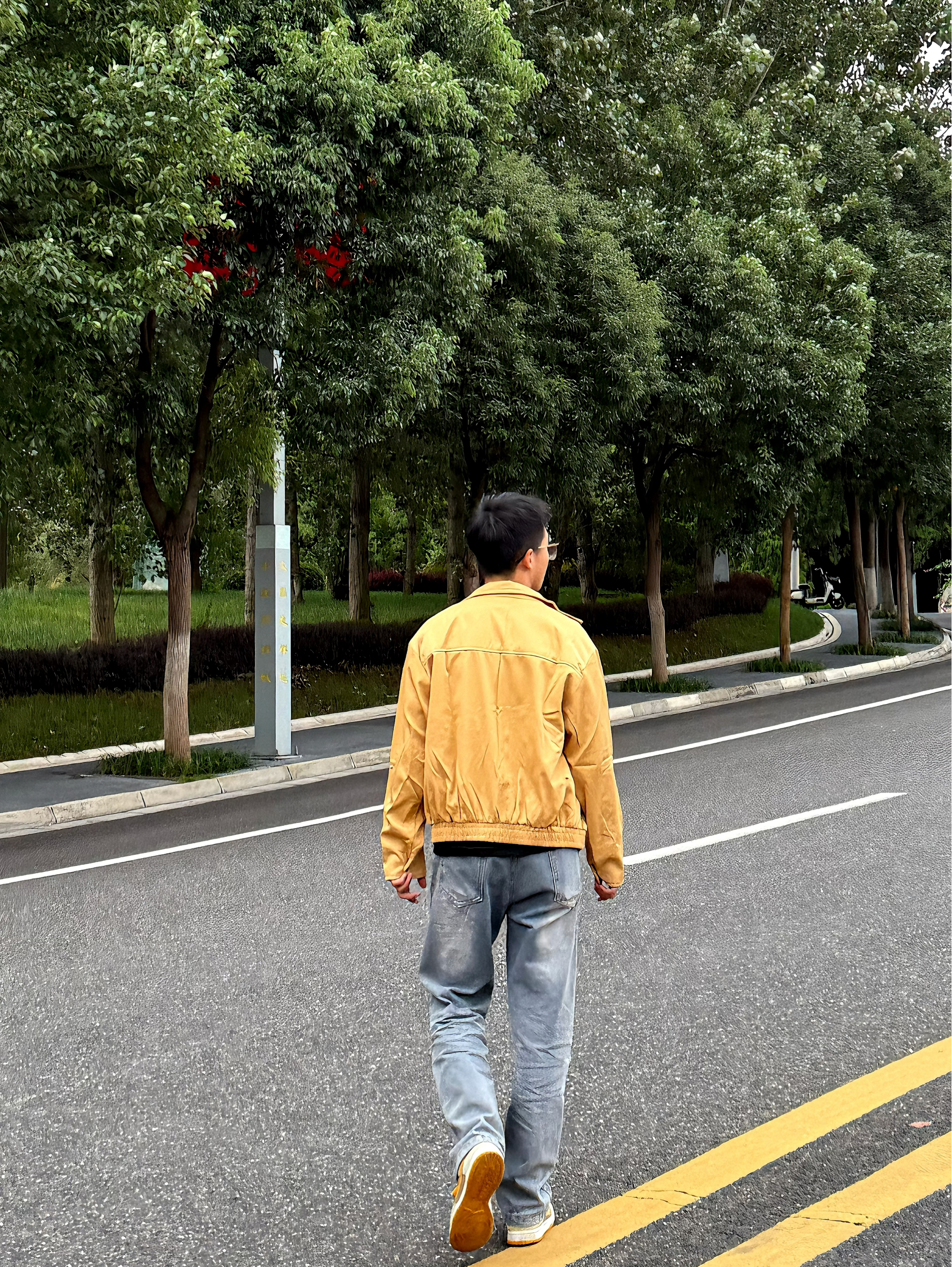 这件衣服版型很好,穿上显身材比例 黄色的外套和牛仔裤百搭,穿上就是潮男😎 穿上这套走在街上被夸爆啦,自信感直接拉满~ 入秋了刚好可以入手这一件外套,面料是那种纯棉的不容易起球 ,而且是宽松版型多种身材都适合穿 我身高174 体重124穿的是L码 给大家参考一下哦🤨