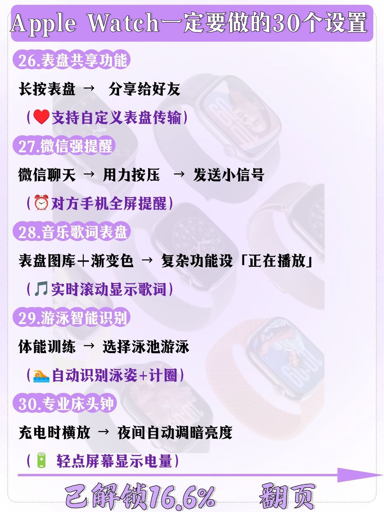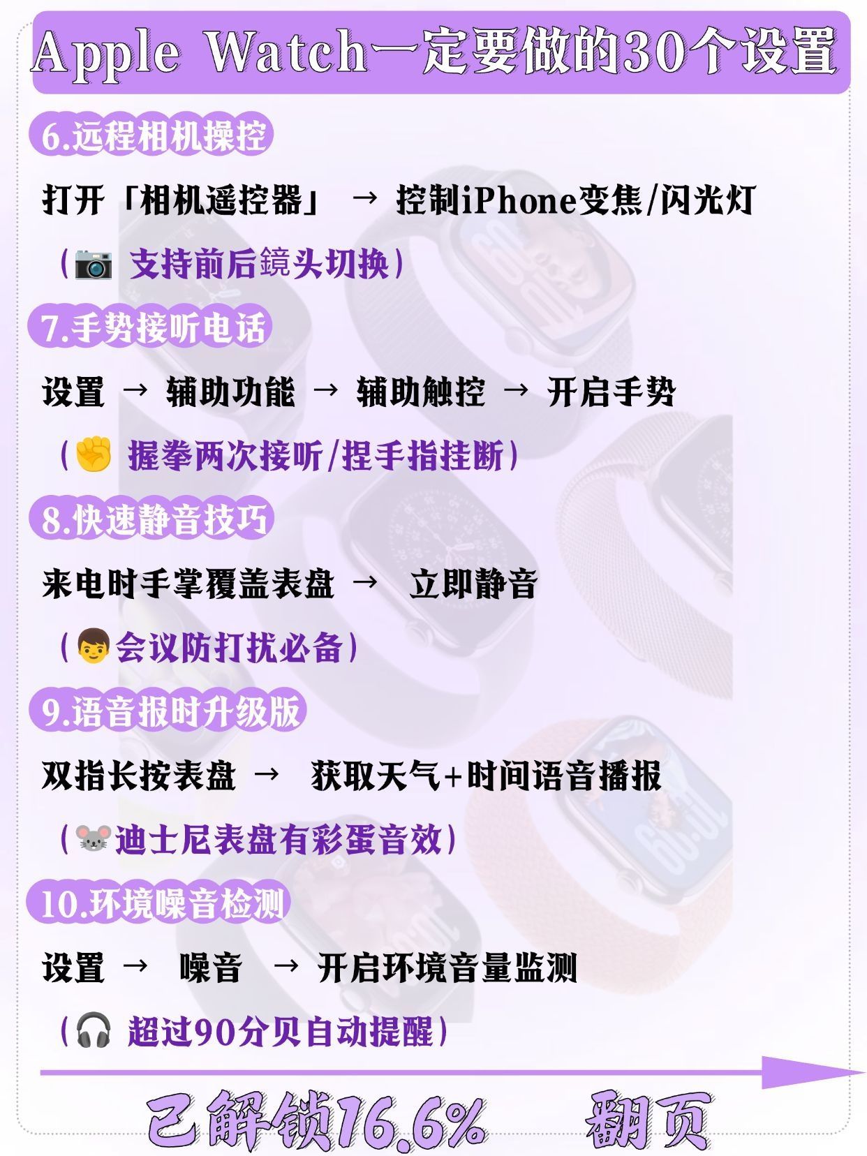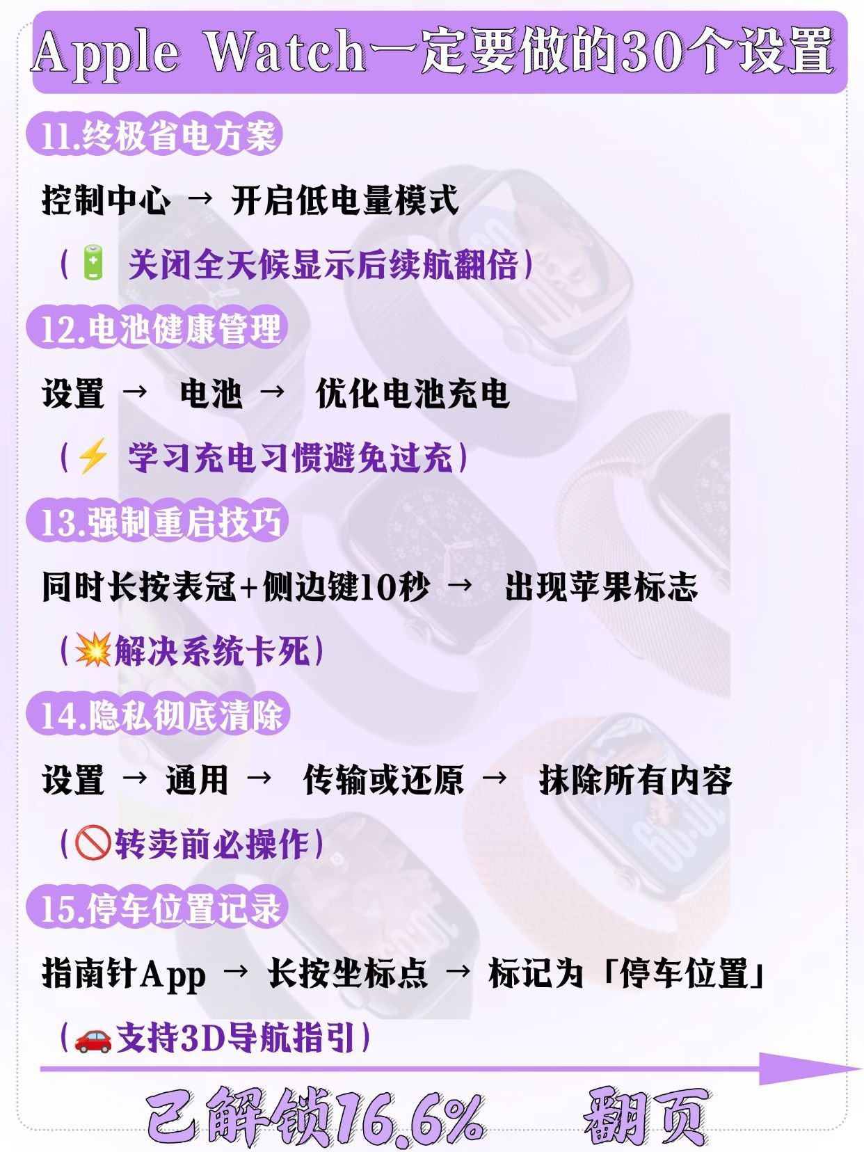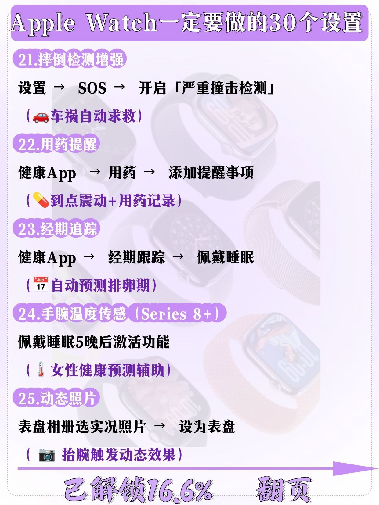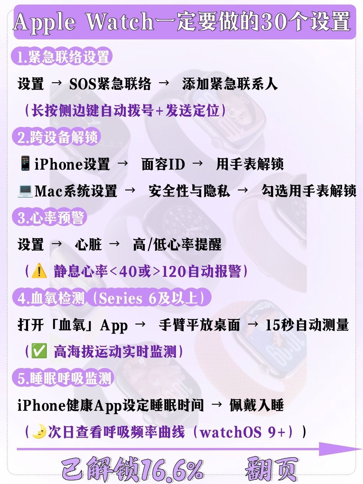 刚拆封Apple Watch的宝子举个爪!🙋♀️ 别只顾着欣赏颜值啦!这几个关键设置一定要先搞定,才能让手表从“美丽废物”变“实用神器”,每一个都是亲测好用的干货,快码住慢慢调~ ✅ 续航续命设置:关闭“始终显示”,开启“降低亮度”,后台刷新只留常用APP,一天一充稳了! ✅ 实用功能激活:摔倒检测、紧急SOS必须开(安全感拉满),抬手亮屏灵敏度调至中等,不摸鱼也能快速看消息 ✅ 个性化适配:...