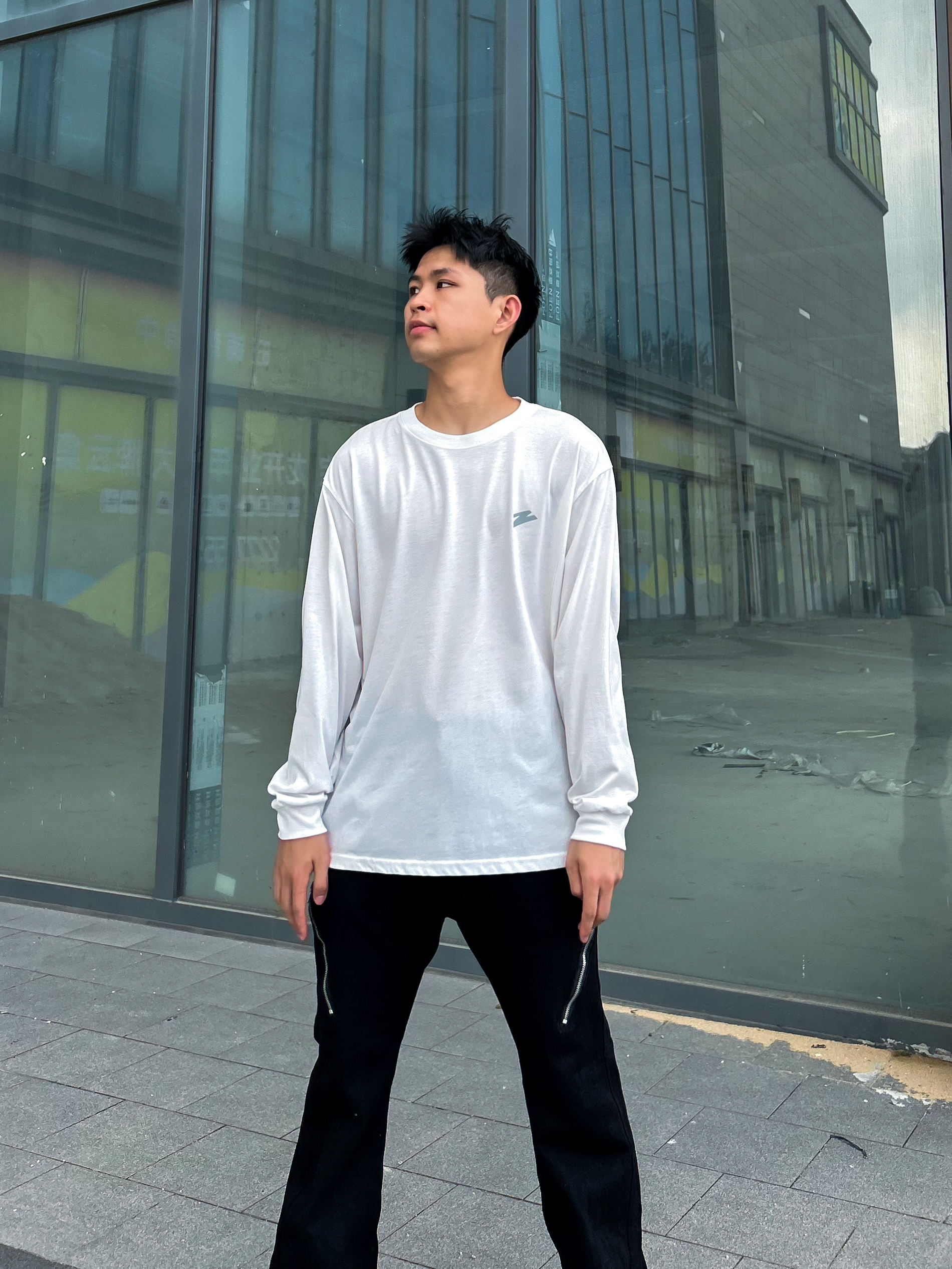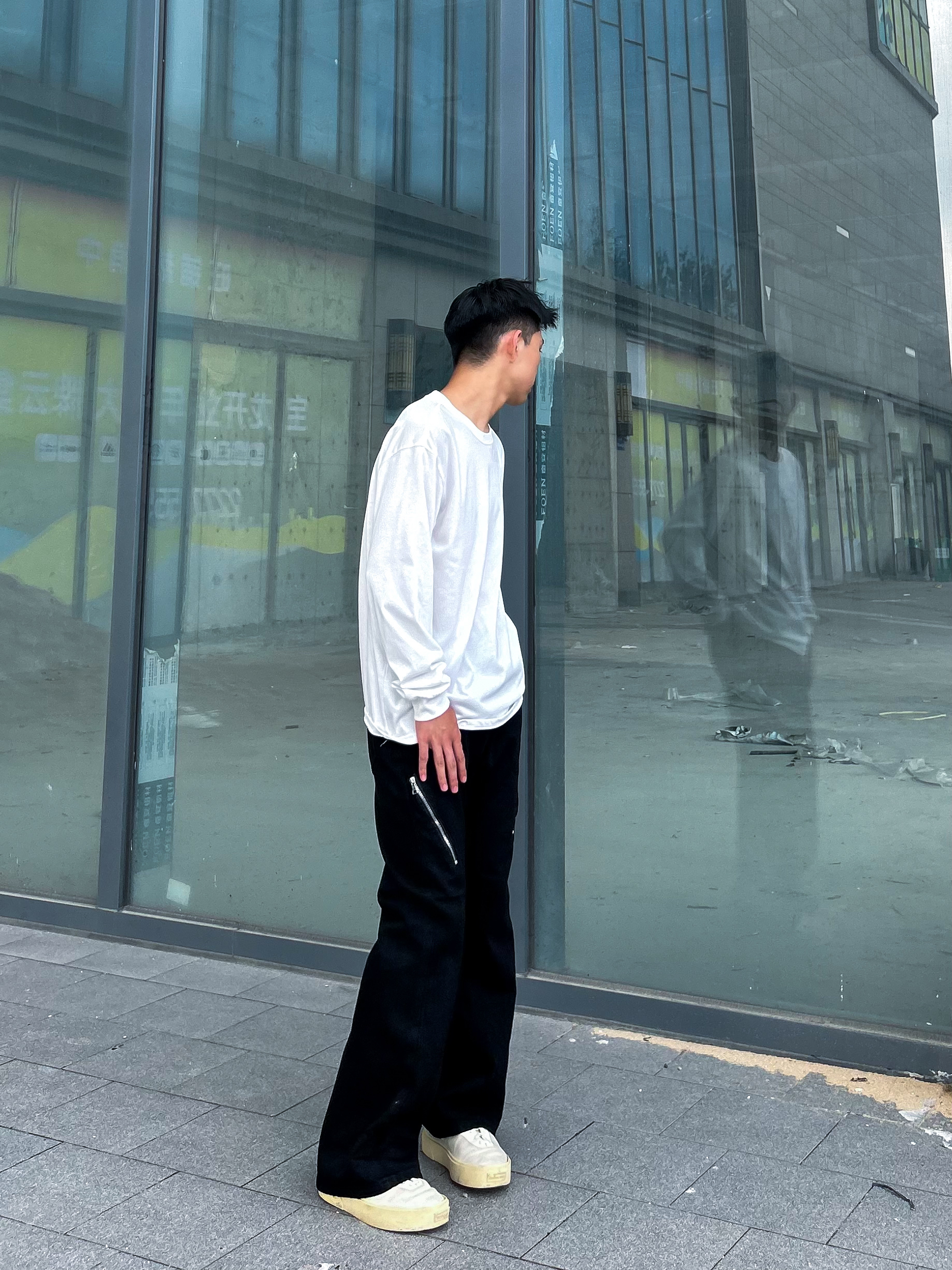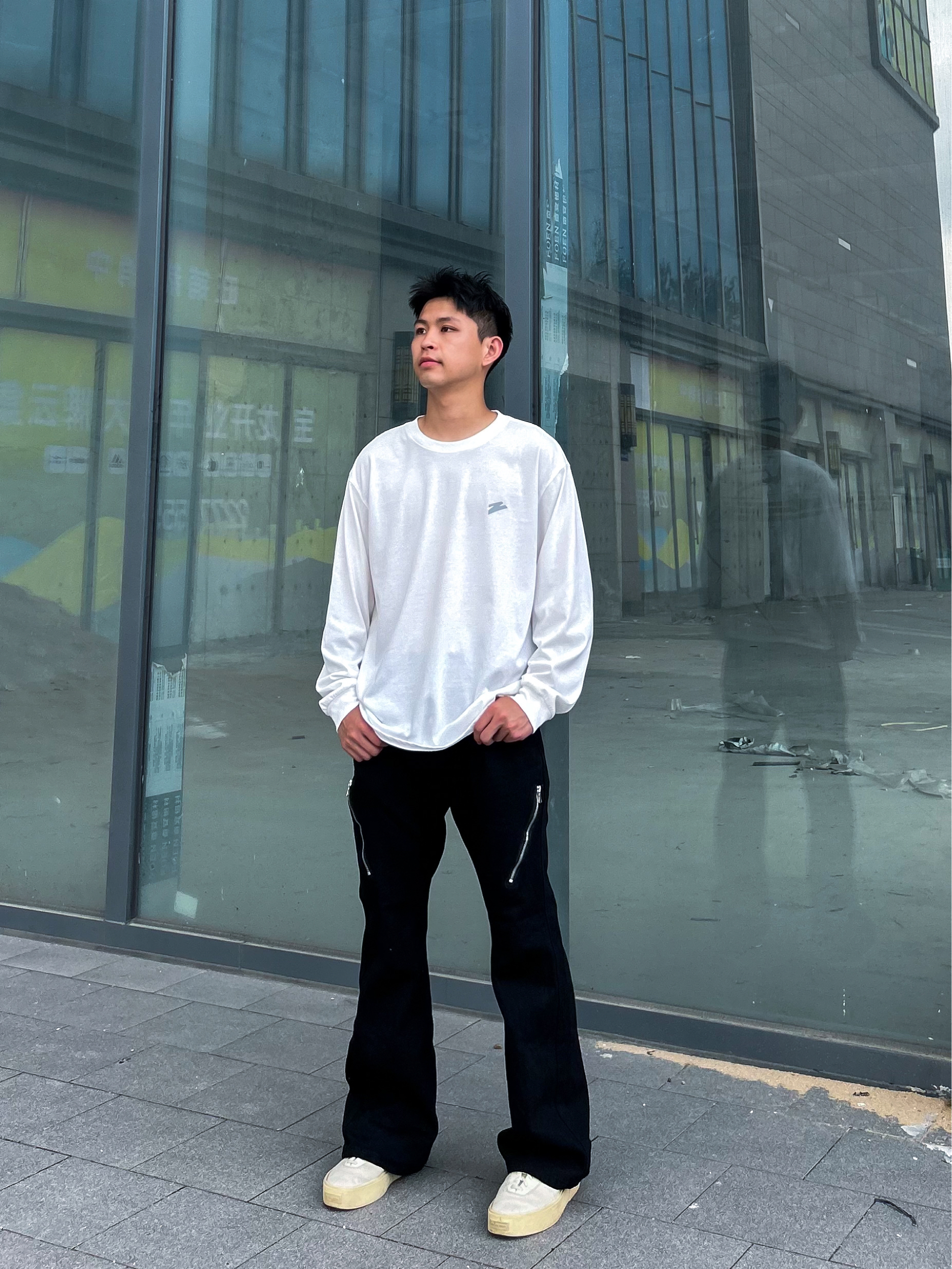 哈咯,这里是爱打球爱穿搭的卢_SG 今日街头感十足 上身选择一件纯白色长袖,简约且高级 白色还是很百搭很好看的,就是不耐脏😂 下身搭配街头感十足的牛仔裤 两个拉链设计就很街头啦 秋季一身简单穿搭出门,很哇塞啦!