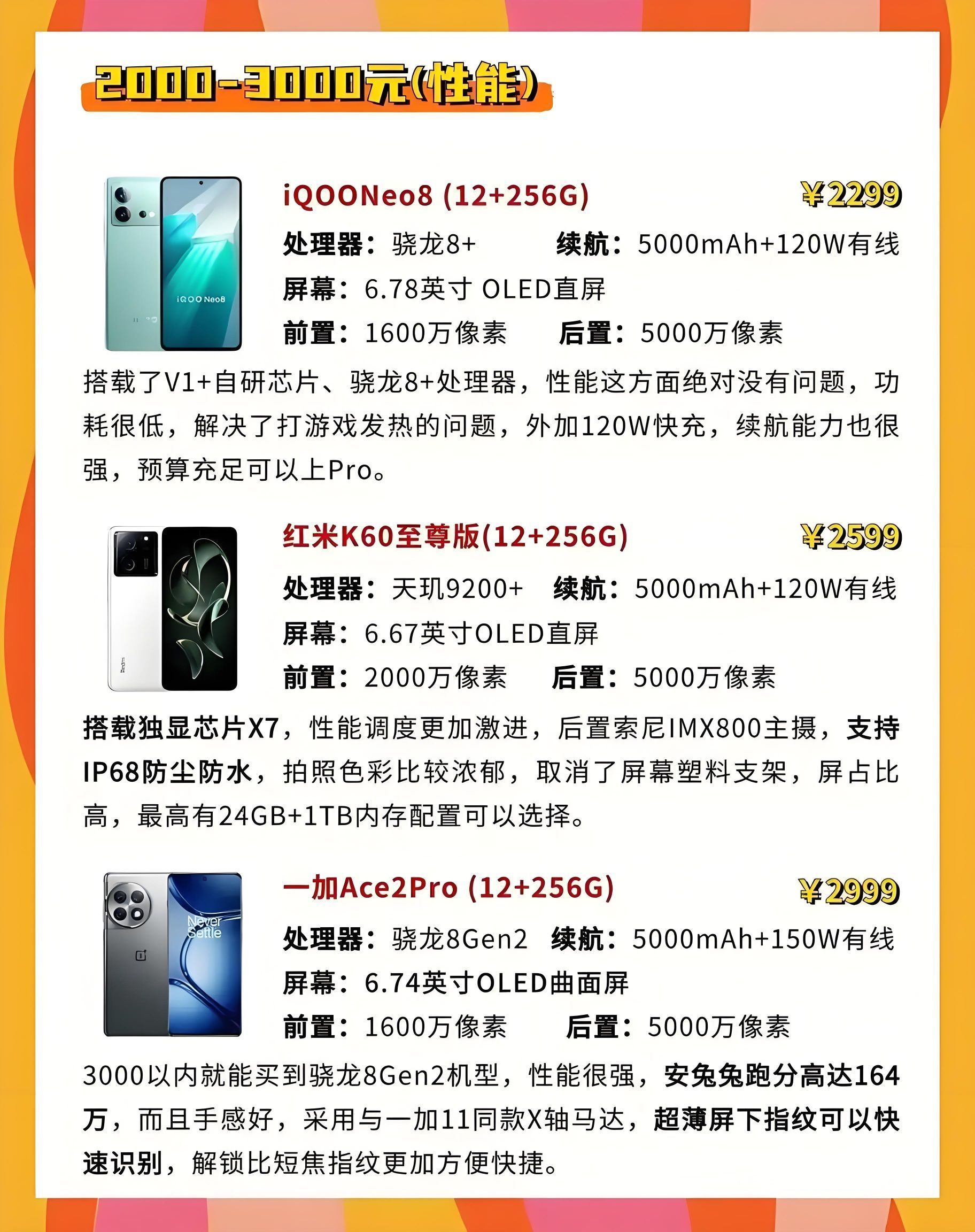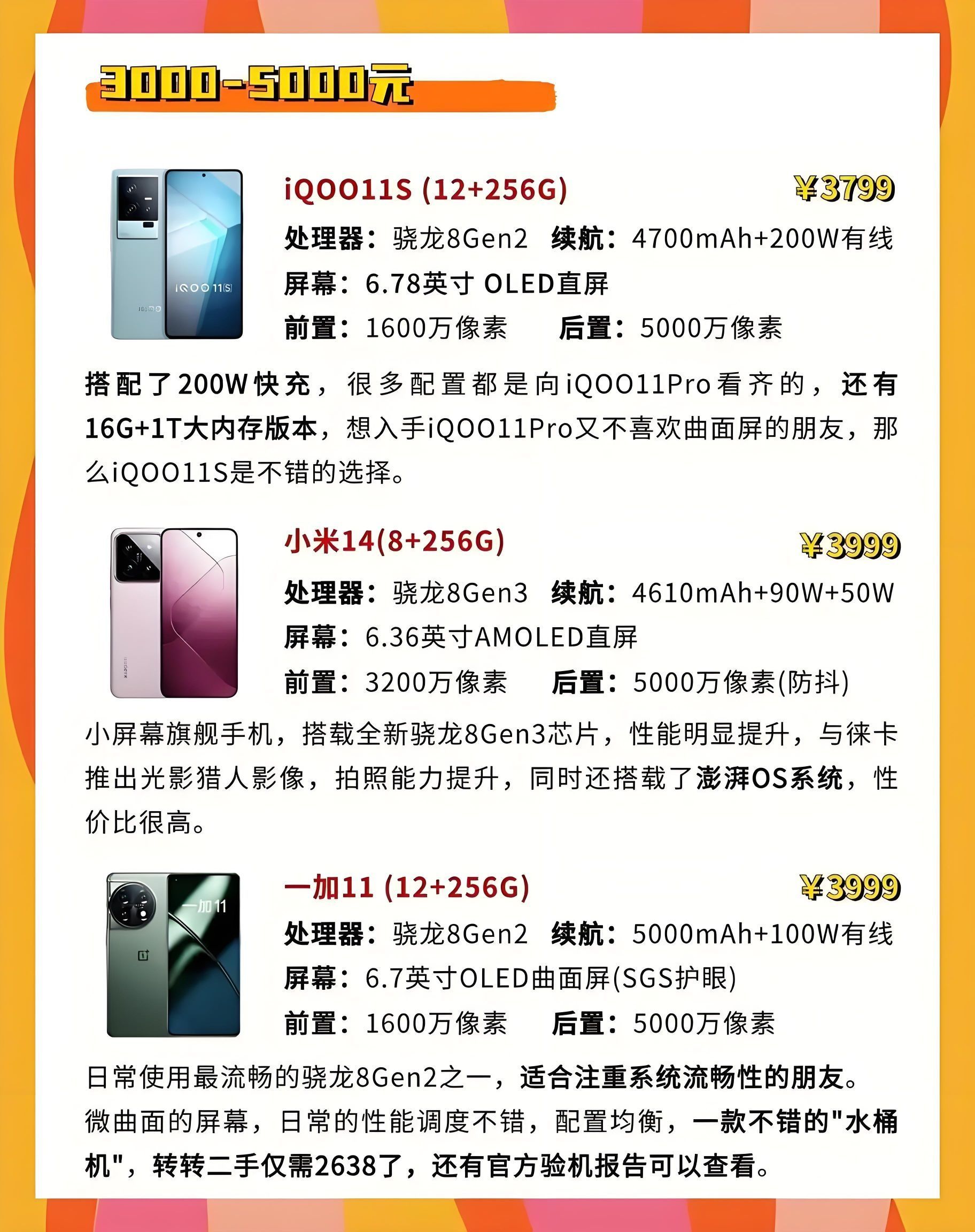 双十一购物节又来了,这可是每年一次的大促,千万别错过!错过这次,可能就要等到双12甚至明年了。今天我就来给大家推荐几款不同价位的手机,帮你挑到心仪的那一款。 🎉2000-3000元价位 性能怪兽:iQOO Neo8、红米K60至尊版、一加Ace2 Pro 拍照达人:小米Civi3、vivo S17、荣耀90 Pro 🎊3000-5000元价位 性能狂热者:iQOO 11S、一加11 拍照高手:...
