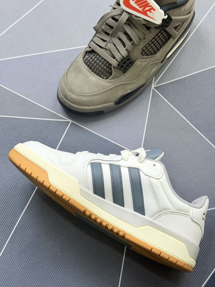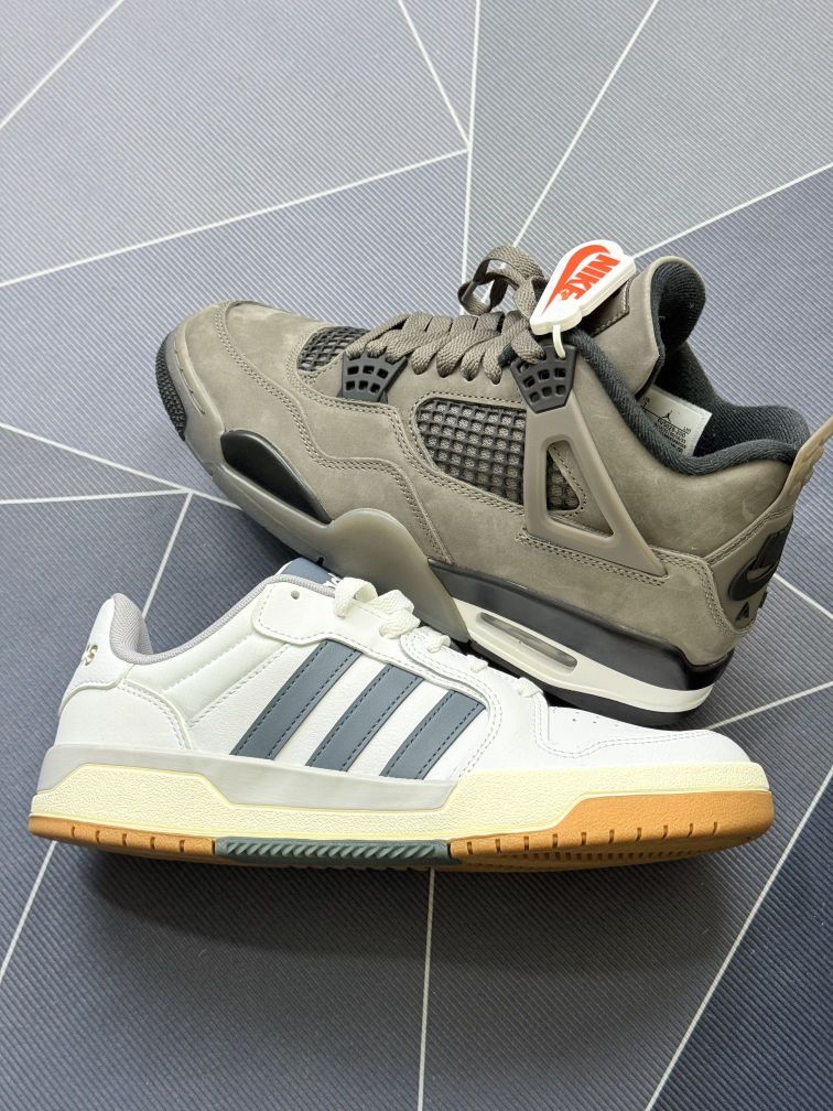 穿了一阵AJ4和阿迪这双鞋,来聊聊真实上脚那点事 先说AJ4这双,麂皮材质是真的难打理,稍微蹭点灰就得小心擦拭,而且鞋型偏硬,刚上脚那几天脚踝处有点磨。但穿久了踩开后,缓震感确实还不错,日常走路够用,搭配性也挺强 再说说阿迪这双,鞋型是真的轻,走路没什么负担,皮质也还算耐磨。性价比很高,日常随便穿穿也不心疼,搭配休闲装还挺利落👟 两双鞋都挺好的,AJ4胜在质感和品牌调性,但打理和舒适度初期有点糟心...