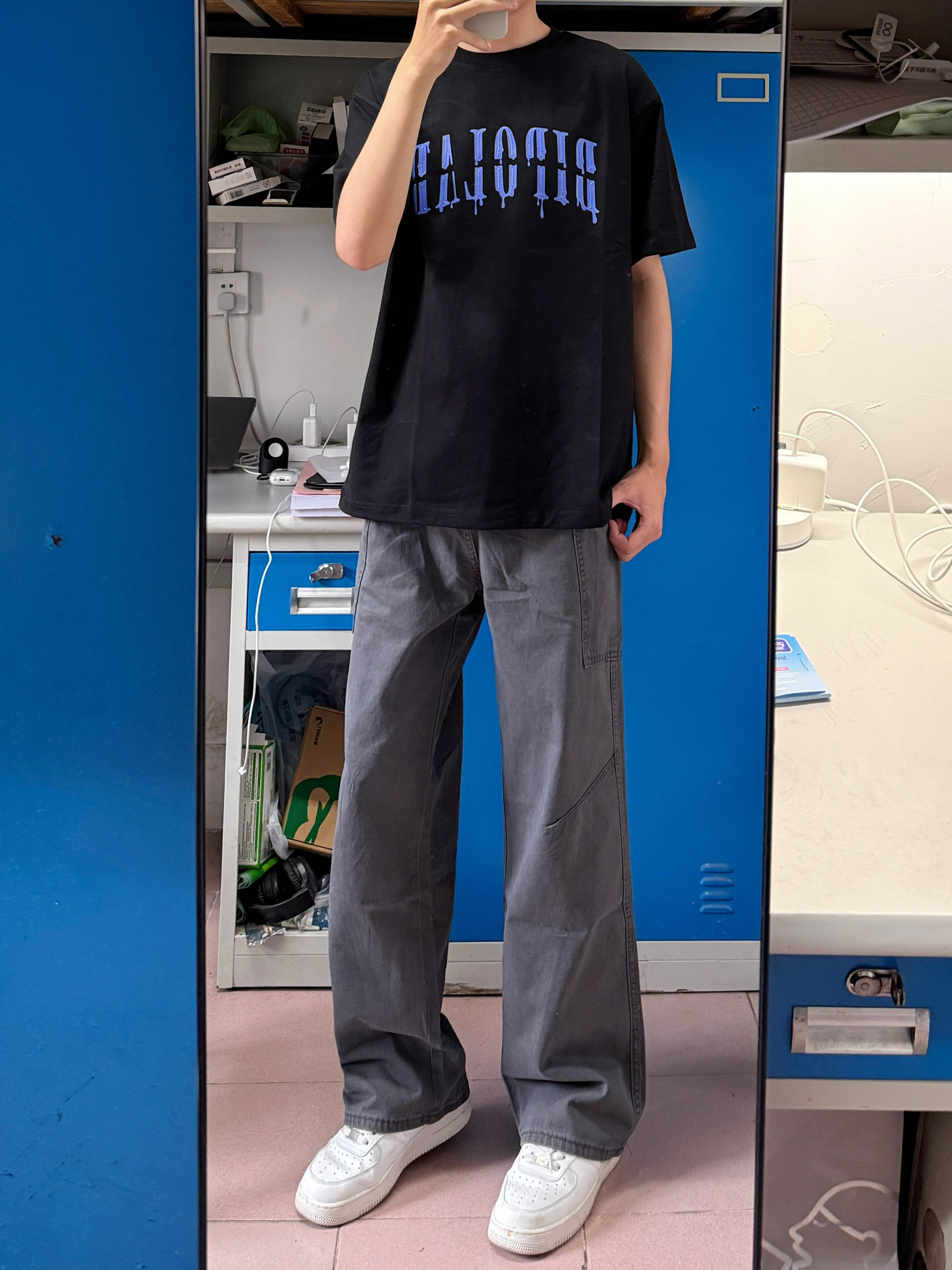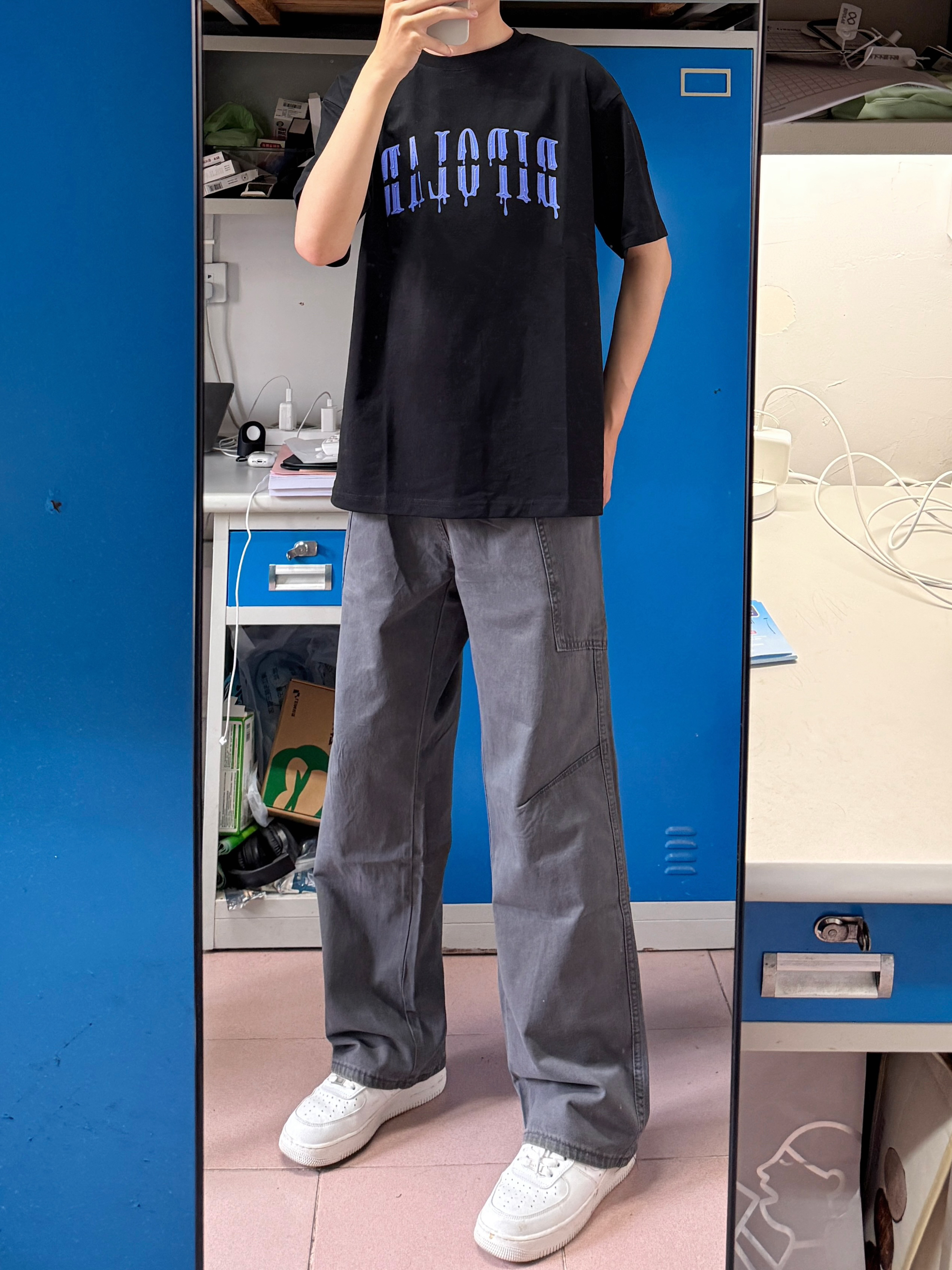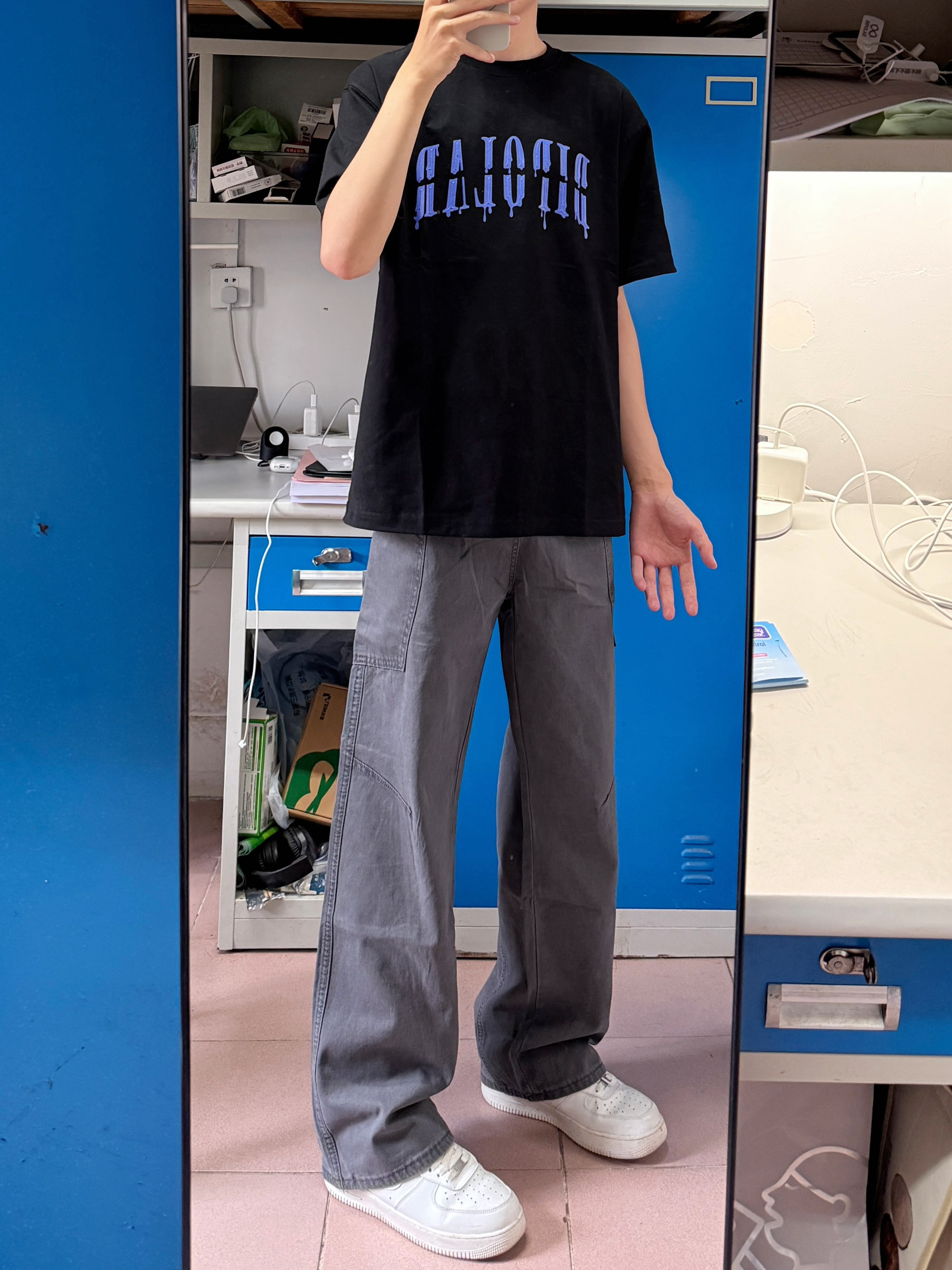 秋冬会比较喜欢穿宽松一点的裤子👖 这条灰色的工装牛仔日常搭配外套羽绒服都挺好的,百搭不挑人👌 版型真的没得说,上身效果包好的,一年四季都适合穿🤩176/60穿XL码宽松效果✔️