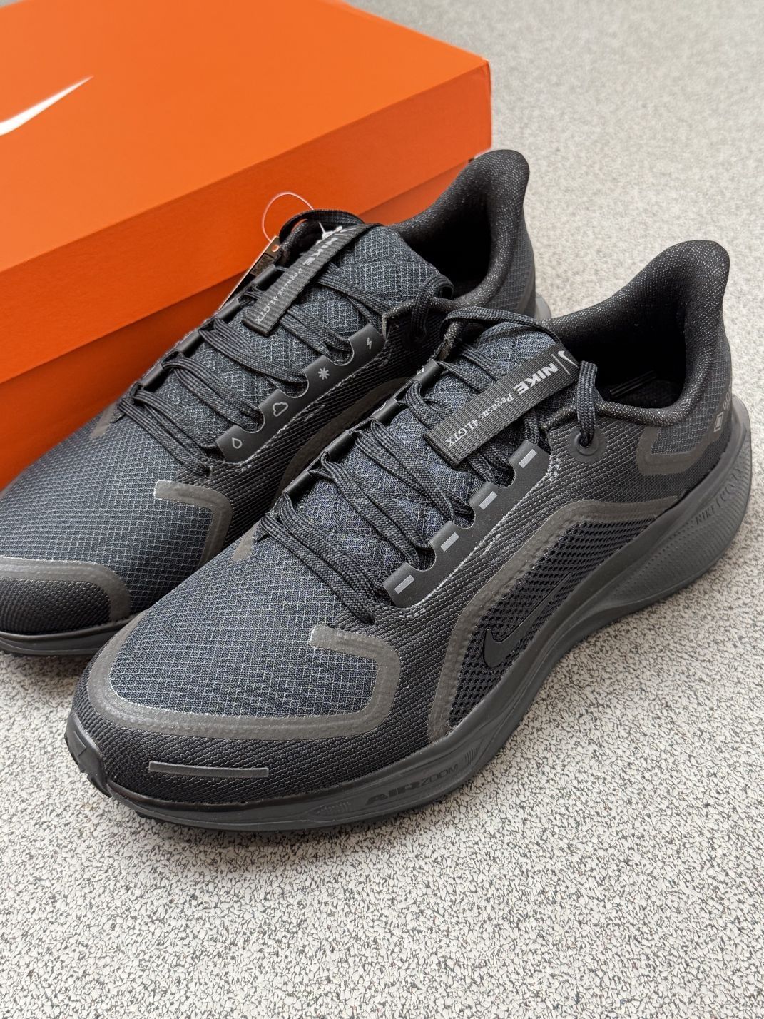 飞马41 GORE-TEX来了 •防水 GORE-TEX 材料结合织物鞋面 • ReactX 泡绵➕前后掌气垫极致缓震回弹 •鞋👟面融入反光元素 •黑色鞋面耐脏 •单鞋重量轻 喜欢😍赶紧冲冲冲