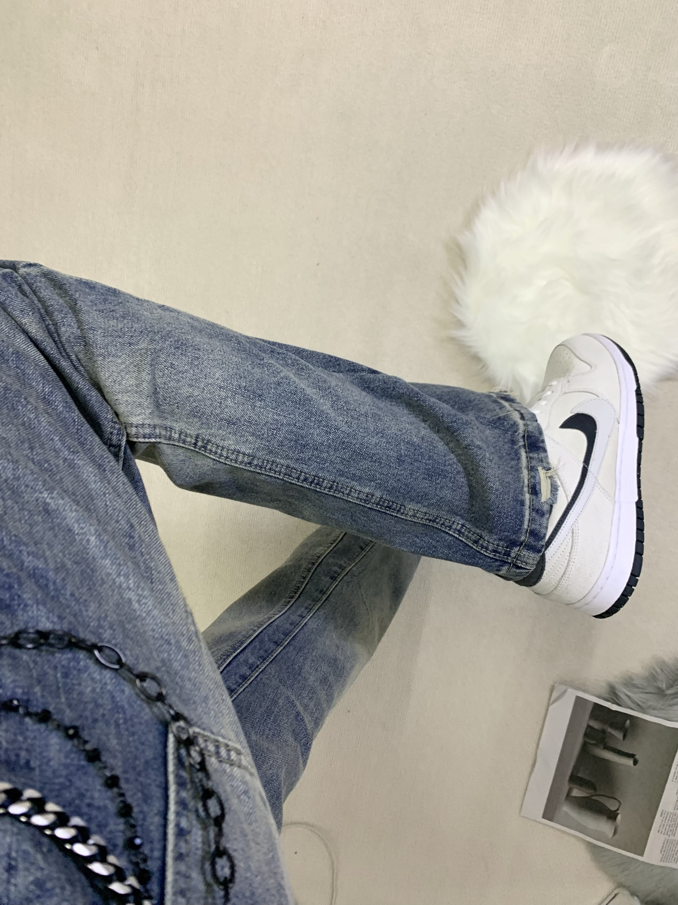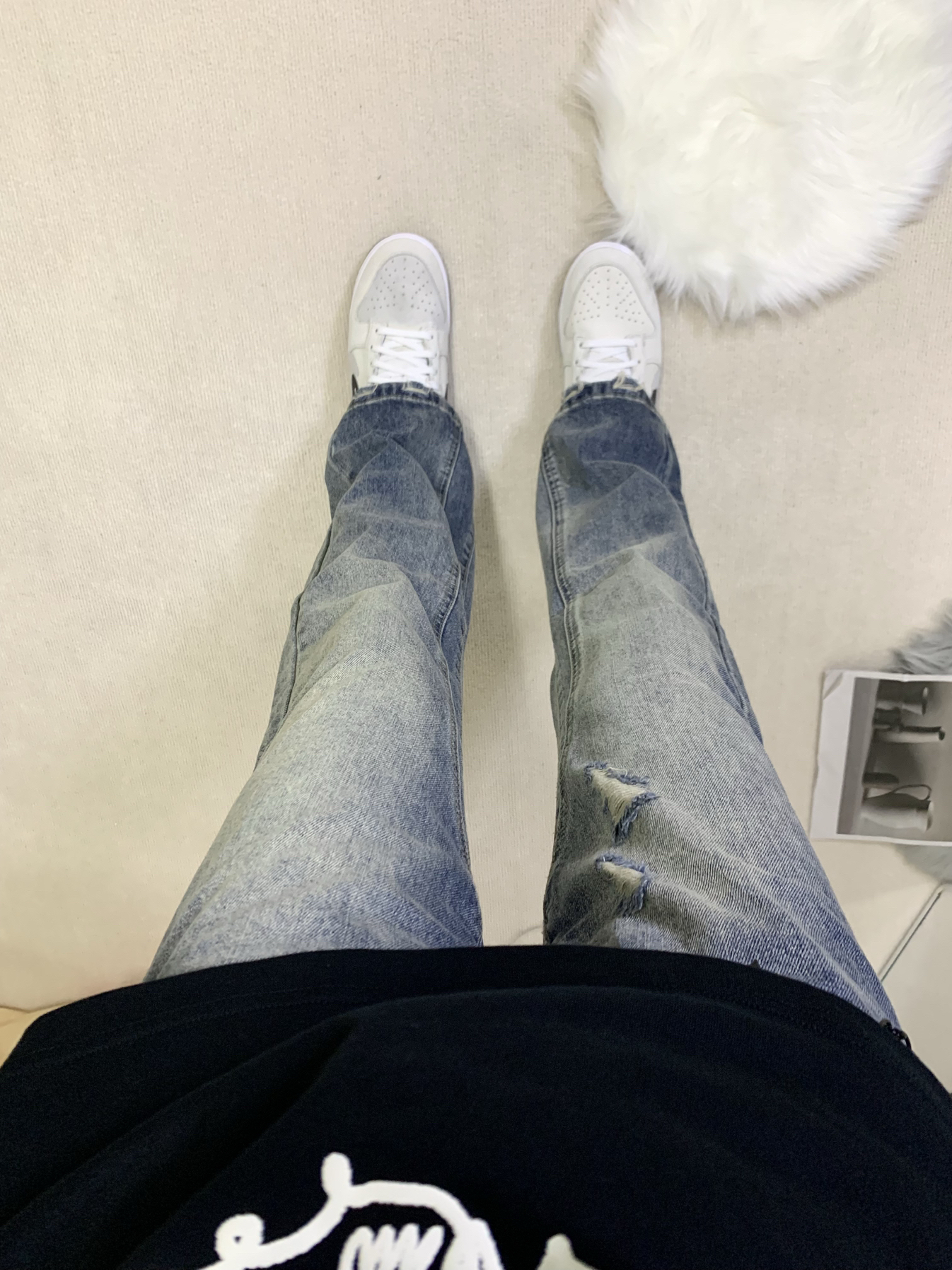 今天出门前随意搭了一条复古水洗蓝牛仔裤! 还别说,真挺有美式高街的帅感 直筒宽松上身真板正的,实测!我的大腿被治的服服贴贴的,老显高显瘦了 再搭配上黑色上衣,还挺有氛围感的! 百搭耐看还舒服~