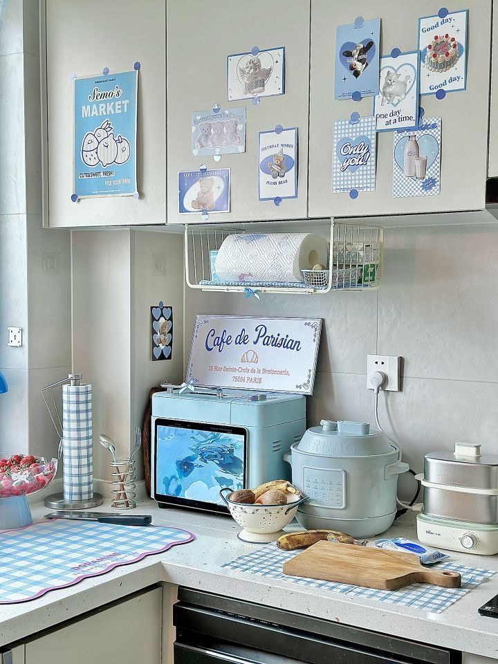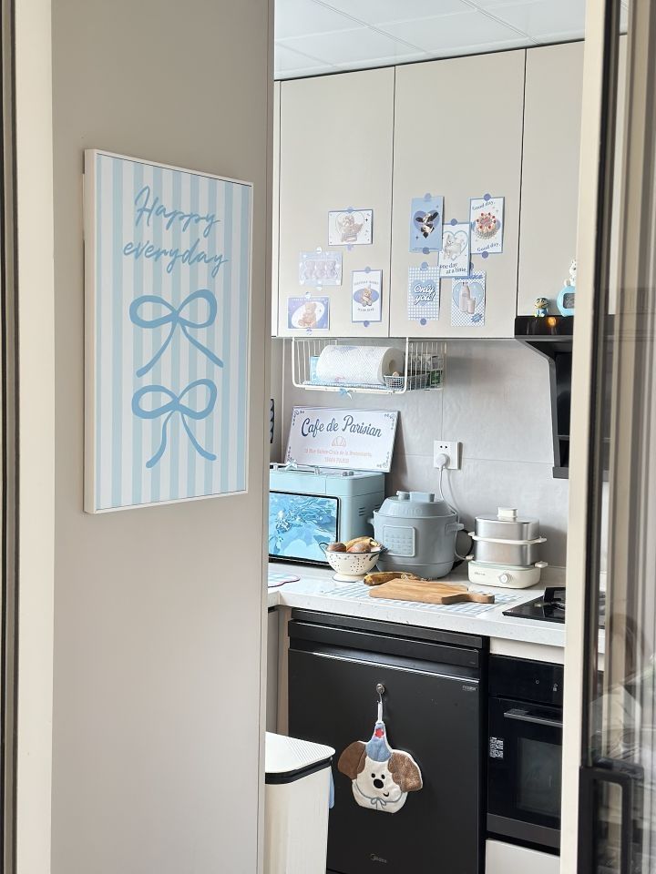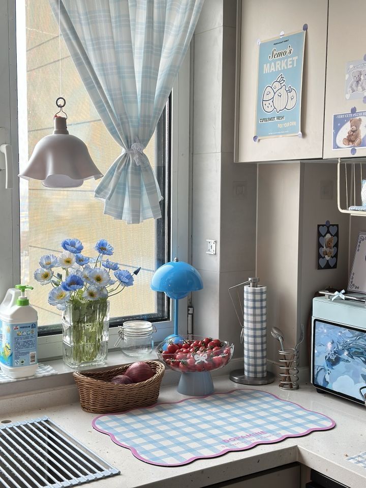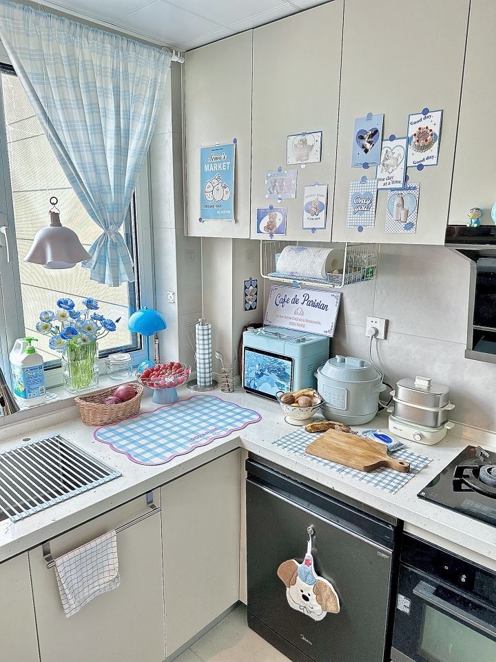 #我家治愈又好宅 不知不觉新家入住3年了 前段时间花200布置了一下厨房 没想到焕然新生(属于我的本命色!) 蓝色真的舒服又治愈,清新不油腻 有这样的小厨房,是我下厨的动力~ 谁懂啊!真的好舒服! #厨房好物分享 #家居博主真实的家。