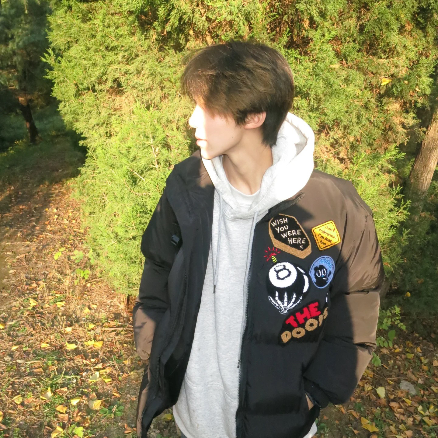 我最喜欢它的假两件设计 领口和下摆露出内搭的拼色 让纯色外套立马有层次感 搭配上很省心 我通常直接配深色直筒裤和运动鞋 整体看起来比较清爽 帽子是可调节的 这点很实用 刮风天能把抽绳拉紧