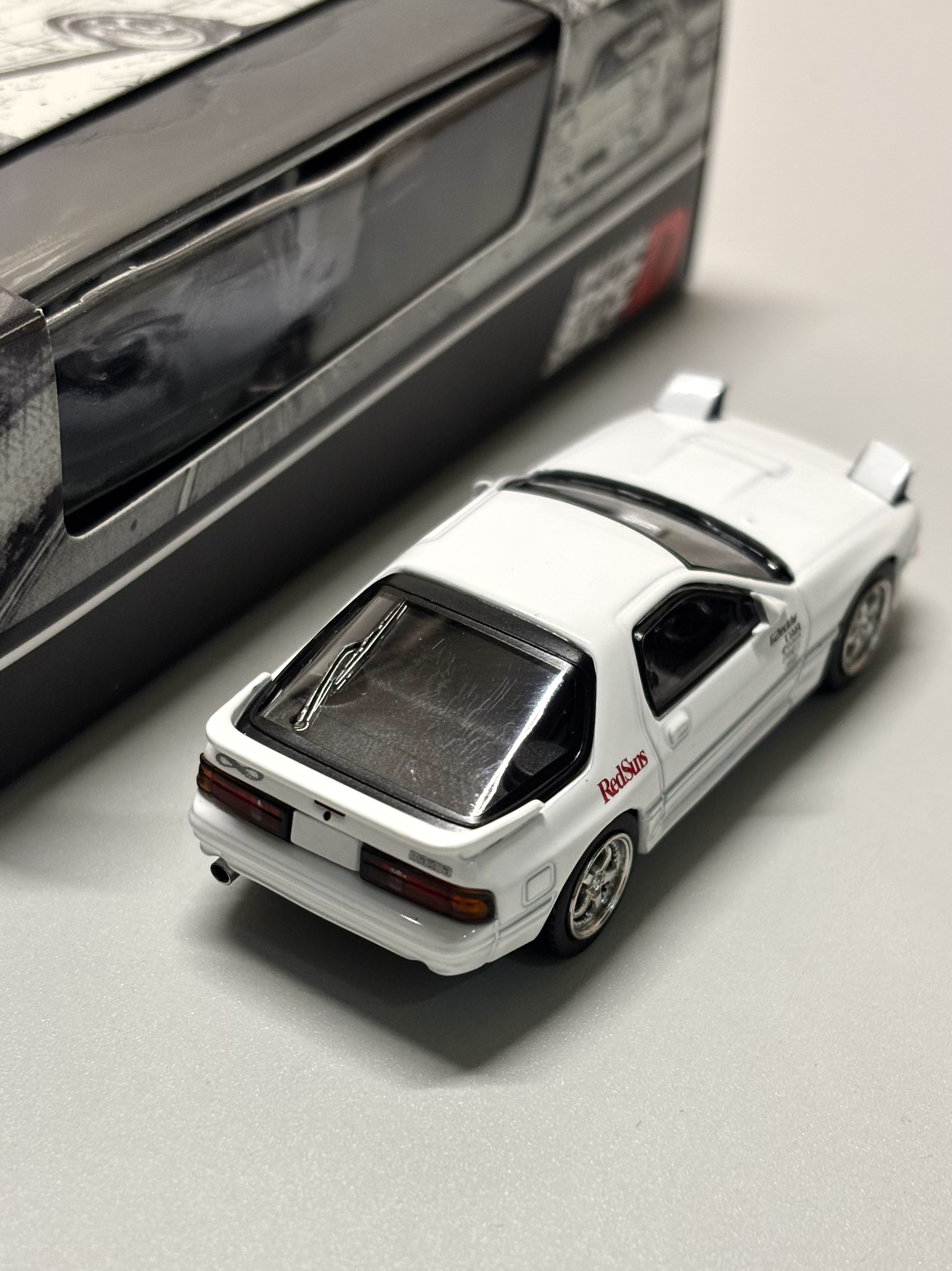 又是熟悉的配方,hobby japan今年针对头文字D系列推出了30周年纪念产品,其中最吸引我的还得当属这个rx7 fc3s,虽说相比老款只去掉了人偶和刹车盘,但是能推车真的很诱人 当前市场价格也是来到了七十多块,而且挂卡版十分精美,用来观赏收藏也十分合适,但总体来说一分钱一分货,比不上tlv和ats,但也是目前市面上这款车型64比例的性价比最优解了