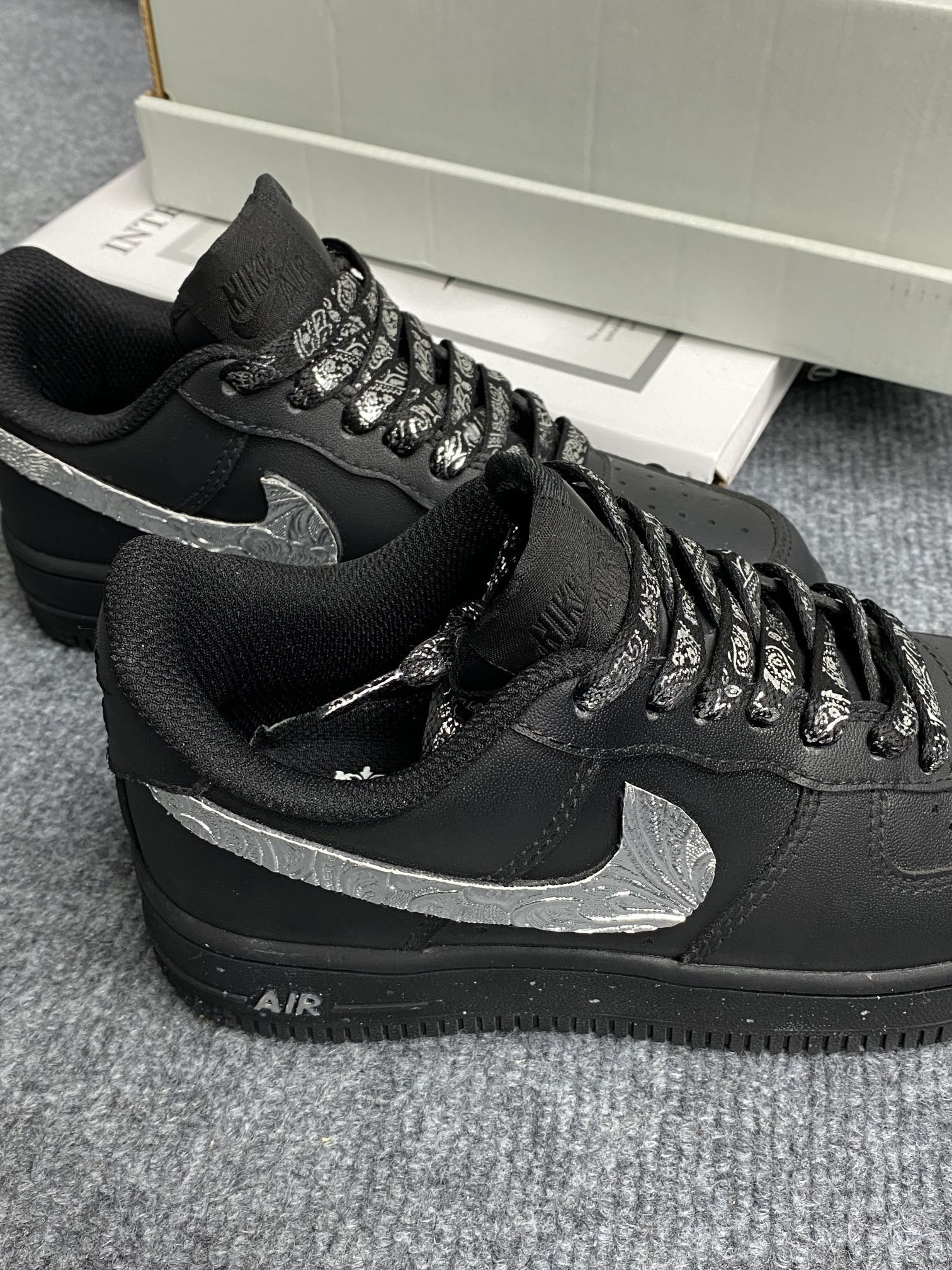 本篇笔记关联了【定制球鞋】Nike Air Force 1 板鞋 舒适轻便防滑耐磨包裹性合成革防水复古简约增高 黑骑士/黑色/银色等商品,为用户提供真实的使用体验和购买参考。