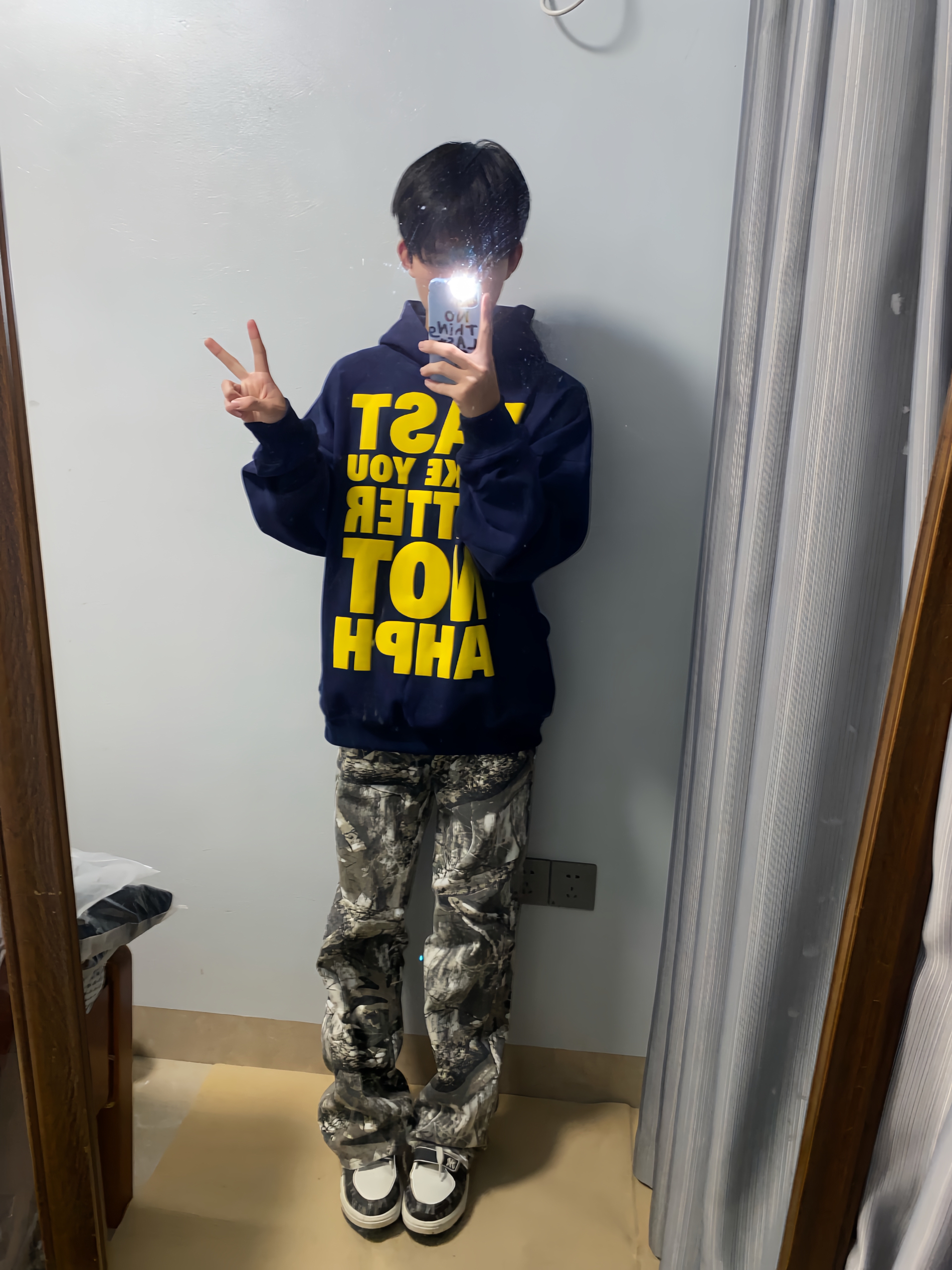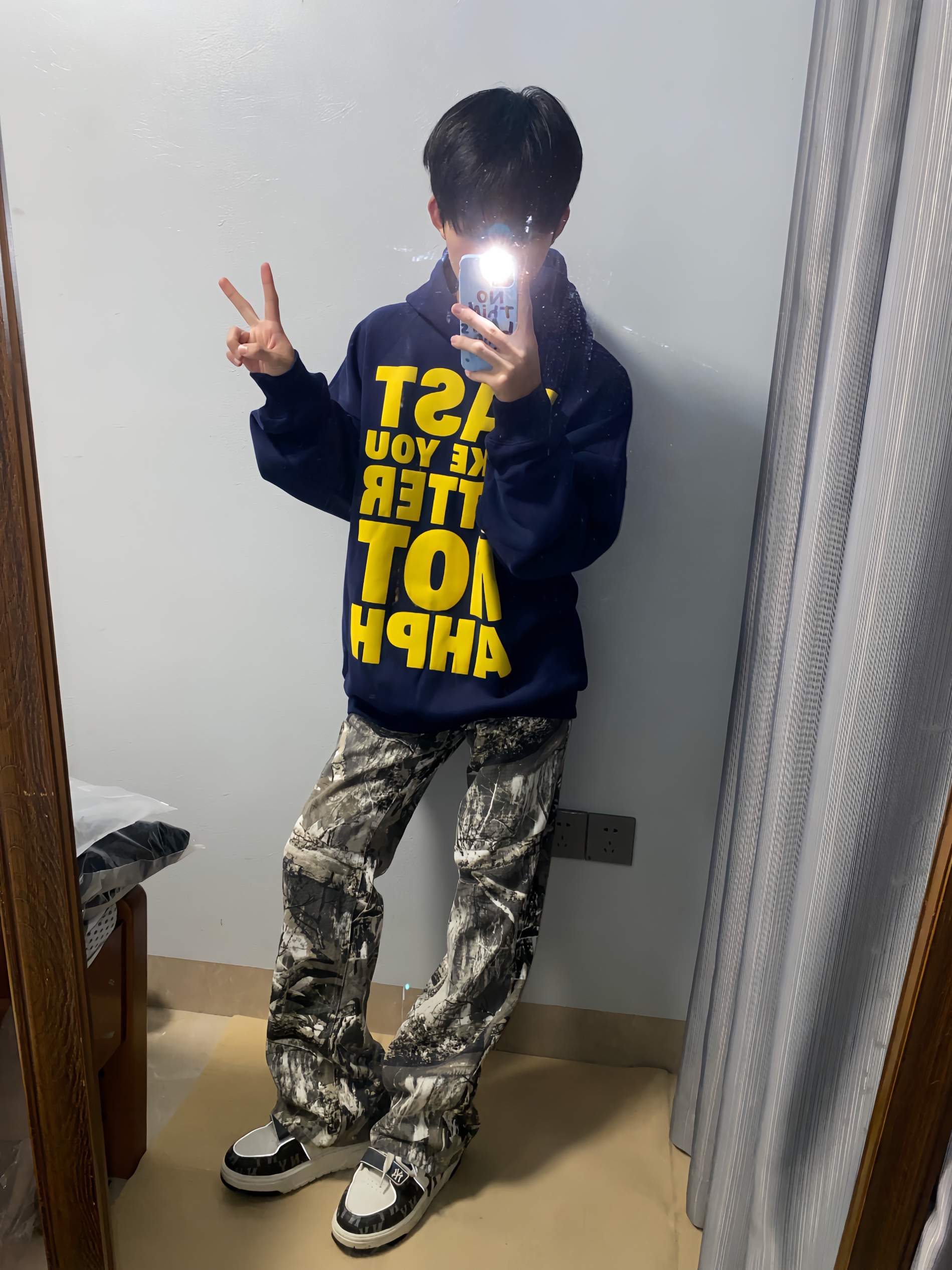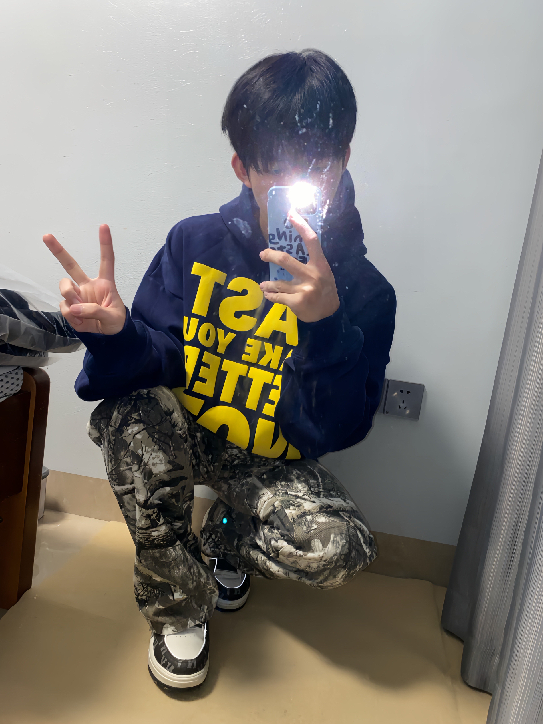 Hello 👏👏👏今日份穿搭分享来啦 上身一款AHPH藏青色卫衣加迷彩牛仔裤👖 面料很不错 加绒加厚的冬天很适合穿!! 藏青色比较显白 连帽的超帅✌️✌️ 搭配了一款迷彩牛仔裤 树枝类的🌿 小个子秋冬穿这身啦🤩🤩
