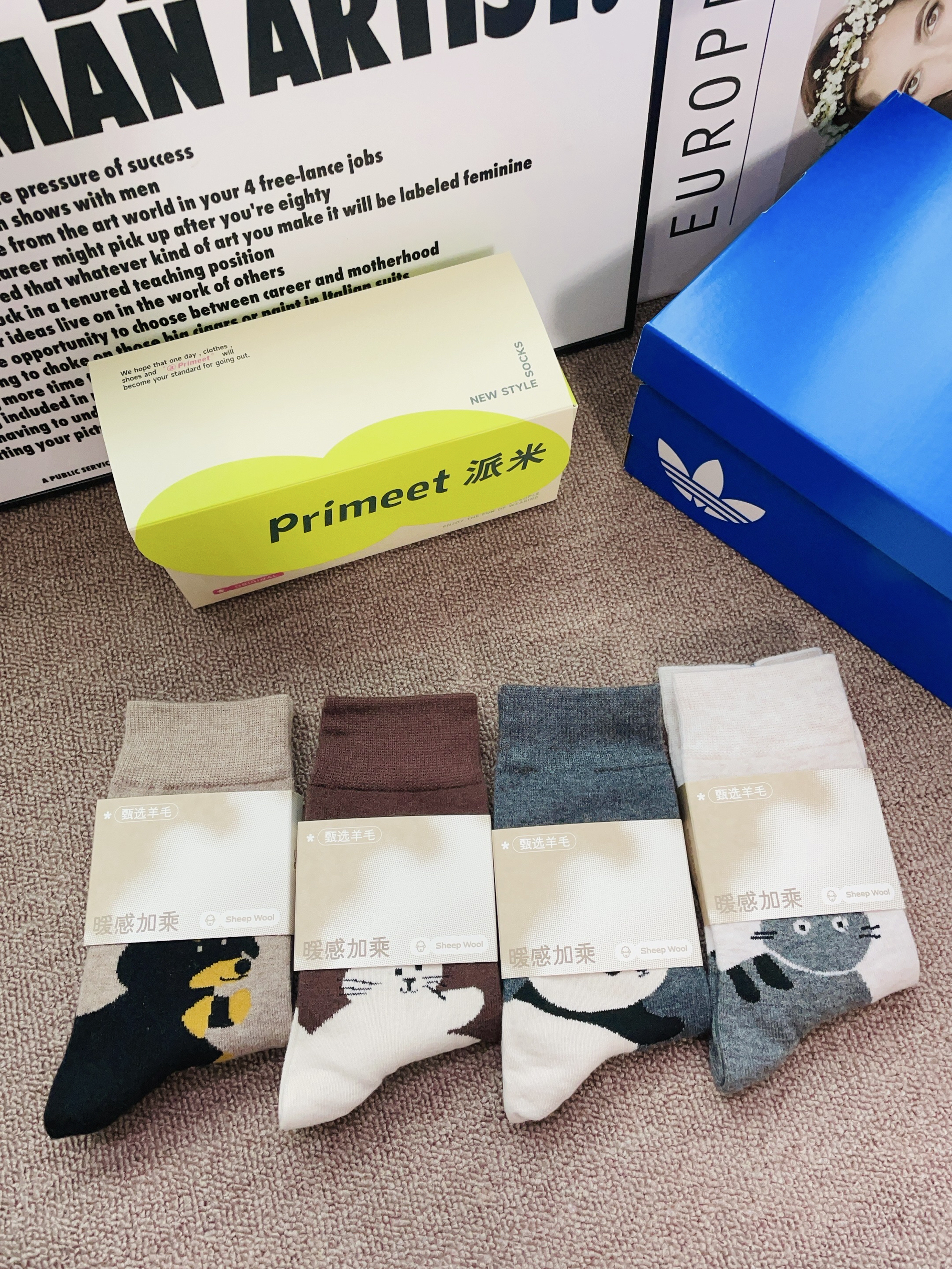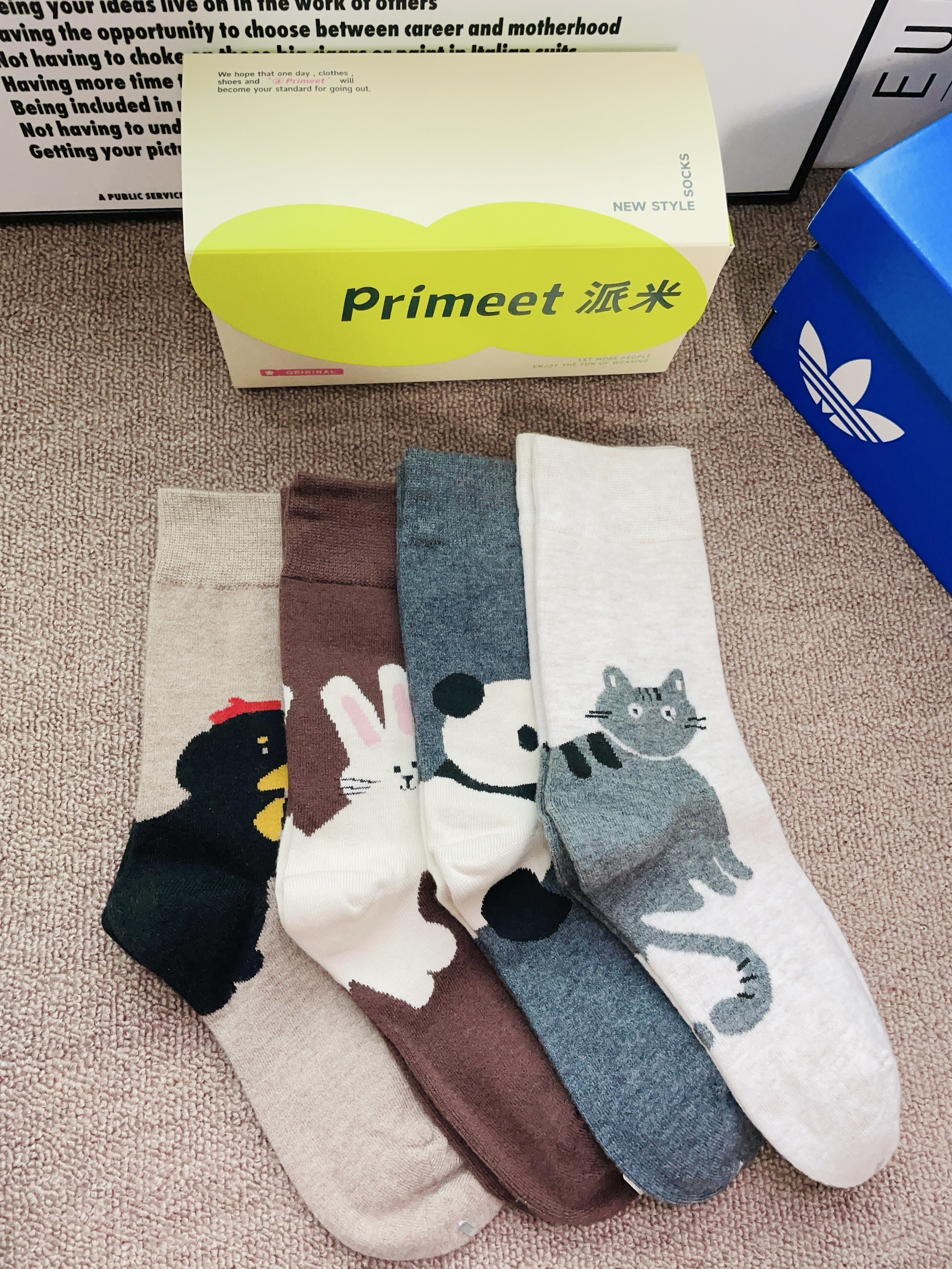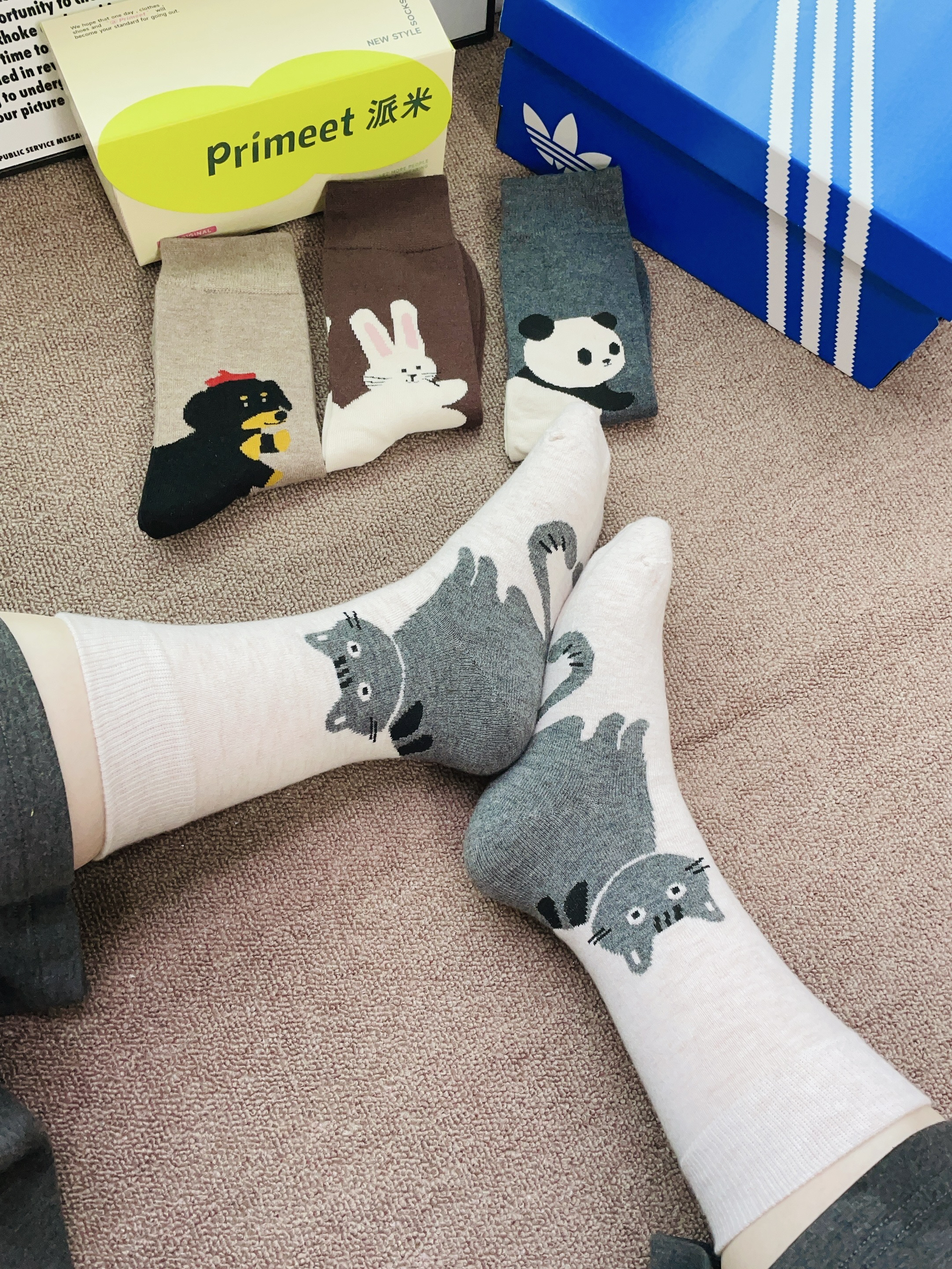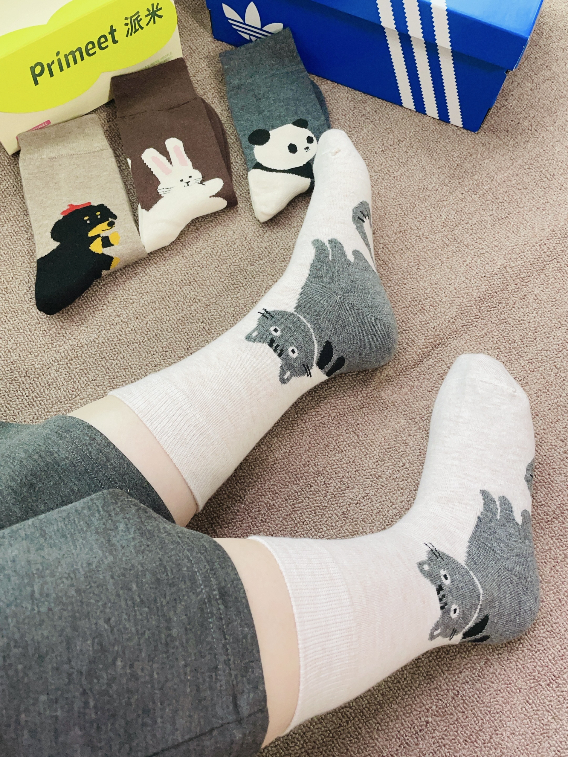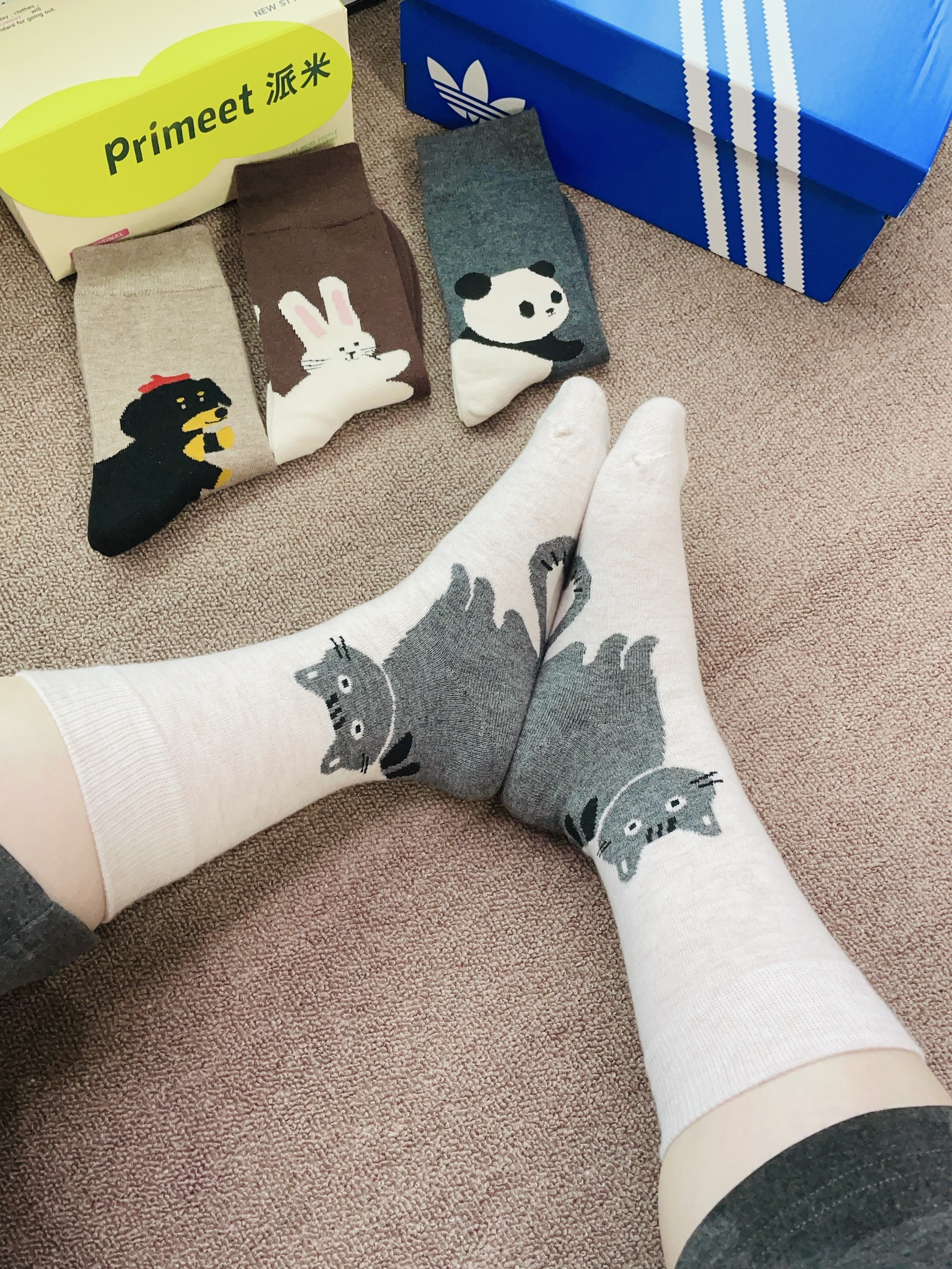 还有10来天又是一年一度的双十一啦 我又给自己新添置了新的袜子穿 派米这款袜子礼盒包装 打开有四双不同图案的袜子 每一双都可可爱爱的 我摸着面料柔软 上脚穿舒服 细节做的可以 我感觉大冬天穿暖和 日常通勤随便搭都可以