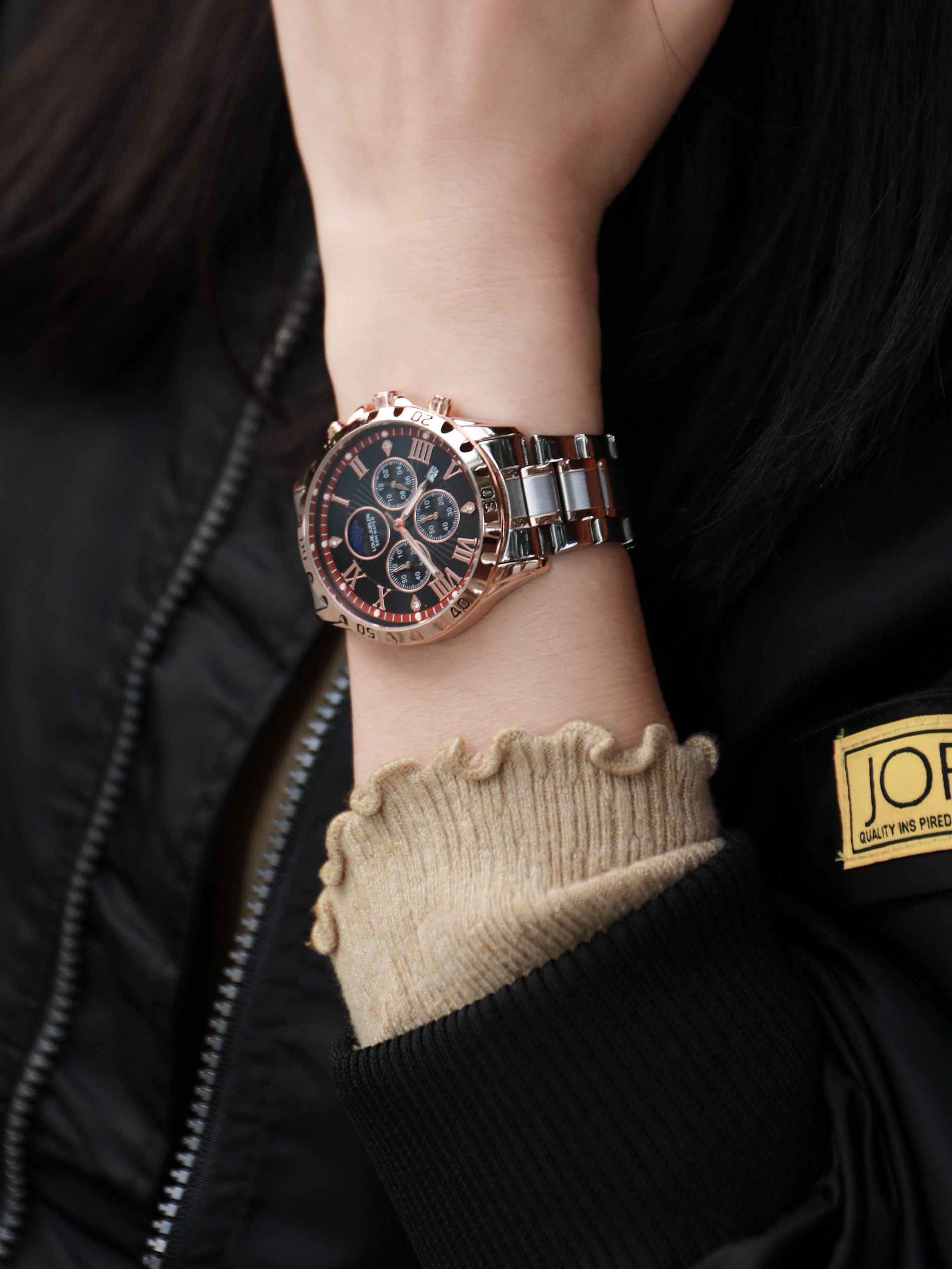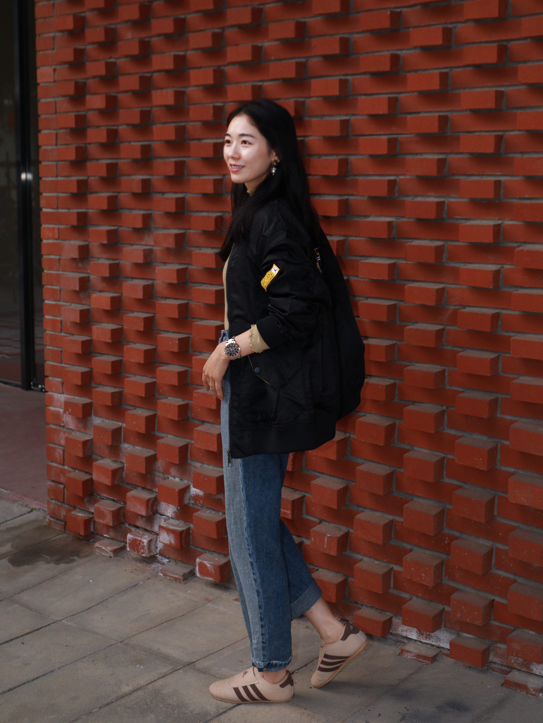 十月微凉,风中已有秋的惬意 穿行城市 感受季节更迭 今日是素调温柔姐姐风 也是浪漫生活的记录者✌️ 松弛感来自LOUIE JUELEN 金色的配色~搭配黑色夹克 同色系的毛衣跟鞋子 让这身格外的搭✌️ 对了~钢带的很有质感