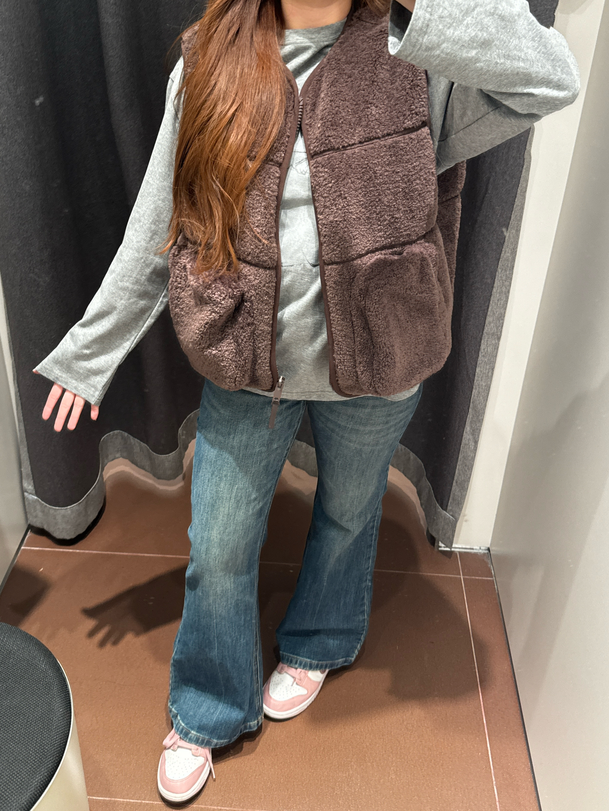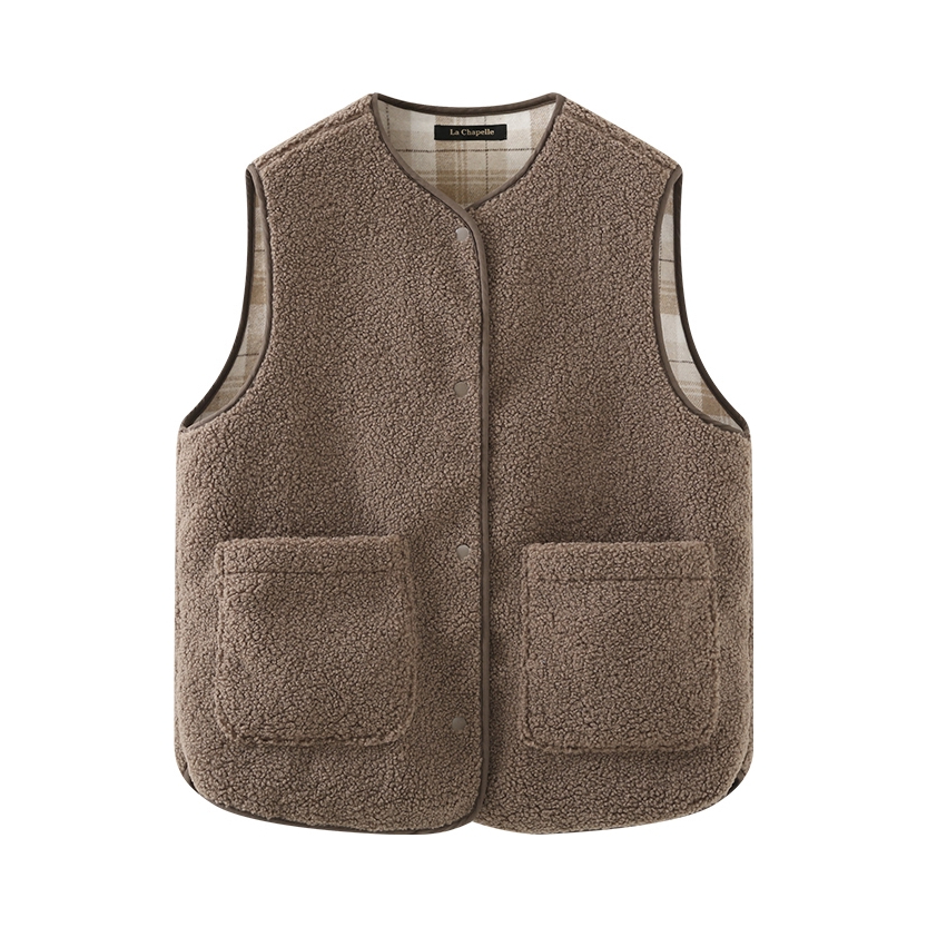 老铁们 这件棕色羊羔毛马甲一穿上就脱不下来了! 谁懂!! 软乎乎的羊羔毛质感, 摸起来像rua小绵羊🐑 秋冬单穿叠穿都绝绝子 慵懒随性的韩系感直接拉满~ 关键是它的版型很藏肉! 对各种身材都很友好, 口袋设计还特别实用, 暖手揣兜两不误😎 秋冬不知道穿啥的姐妹,听我的! 这种万能马甲赶紧冲! 搭配卫衣、毛衣都很绝, 一整个就是温暖又时髦的秋冬穿搭模版~