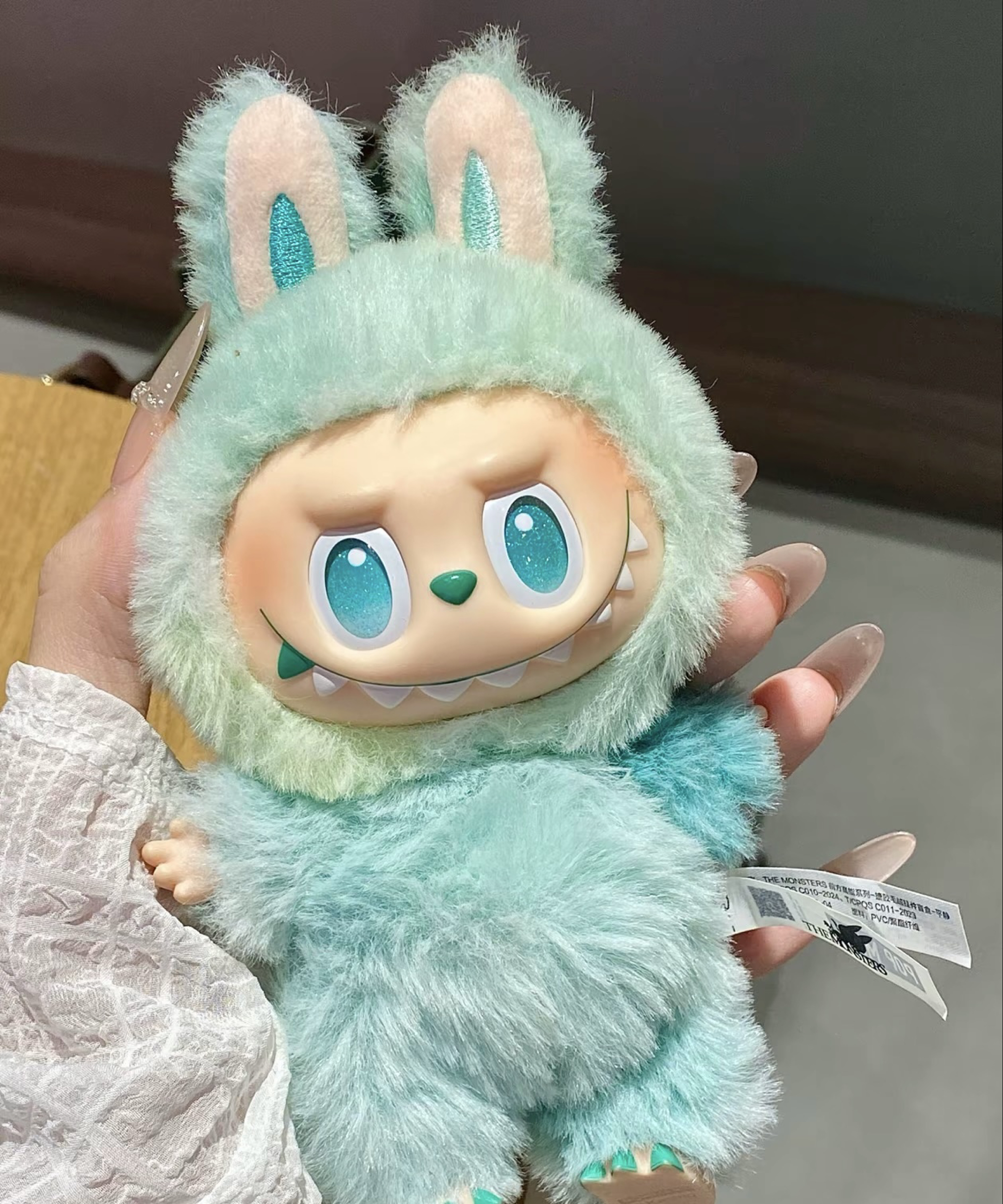 是的如你所见!我有拉布布了哈哈哈哈 国庆回家一趟直接把哥哥的拉布布顺走了 这个绿色好喜欢诶 我看图片以为是那种纯绿色的 拿到手里才发现是那种深浅不一样的颜色 毛绒绒的摸着手感很好 当包挂也很拉风✌️ #适合送朋友的玩具 #拉布布labubu #拉布布毛绒盲盒 #分享喜欢的玩具 #背面基础正面就不基础