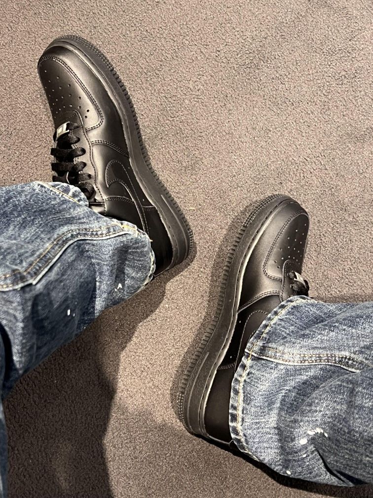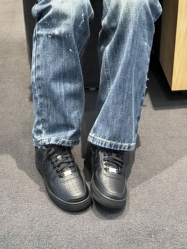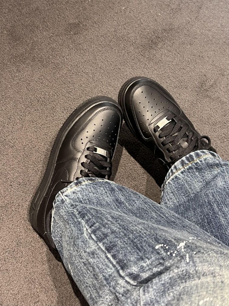 谁能拒绝一双全黑AF1的魅力啊!纯黑皮质质感拉满,简约又高级,是那种越看越帅气款~ 全黑AF1|经典永不过时的百搭神鞋 今天给大家分享一双我最近超爱的Nike Air Force 1 全黑款,它真的把“百搭”和“质感”刻进了DNA里! 这双鞋采用全黑皮革材质,鞋面质感细腻且耐脏。经典的AF1鞋型,鞋侧的Swoosh标志、鞋头的透气孔设计,每一处细节都在诉说着它的复古血统。全黑配色让它少了些花...