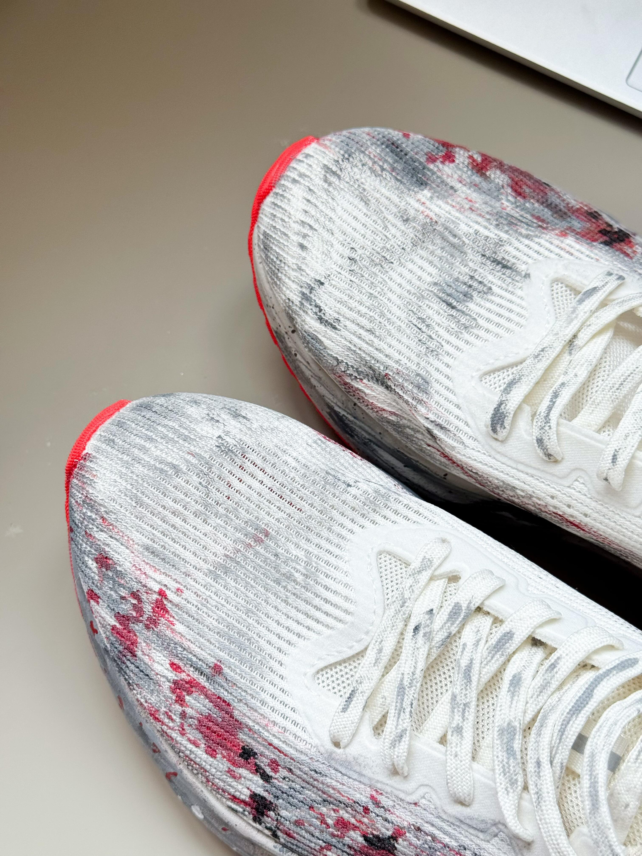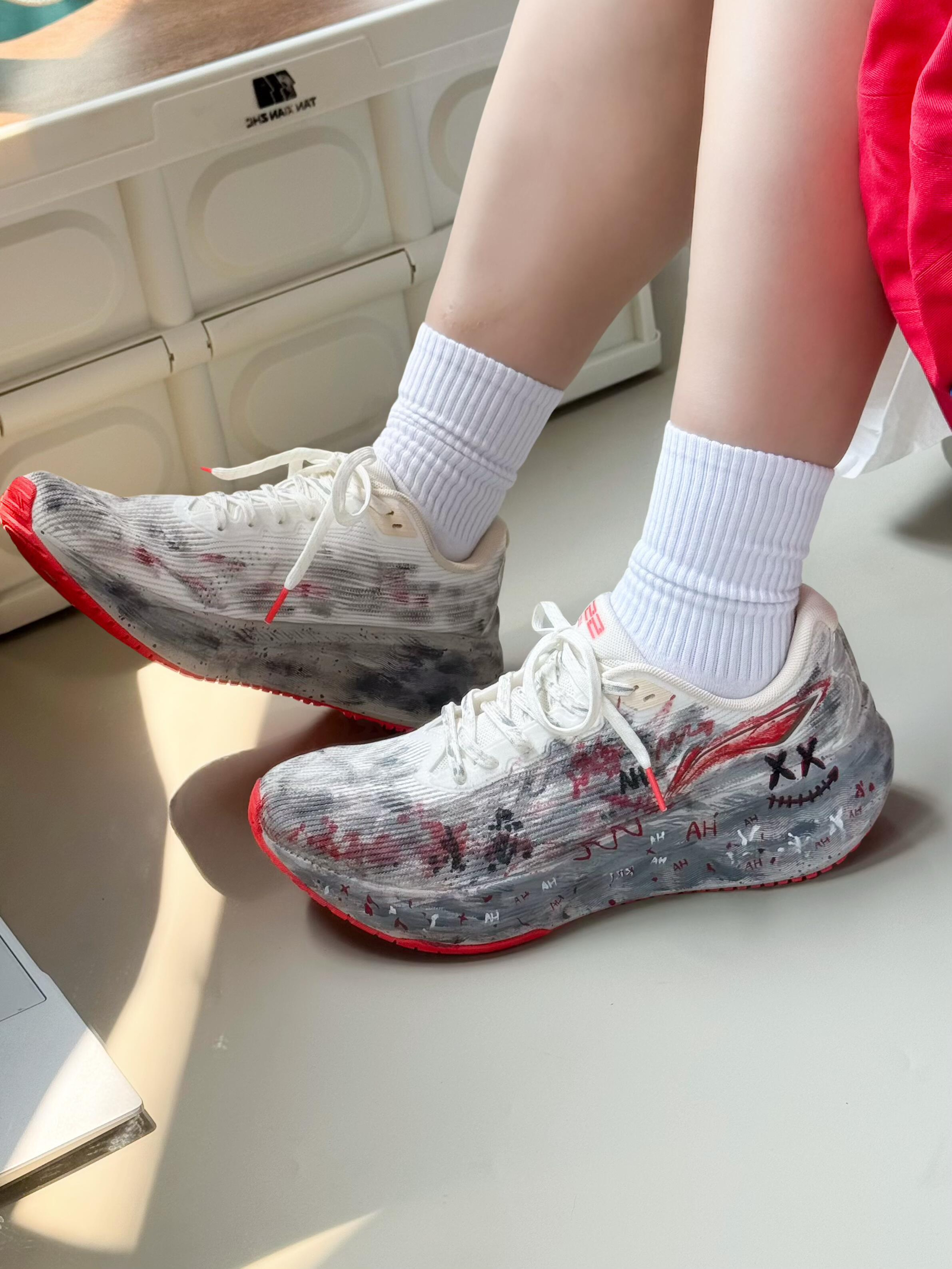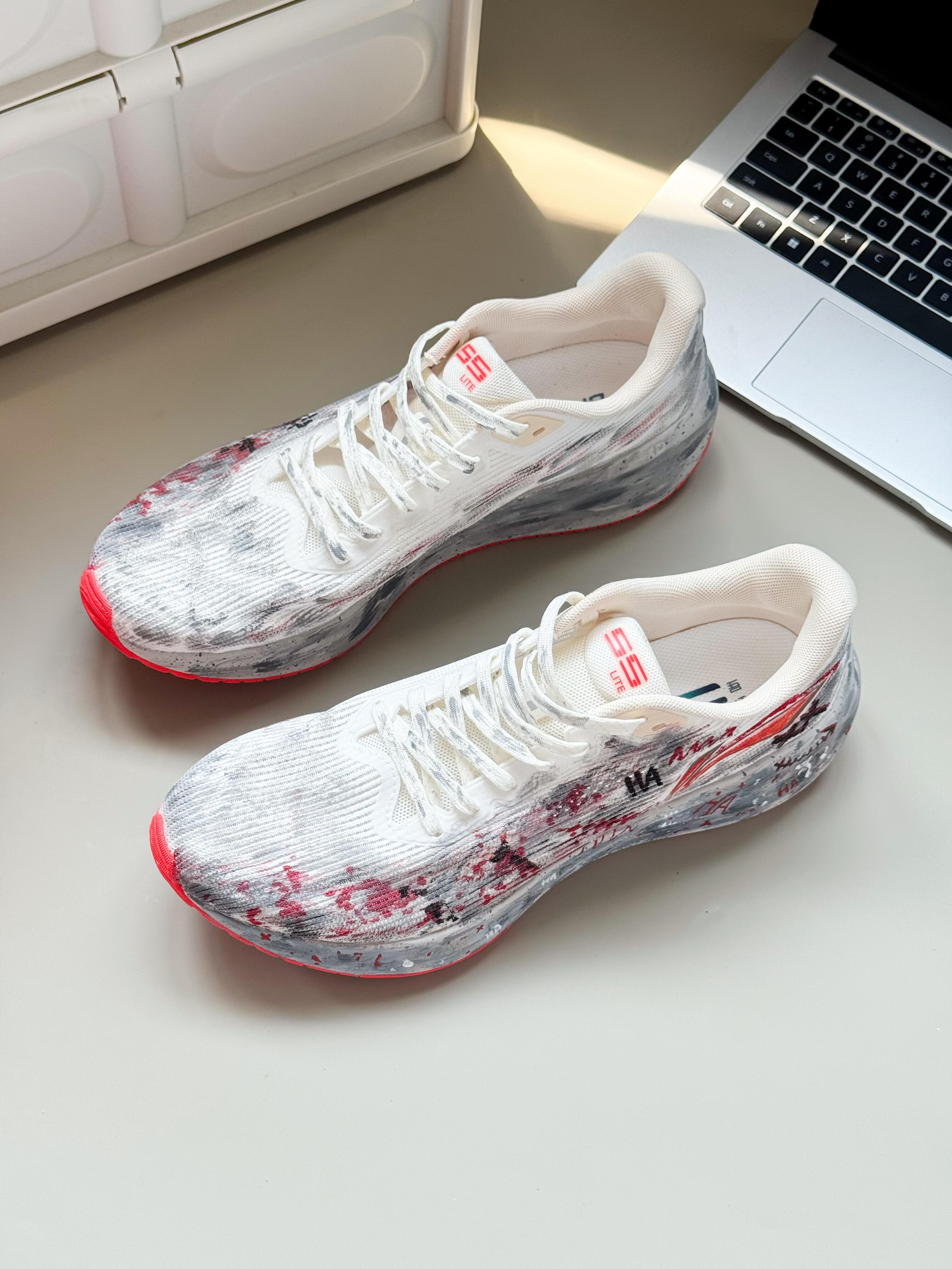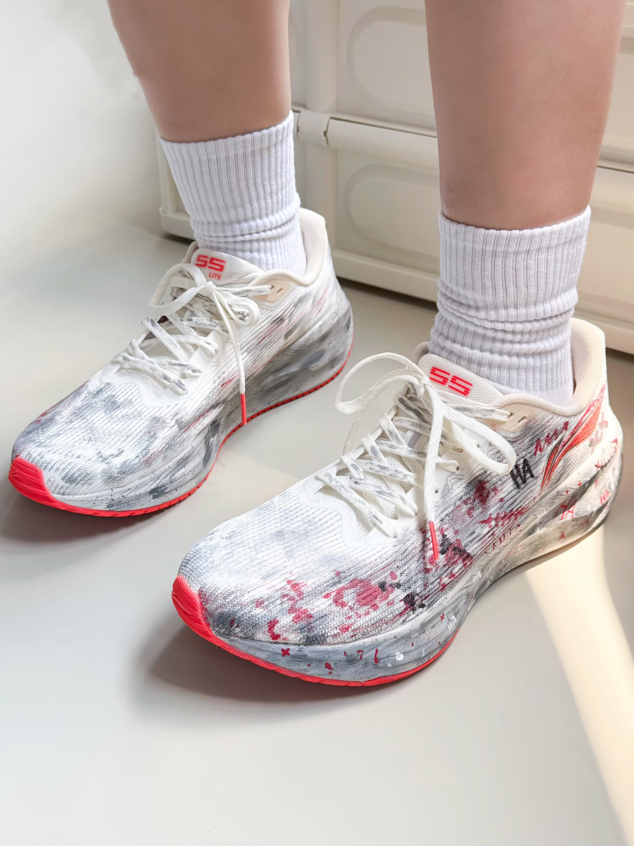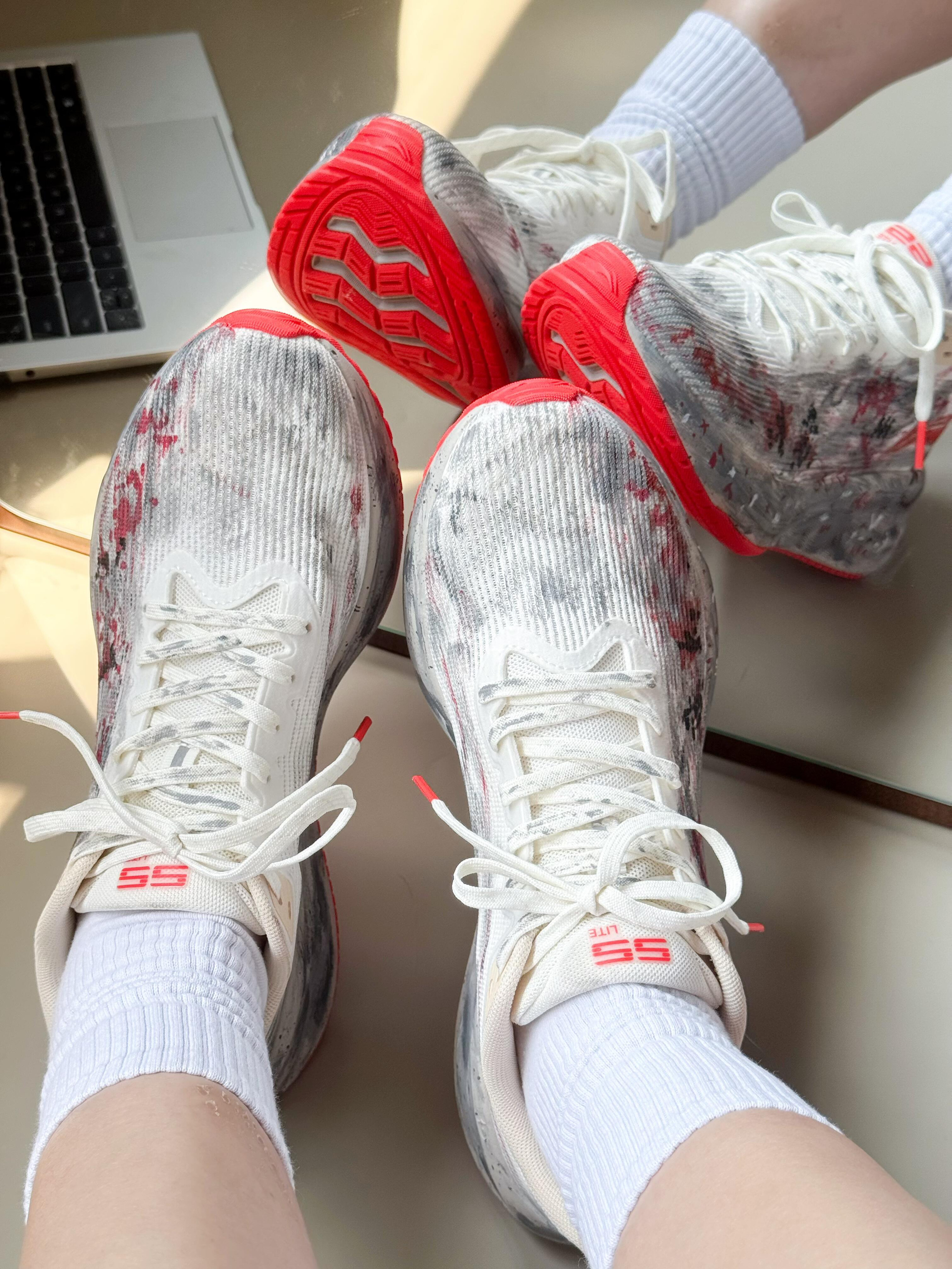 谁懂啊家人们!今天穿这双鞋进办公室,连埋头敲代码的同事都抬头:“你这鞋是拿墨汁泼的?白灰红混得跟烟花似的,上班穿也太艺术了吧!” 先吹爆这脚感——鞋底软到像踩在刚晕开的水墨画上,我穿它挤了1小时地铁+走了20分钟路,脚后跟居然没打晃(本“通勤脚废星人”直接泪目)!鞋身的透气网面巨给面,30度的天坐完全天班,袜子都没闷湿,之前穿的通勤鞋早捂出“汗味结界”了! 最戳我的是这颜值:白灰底色泼满红黑墨...