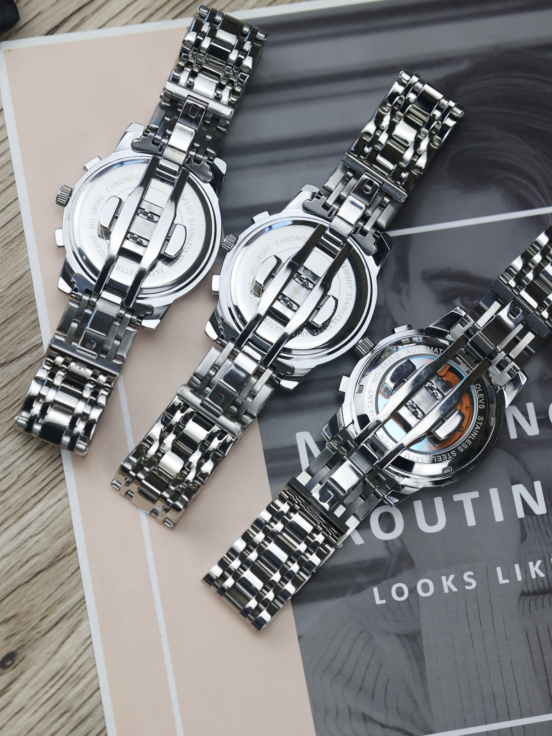 这三手表还真是亲兄弟,如果不仔细看,压根看不出有一块竟然还是机械表,要不是因为秒针走时和后背镂空,就这光看外观谁能看出来啊😂