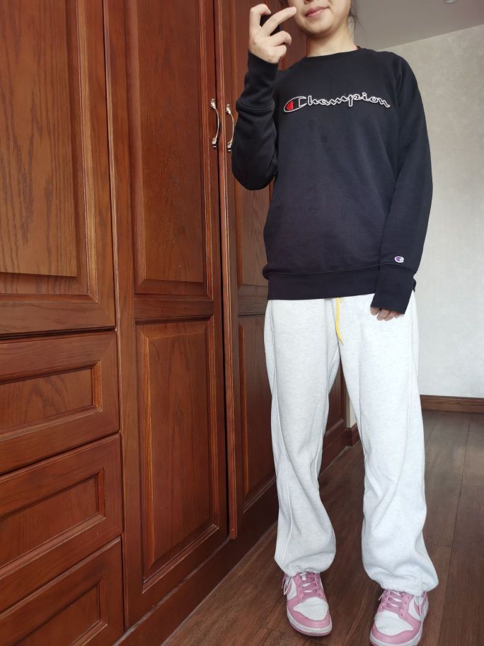 今天这套是Champion经典黑卫衣+浅灰束脚卫裤组合,慵懒又随性的美式休闲感直接拿捏~ Champion的卫衣质感真的没话说,经典的刺绣logo很有辨识度,面料软乎乎的,秋天单穿或者内搭都很绝~浅灰卫裤的版型宽松又显瘦,日常出街或者宅家都很合适~